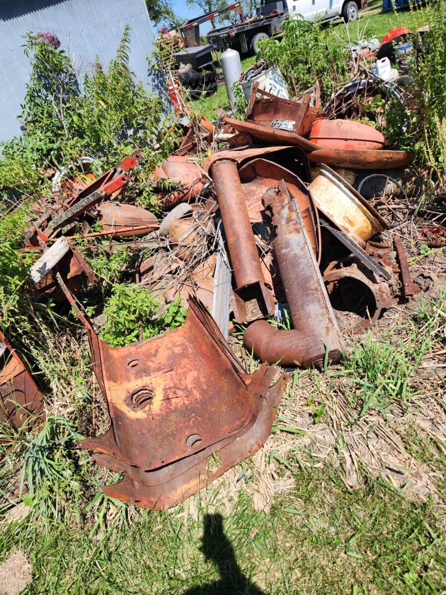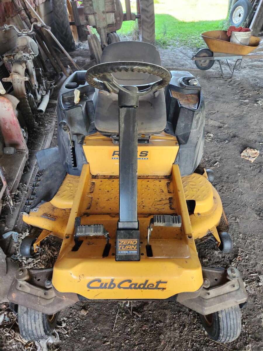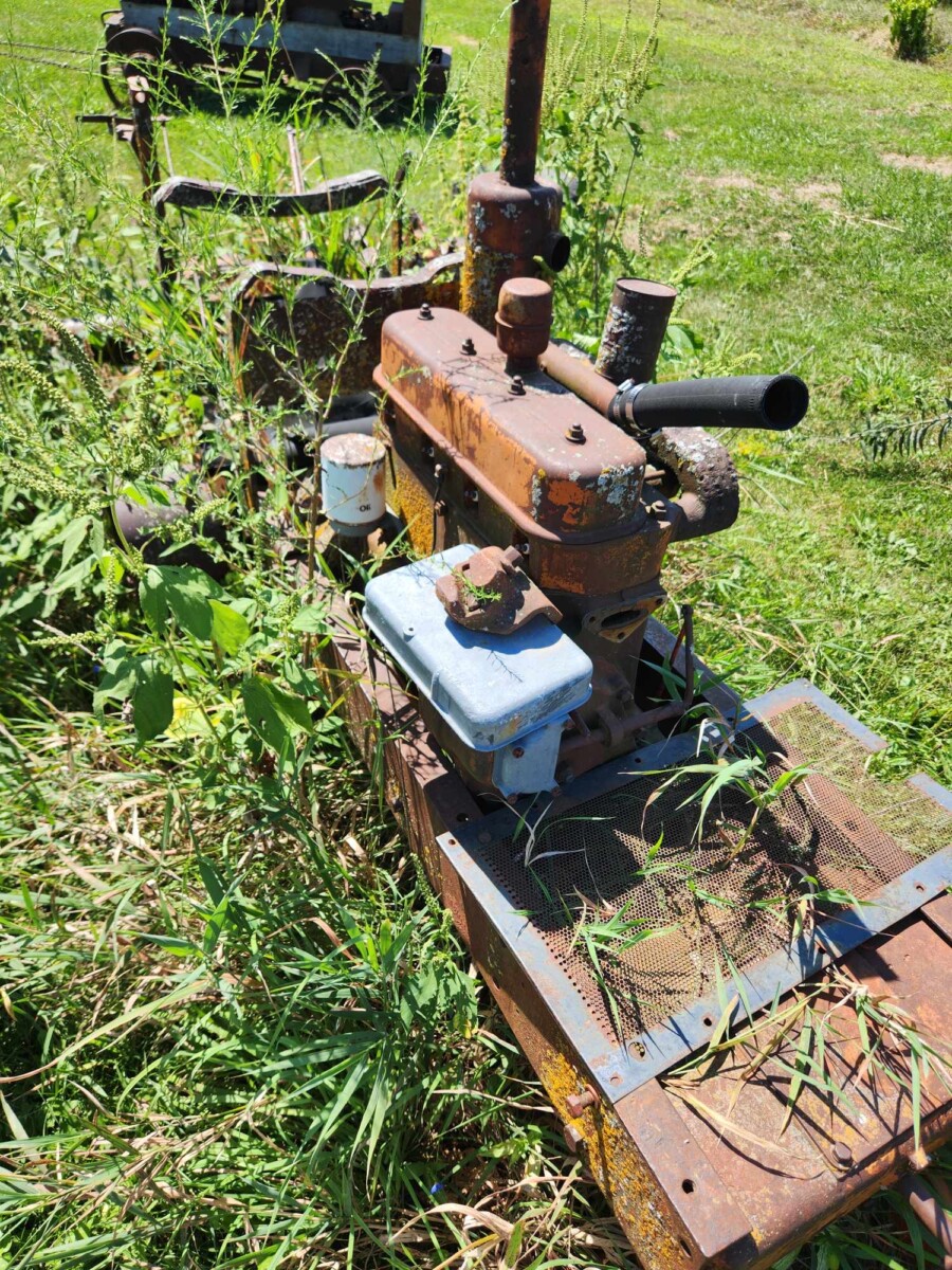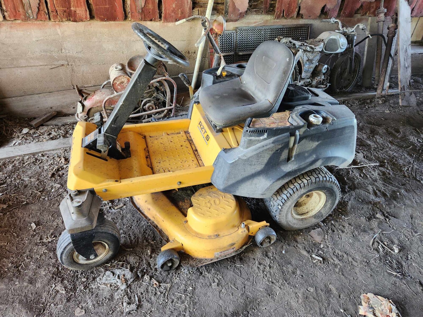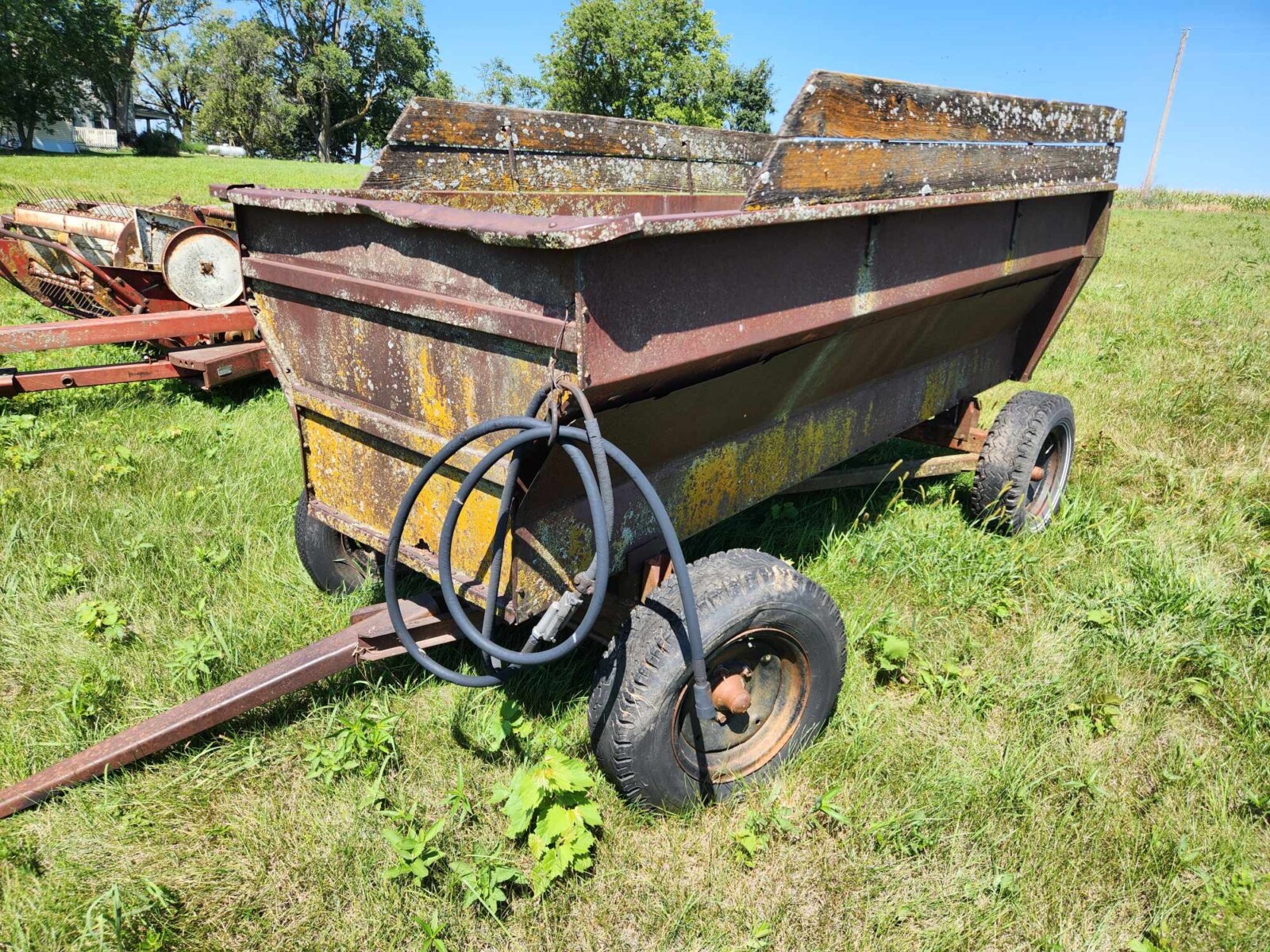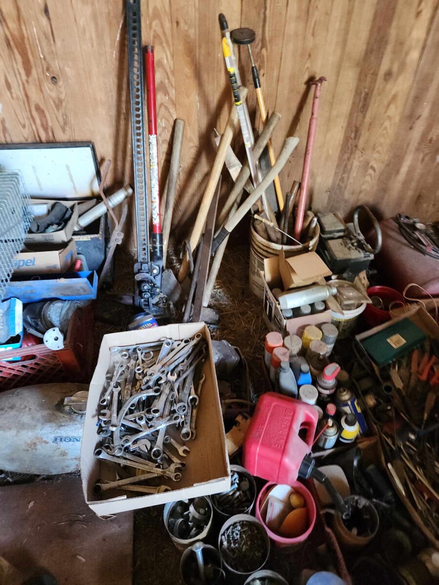 3 pt carrier; IH ground drive manure spreader; bob sled horse drawn; Vermeer 605 baler; Massey Ferguson 110, 3 pt spreader; barge box w/ Big Bear gear; Allis Chalmers 8.5′ snap coupler blade; IH 1650 hydrostatic garden tractor; Allis Chalmers 3 bottom snap coupler; utility trailer; Massey Harris flare side w/ hoist; JD 2 bottom plow pull type, 14′; 4 section harrow; 25 gal tractor tire fluid, calcium chloride; Allis Chalmers snap coupler 7′ sickle mower; King Kutter finish mower, 3 pt; #5 JD sickle mower; IH 990 mower conditioner, 10′; JD 120 lawn mower; 2012 50″ RZTS Cub Cadet lawn mower, 23 hp Kohler; 50″ RZT cub cadet lawn mower, 23 hp Kawasaki engine; 318 JD lawn mower; Huffy 3 wheel bike; torch tube for a D14;