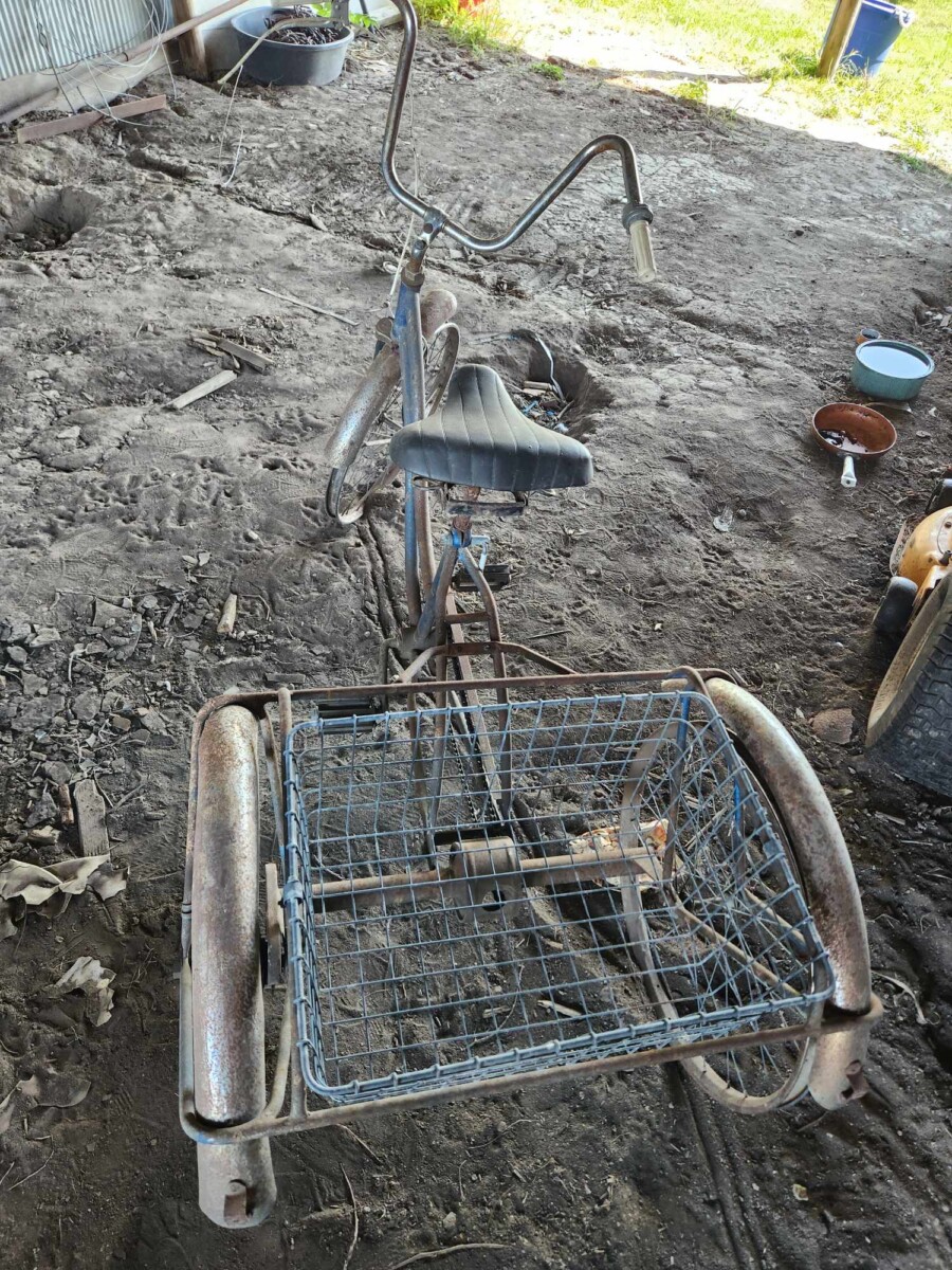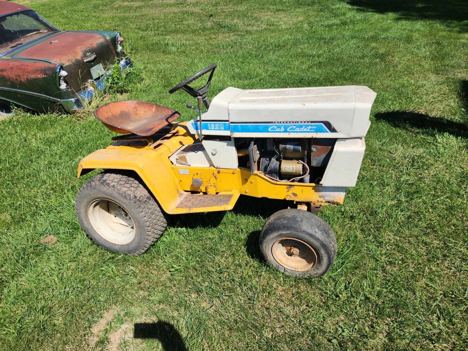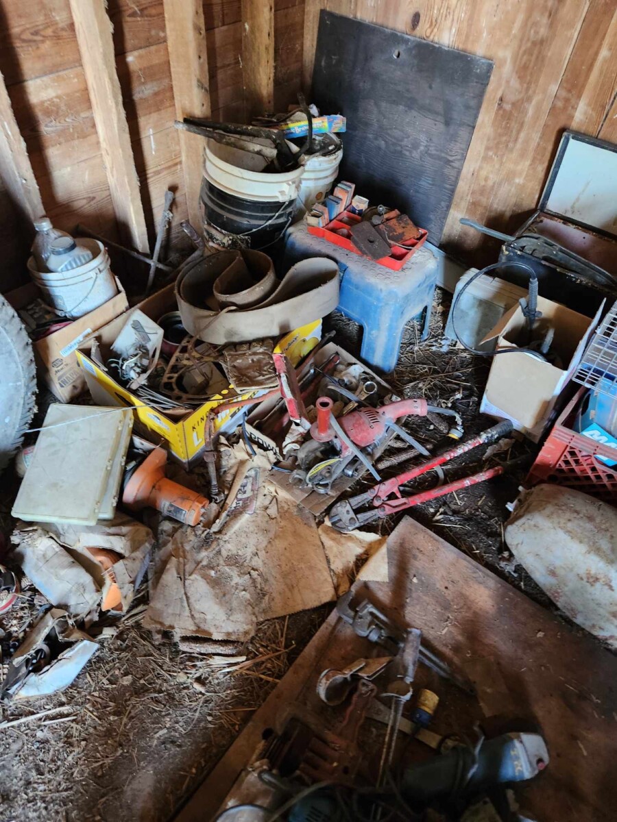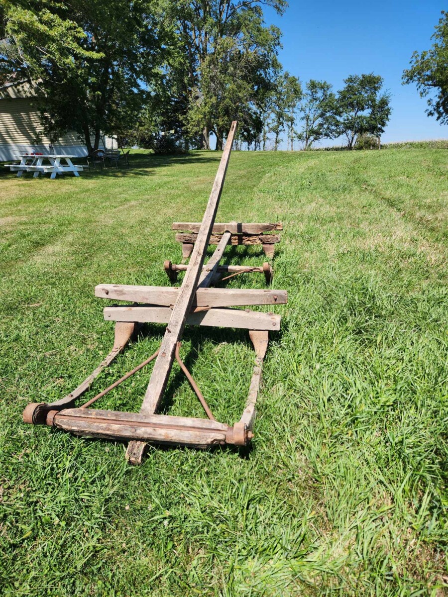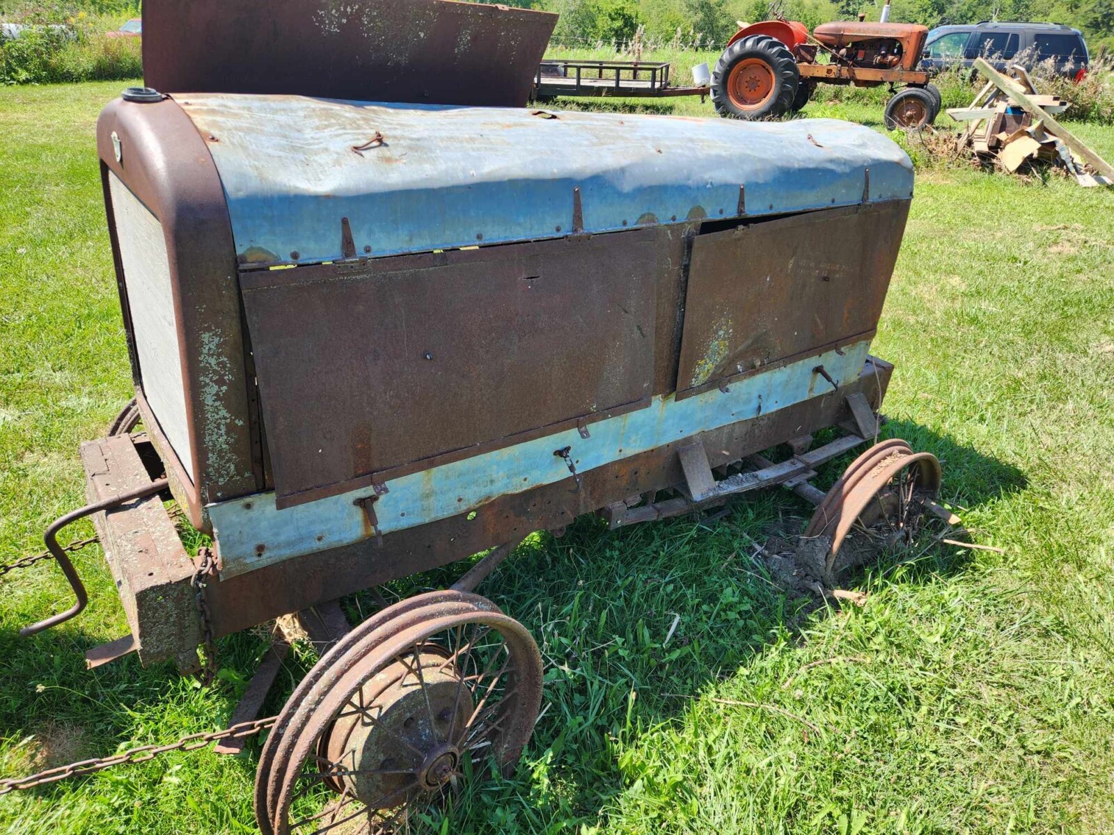 3 pt carrier; IH ground drive manure spreader; bob sled horse drawn; Vermeer 605 baler; Massey Ferguson 110, 3 pt spreader; barge box w/ Big Bear gear; Allis Chalmers 8.5′ snap coupler blade; IH 1650 hydrostatic garden tractor; Allis Chalmers 3 bottom snap coupler; utility trailer; Massey Harris flare side w/ hoist; JD 2 bottom plow pull type, 14′; 4 section harrow; 25 gal tractor tire fluid, calcium chloride; Allis Chalmers snap coupler 7′ sickle mower; King Kutter finish mower, 3 pt; #5 JD sickle mower; IH 990 mower conditioner, 10′; JD 120 lawn mower; 2012 50″ RZTS Cub Cadet lawn mower, 23 hp Kohler; 50″ RZT cub cadet lawn mower, 23 hp Kawasaki engine; 318 JD lawn mower; Huffy 3 wheel bike; torch tube for a D14;