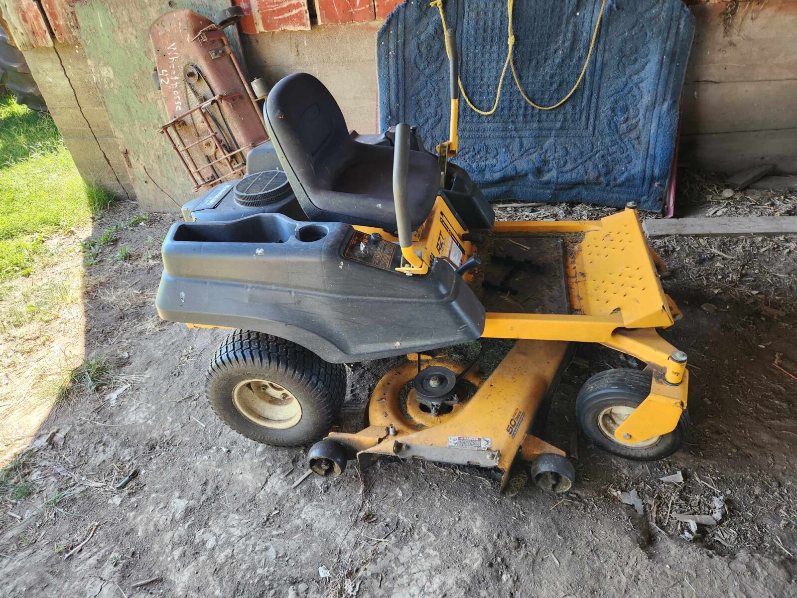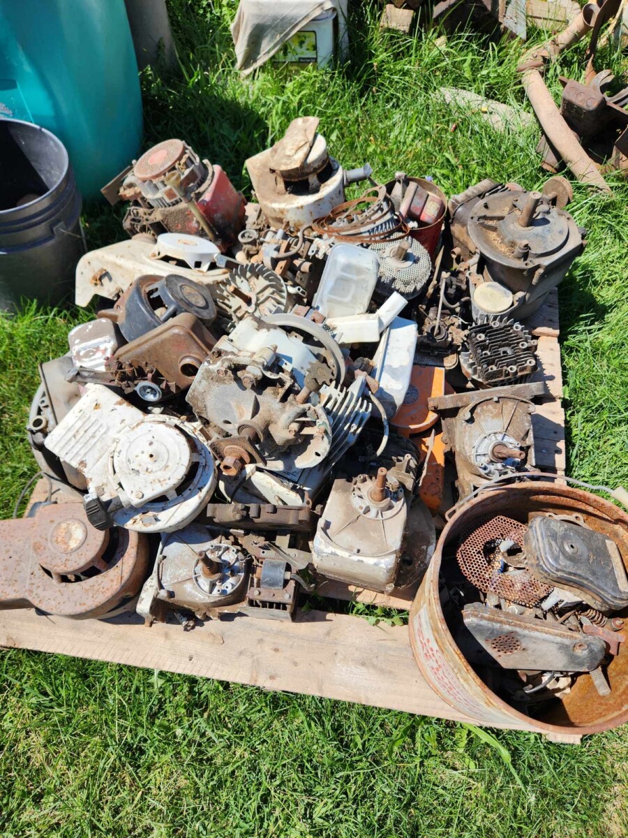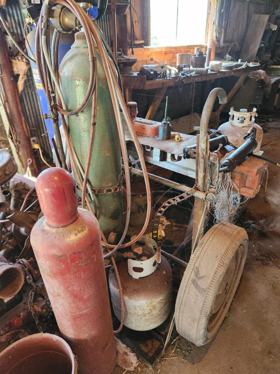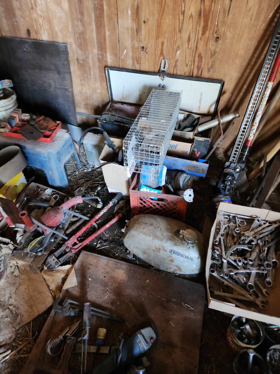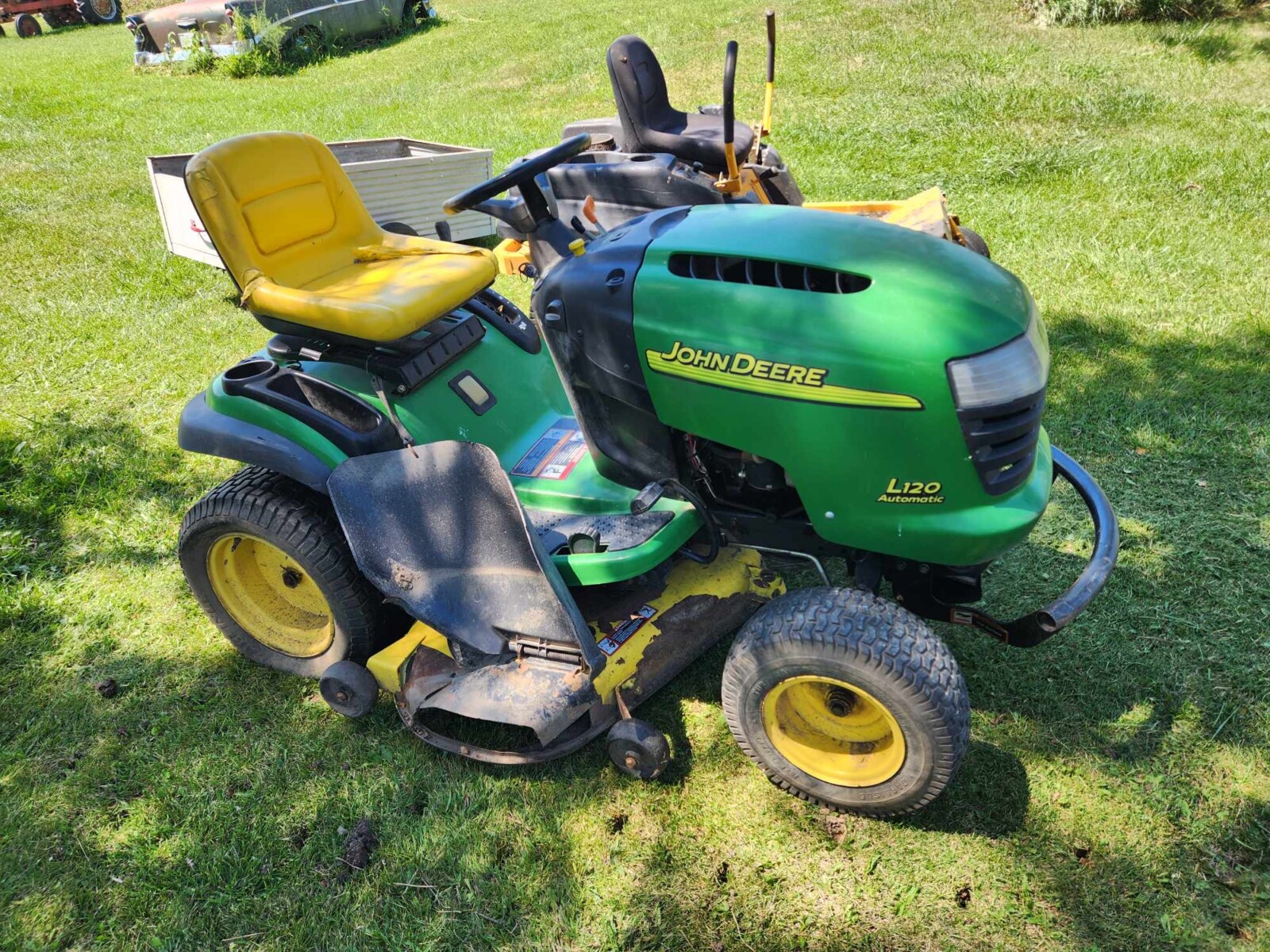 3 pt carrier; IH ground drive manure spreader; bob sled horse drawn; Vermeer 605 baler; Massey Ferguson 110, 3 pt spreader; barge box w/ Big Bear gear; Allis Chalmers 8.5′ snap coupler blade; IH 1650 hydrostatic garden tractor; Allis Chalmers 3 bottom snap coupler; utility trailer; Massey Harris flare side w/ hoist; JD 2 bottom plow pull type, 14′; 4 section harrow; 25 gal tractor tire fluid, calcium chloride; Allis Chalmers snap coupler 7′ sickle mower; King Kutter finish mower, 3 pt; #5 JD sickle mower; IH 990 mower conditioner, 10′; JD 120 lawn mower; 2012 50″ RZTS Cub Cadet lawn mower, 23 hp Kohler; 50″ RZT cub cadet lawn mower, 23 hp Kawasaki engine; 318 JD lawn mower; Huffy 3 wheel bike; torch tube for a D14;