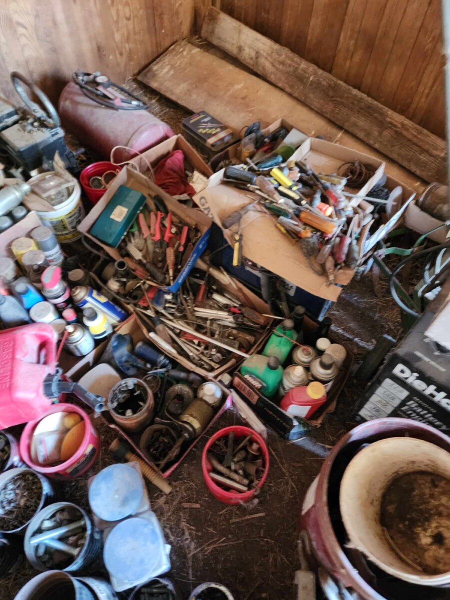 Chevy 1962 truck box trailer; 327 w/ power Glyde engine; 1956 Chevy straight 6 engine; 1972 Chevy w/ 400 chevy motor; 1956 Chevy 2 door post; 1930 model A 2 door Sedan, complete; 2005 Ford Ranger pickup FX 4WD, 100k+ miles, automatic; salvage Ford Explorer, 2005; salvage S-10; 1930 Chevy 6 cylinder rebuilt engine; Model A Frame; 2002 Honda Forman, 4×4 four wheeler, 6700 miles, 1200 + hrs; Yamaha motorcycle made in Japan;