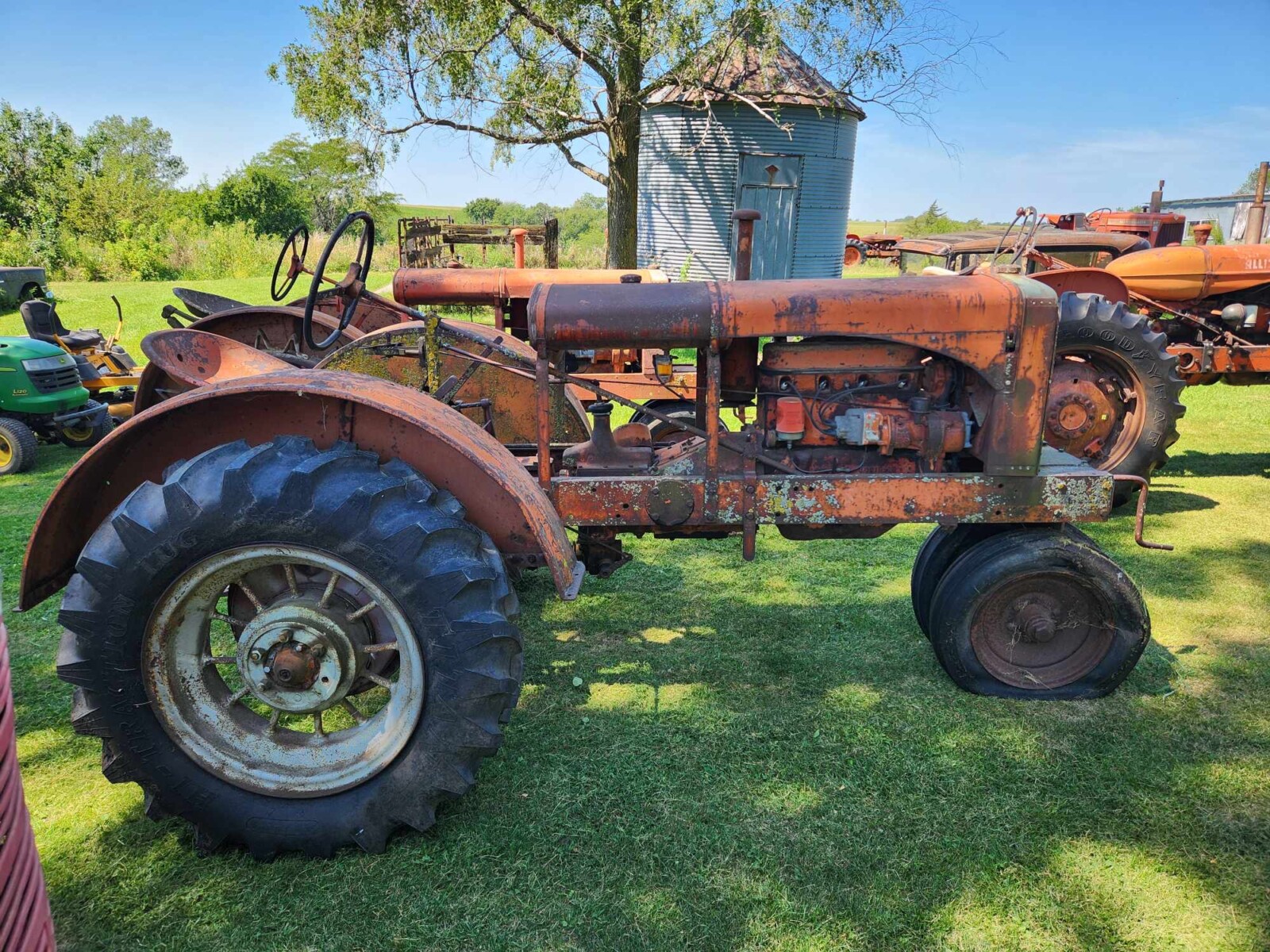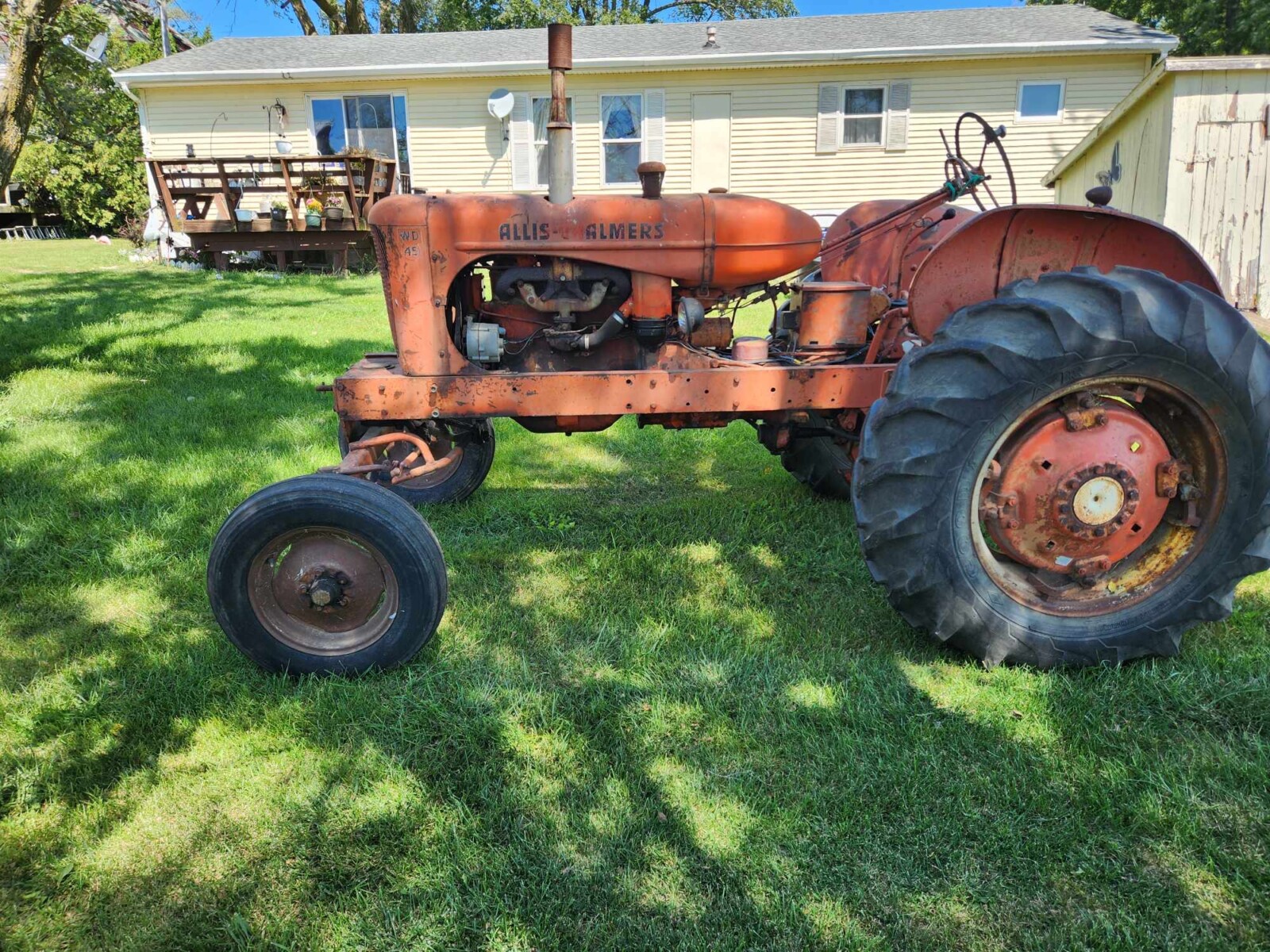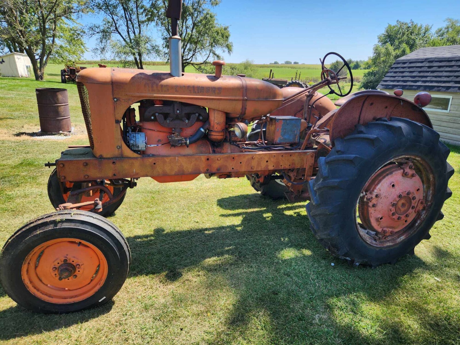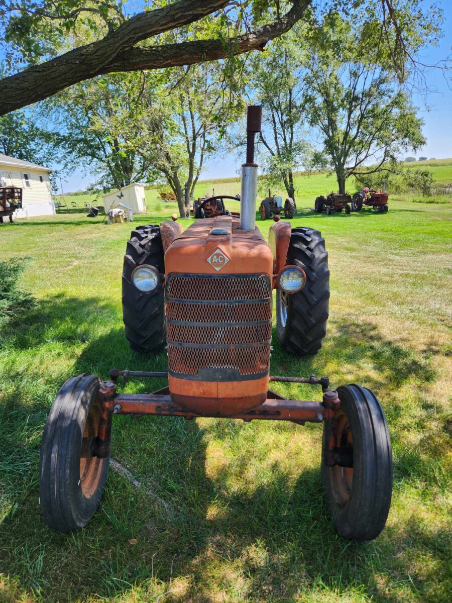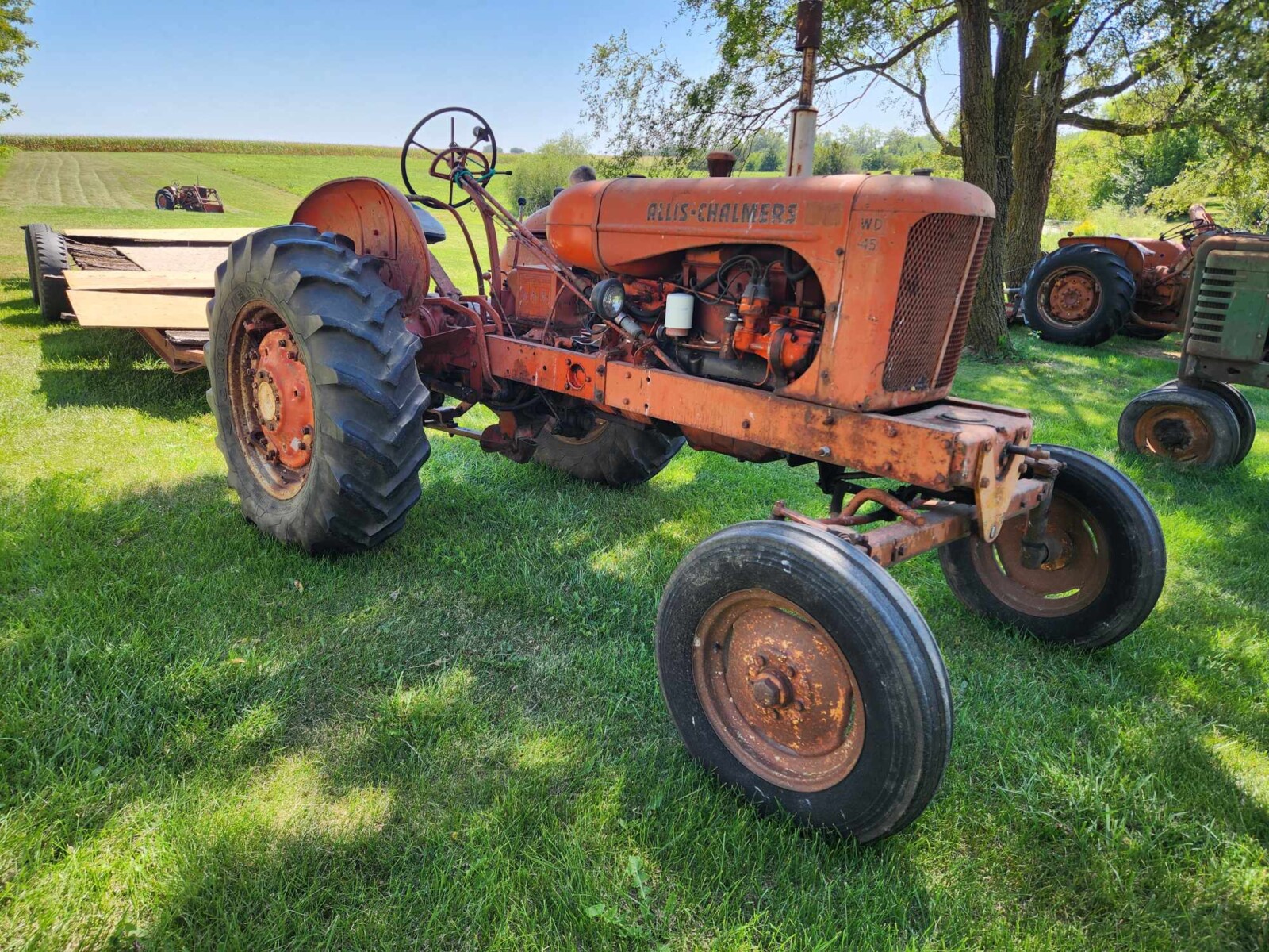 Allis Chalmers WD 45, wide front, loader, 3 pt.; Allis Chalmers WD, wide front, 180 Chalmers fenders, 16.9×26 rear tires, loader; Allis Chalmers WD, real good motor, wide front; 1940 Farmall H; Massey Harris 33, power steering; Caterpillar R4 Dozer; JD A tractor; Allis Chalmers 1953 WD narrow front; Allis Chalmers 1955 WD 45, wide front, 3 pt.,; 1949 John Deere B; 1944 John Deere B; Allis Chalmers 1957 D14, wide front, 3 pt., loader; Farmall 1940 H fenders; Allis Chalmers WD 45, power steering, WF, snap coupler; Allis Chalmers WD 45, NF, power steering, loader; Allis Chalmers 1960 D14, new 13.6×26 rears, power steering, wide front, doesn’t jump out of gear; Allis Chalmers 1950 WD, power steering, NF, rear weights; Allis Chalmers 1935 WC, steel wheels, front rubber, fenders; Allis Chalmers 1936 WC, new rubber, fenders, spoke wheels, 12.4×24; Farmall H 1952; Allis Chalmers 1966 D17 deep rubber, 3 pt, dual hydraulics; Farmall H 1952, live clutch, good rubber; Allis Chalmers WC 1937, rubber, cultivator mounts; John Deere B 1947;