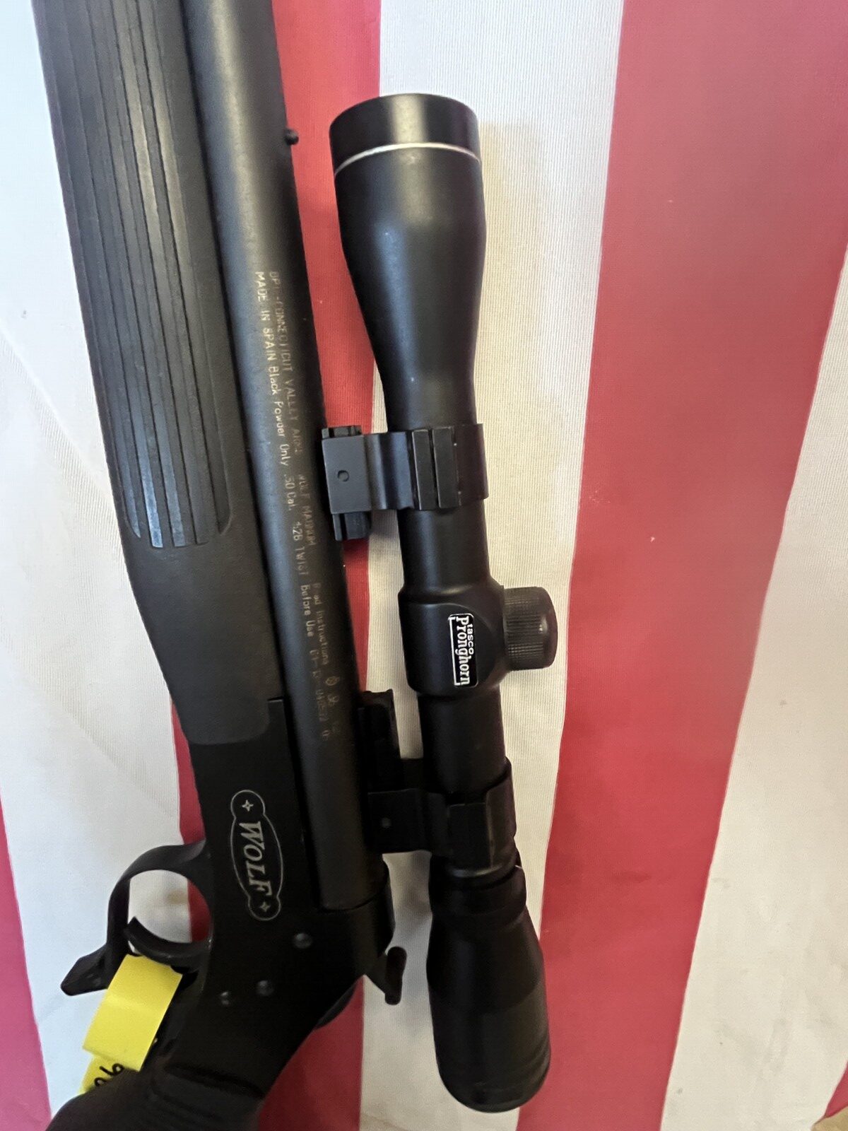 - Wolf Magnum 50 cal., 1:28 twist w/ Tasco Pronghorn scope