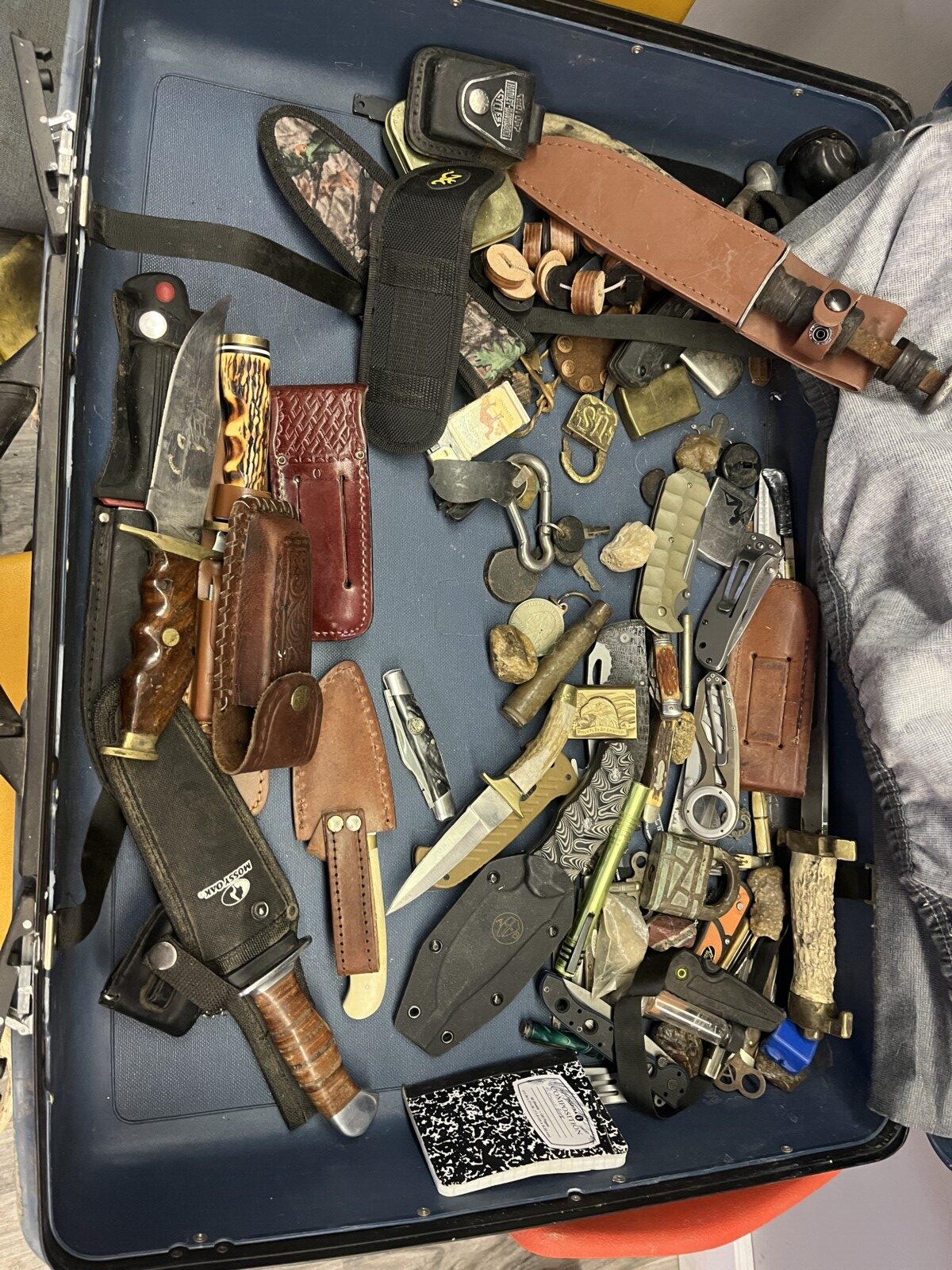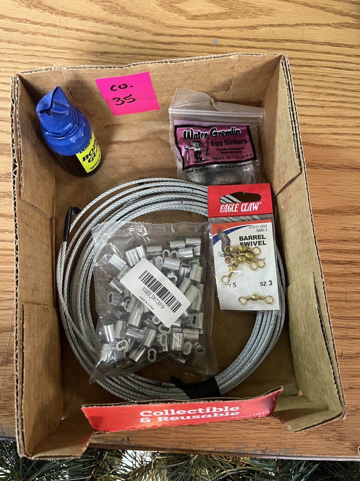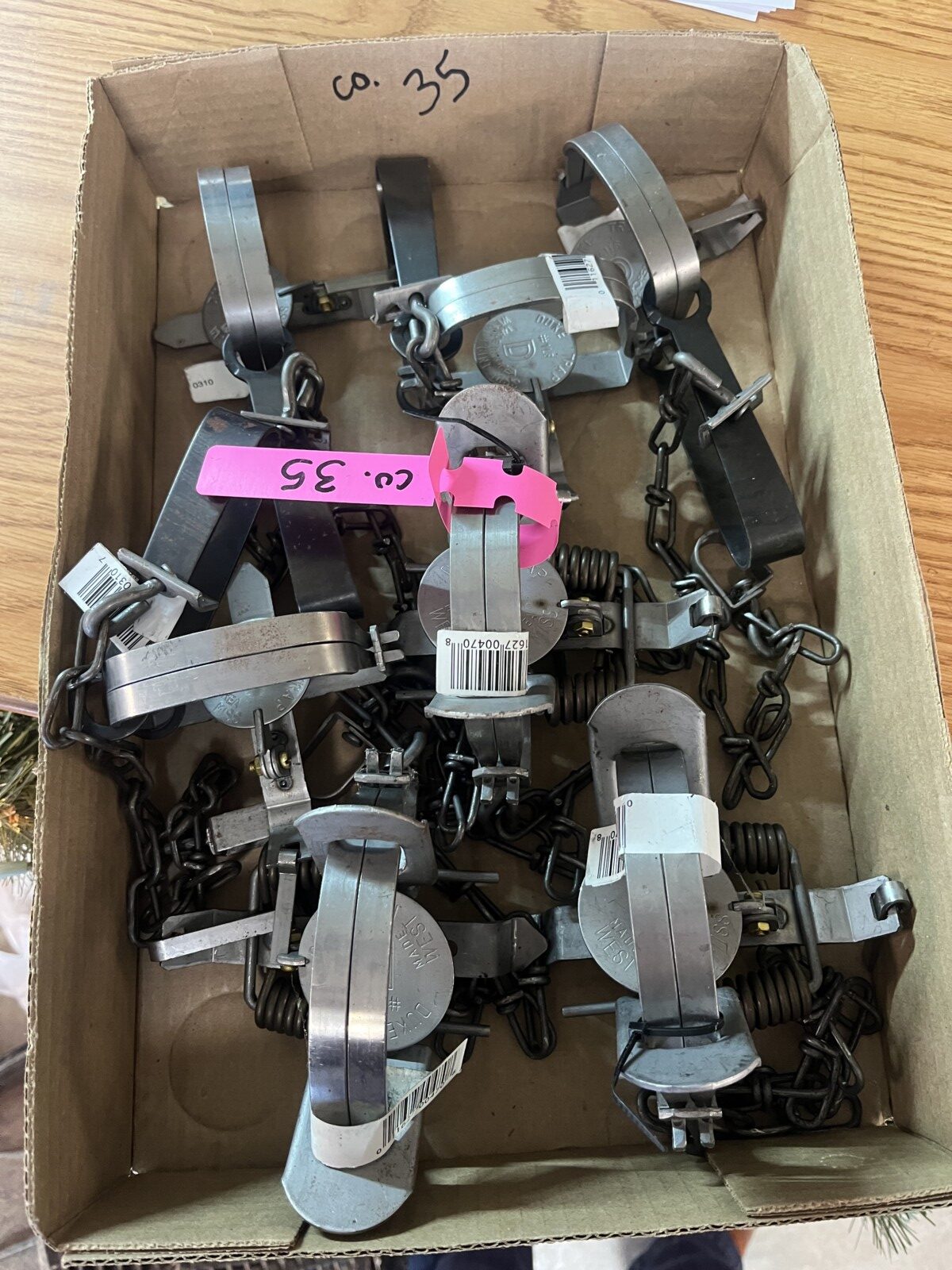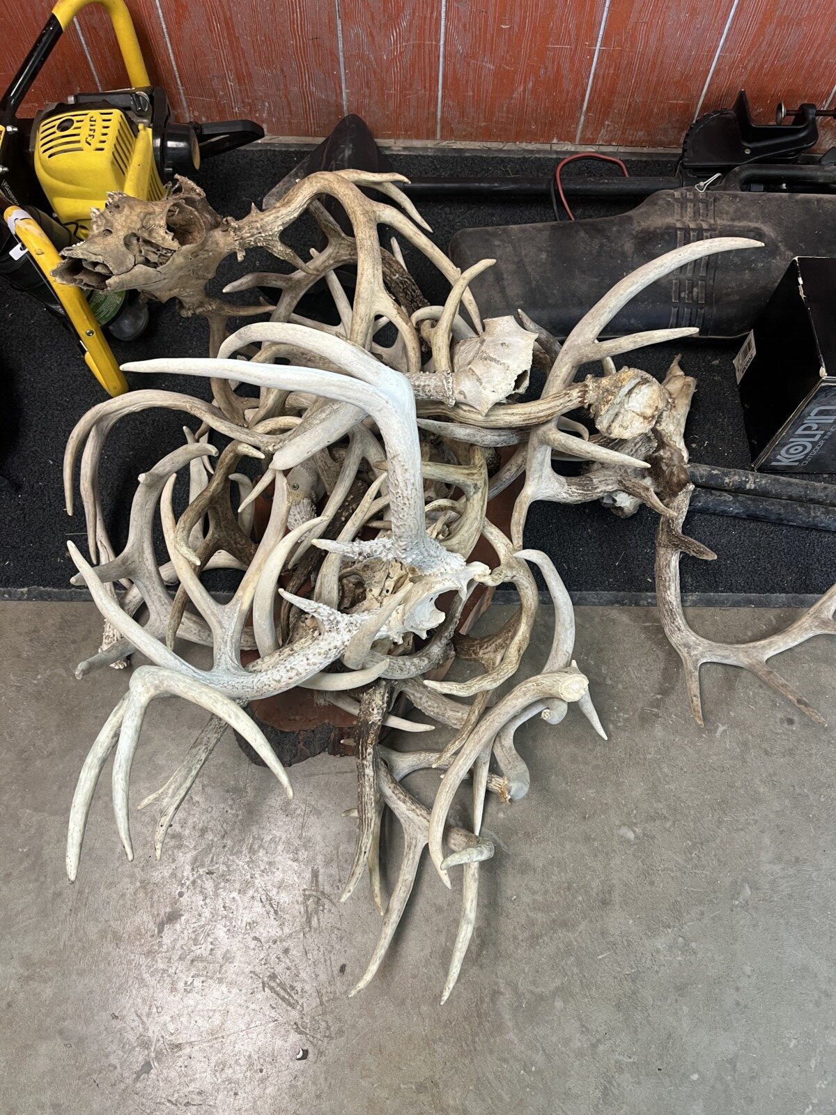 There is Antlers; ammo; holsters; primers; Bows; child compound bow; arrows; quivers; tree stands; BB guns; LP Ice auger; trolling motor; traps; trap wax; deer feeder; pop up blind; Coleman lanterns;
