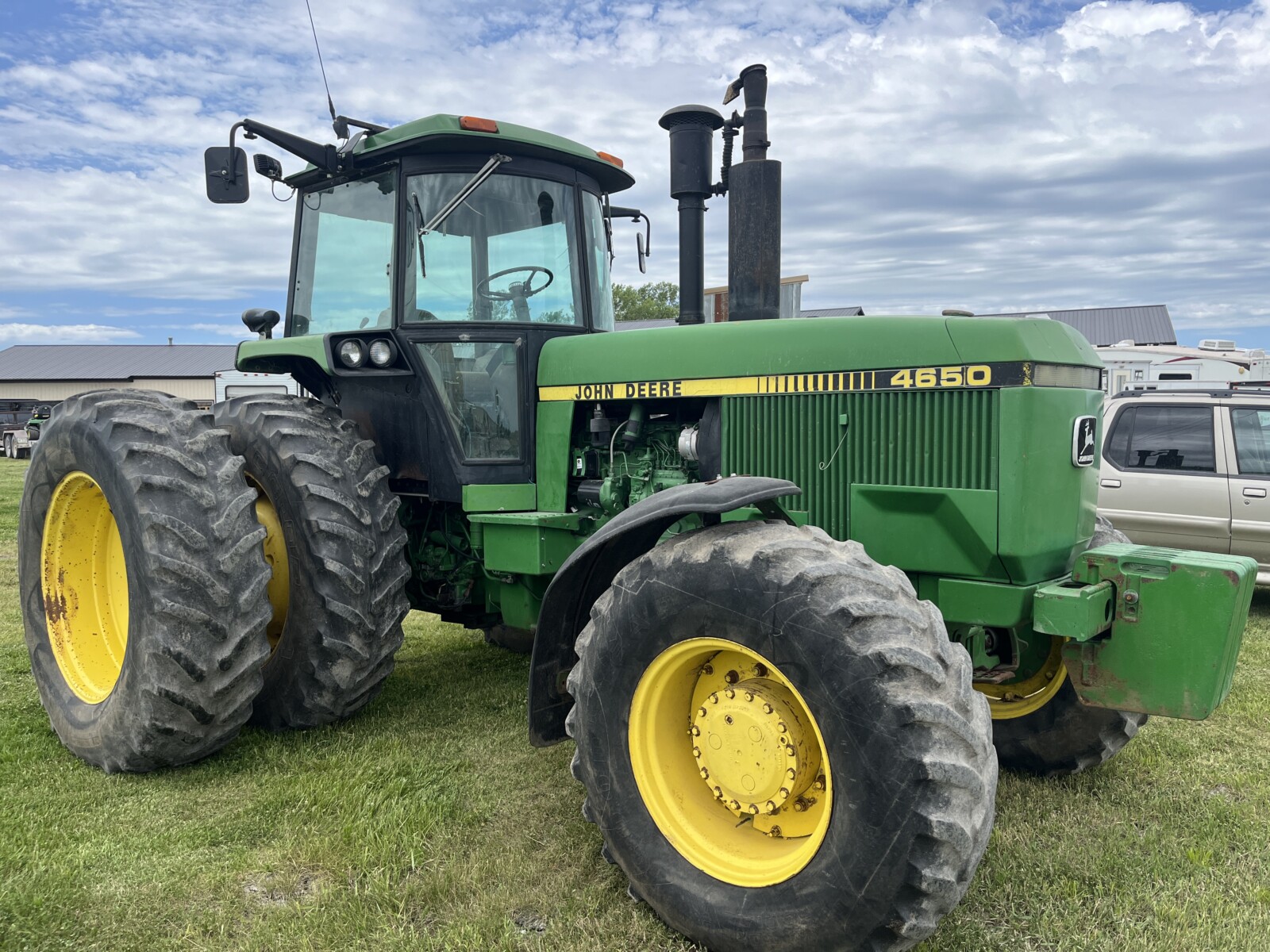 John Deere 2010, 34,852 hrs. nice; Ford 4000 tractor, 6274 miles; John Deere Model B tractor, SN:B235167; McCormick Farmall model H, SN: FBH 372002 Xl, 1815 RPM; 4650 John Deere tractor, MFWD, A/c works, front weights, rear weights, 3 pt., unknown hrs, sounds good runs good, duals, front fenders, clean cab, straight tin,