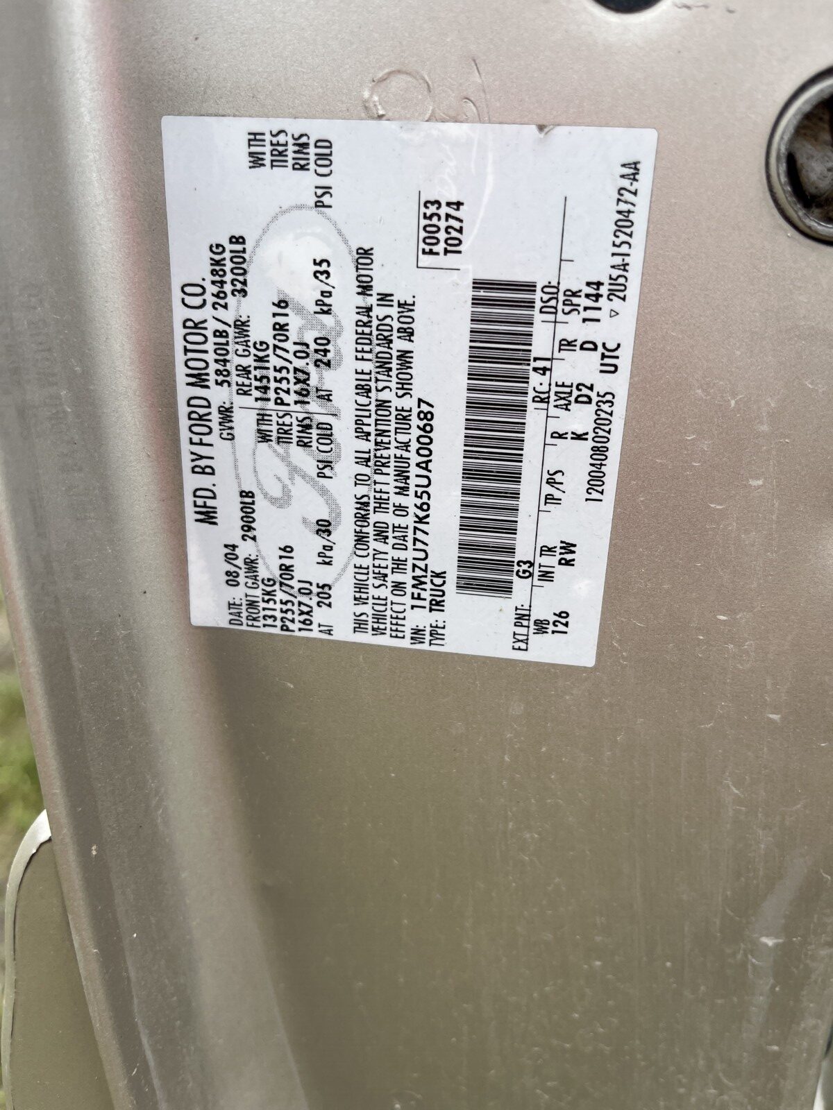 Ford F250 Super Duty, Triton V10, 4×4, 122,900 miles, VIN: 3FTNXZ1S63MB41749; 2005 Ford Explorer Sport trac XLT, 156,818 mi., 4×4, VI: 1FMZU77K65UA00687; 1979 Ford F150 custom stepside, 87,500 mi. 4wd, manual, 35″ rubber, aluminum wheels, VIN: F14HLEG4122; Ford 4000, F-100; 2000 yr., GMC C6500, model 6, tires, 245/70 R19.5, VIN: 1GDG6H1B84J905597;