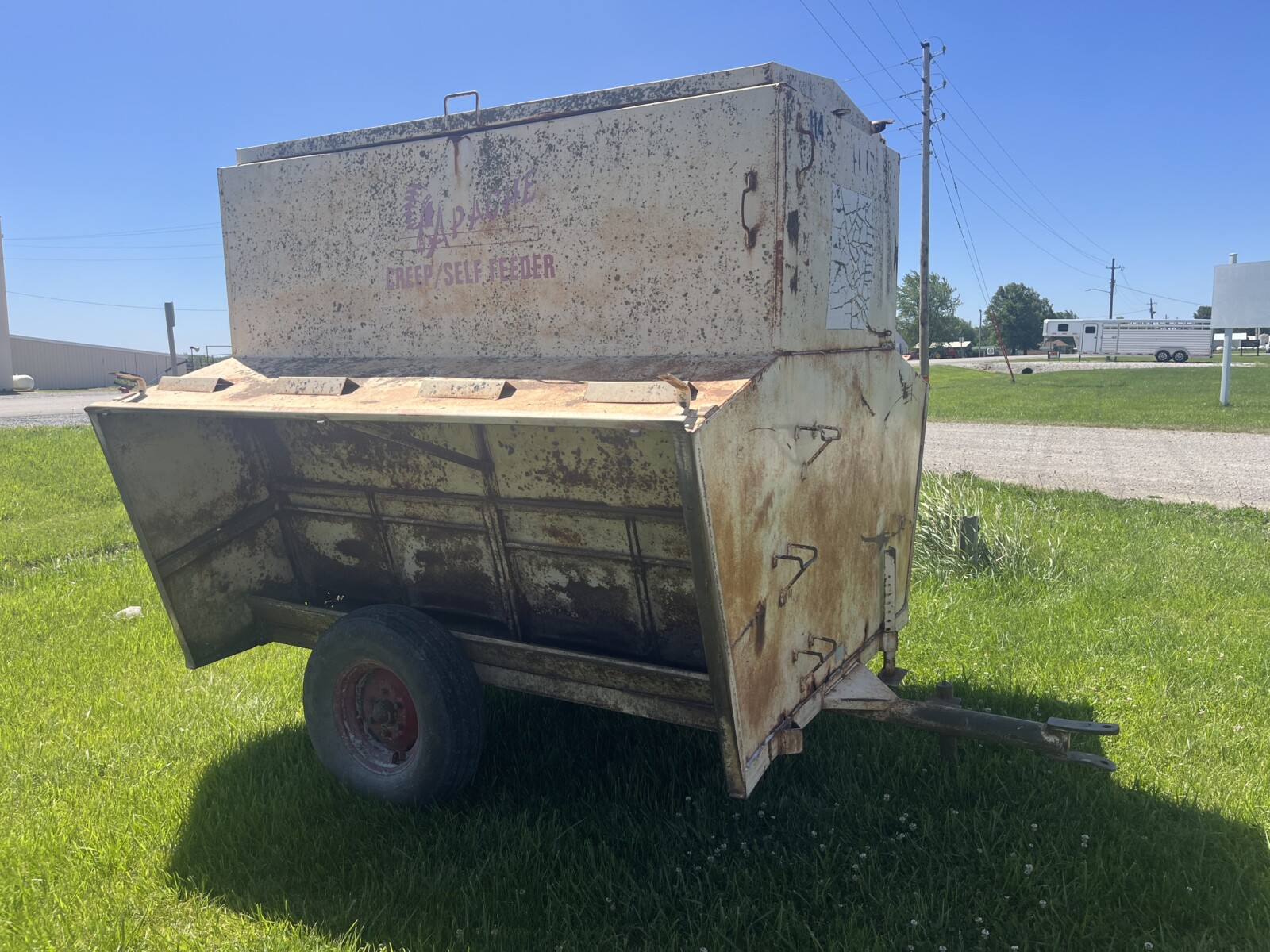 Landpride 25-72 mower; Fender body for gas truck; Creep feeders; Kory K145OT trailer; Utility truck box; Stock trailer; International 400 7 row planter;