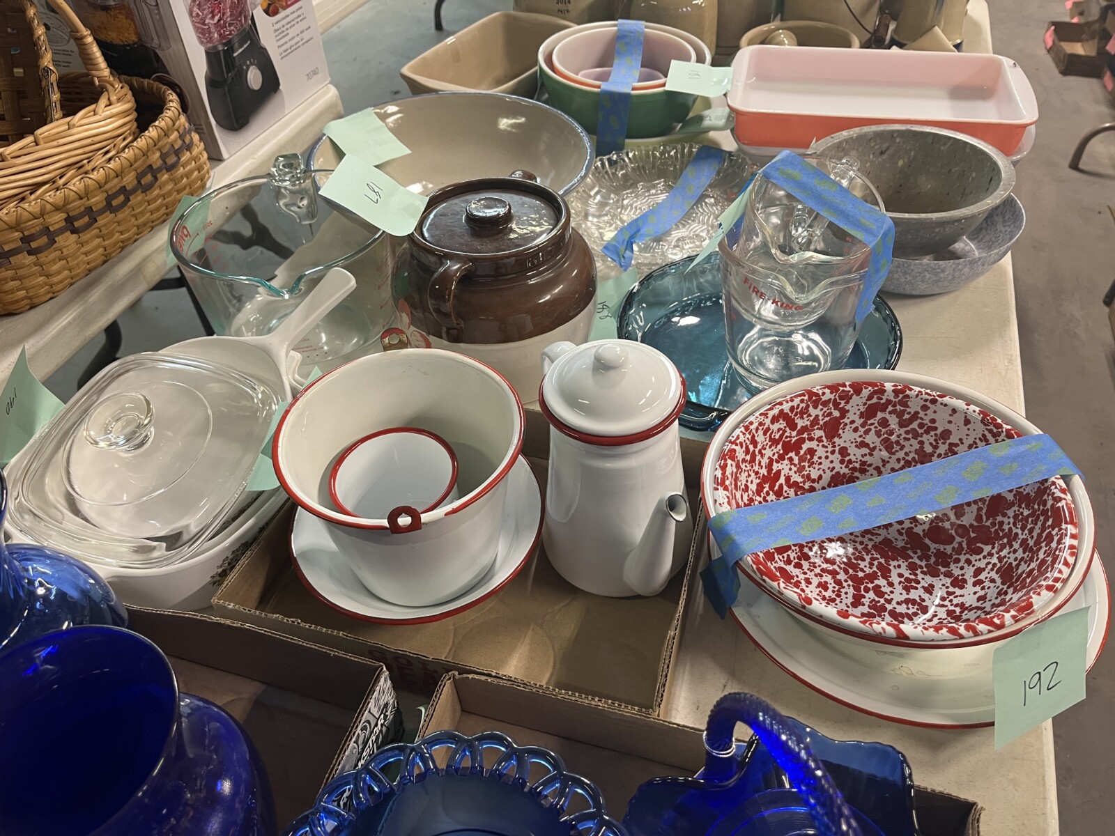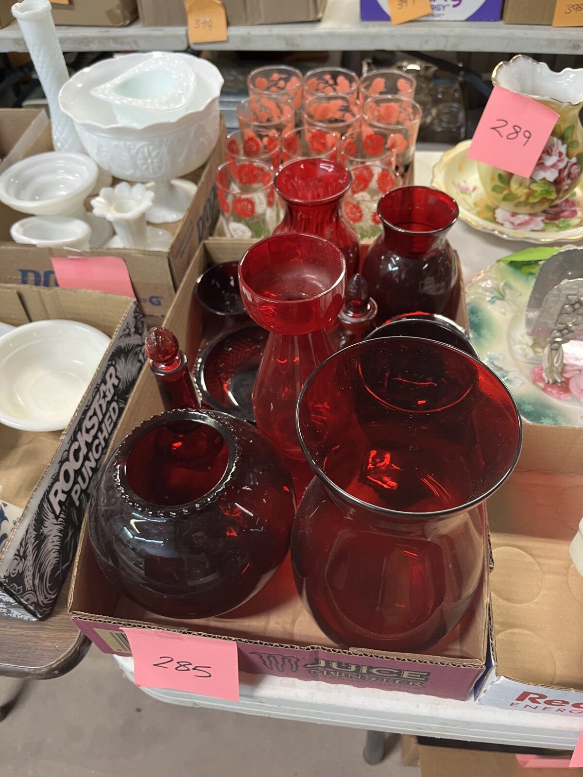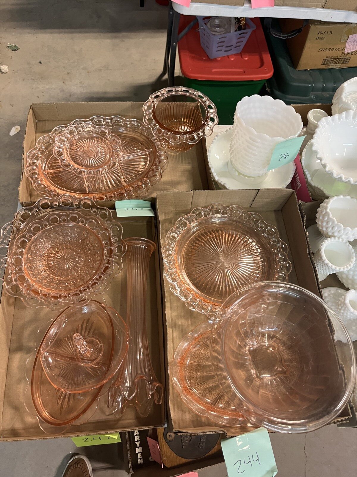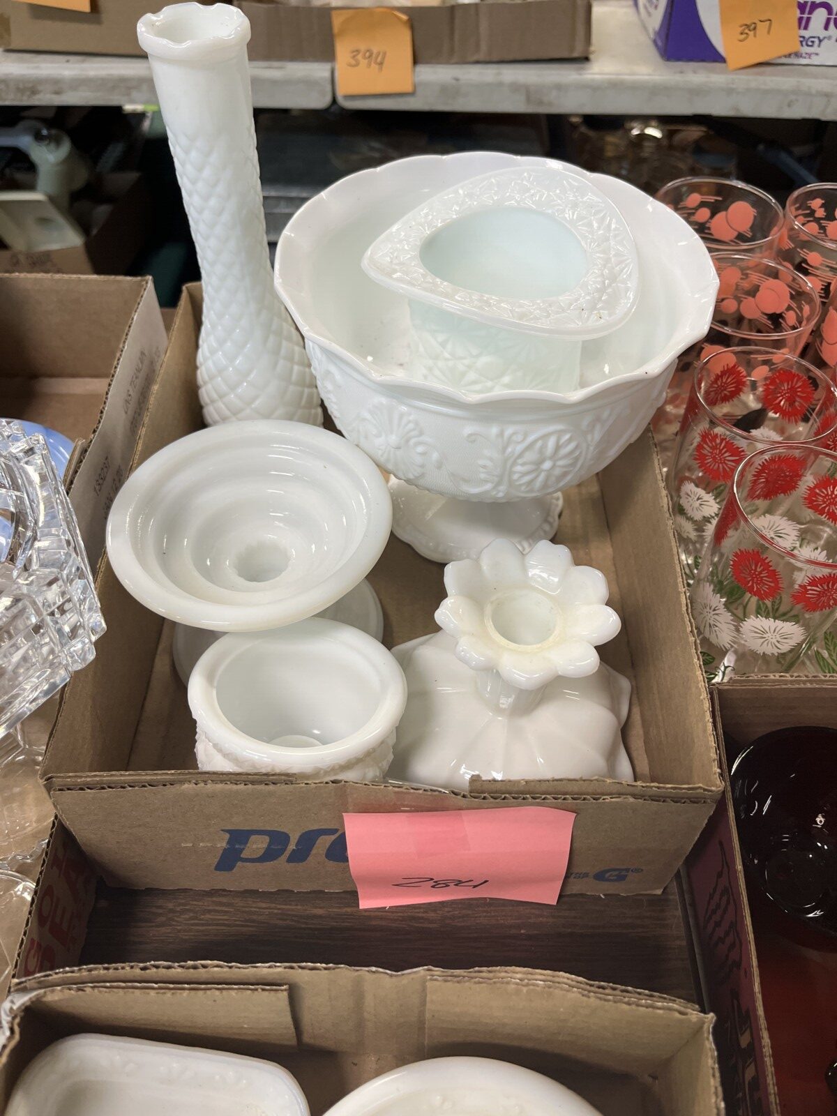 This Auction is Part 1 of the Curry Estate consists of very clean Houshold, white milk glass, pink depression, red glass, Colbalt blue glass, Corning Ware, old pocketknives, Jewelry, memorabilia, Tupperware, Longaberger, and many Antiques and Collectibles. Everything was meticulously cared for by the very reputable Curry family. Plenty of bidder confidence here!