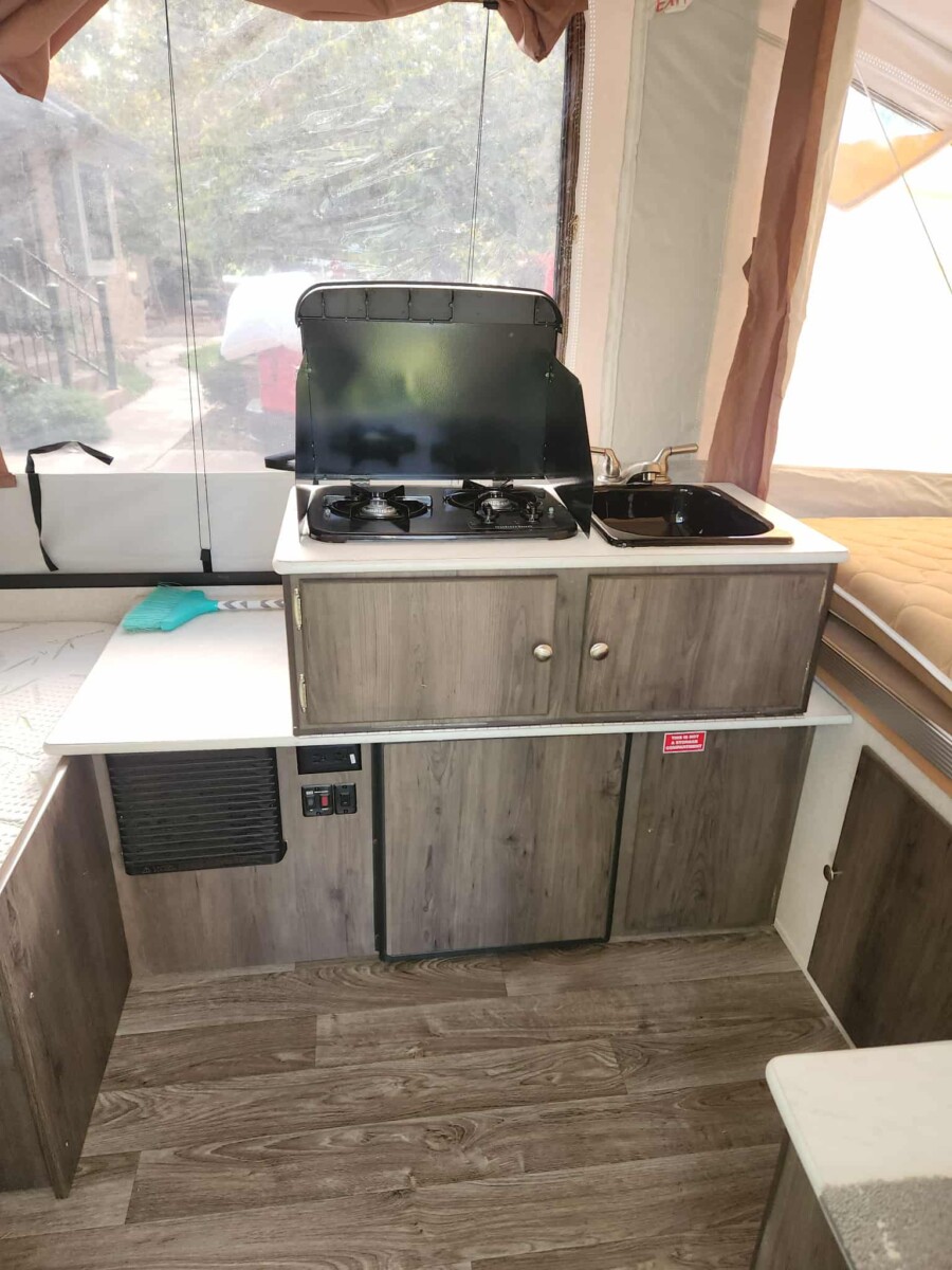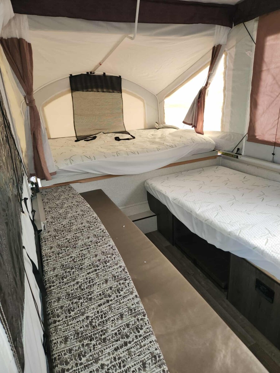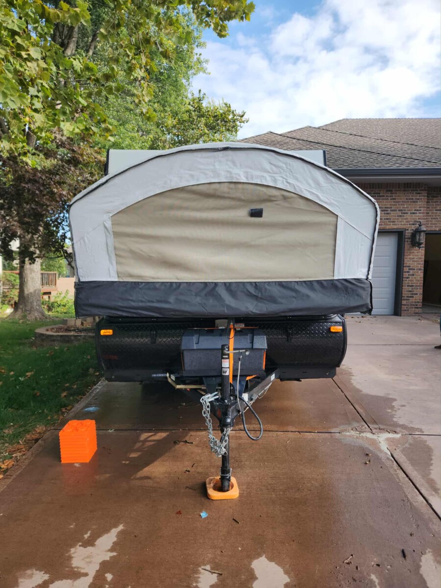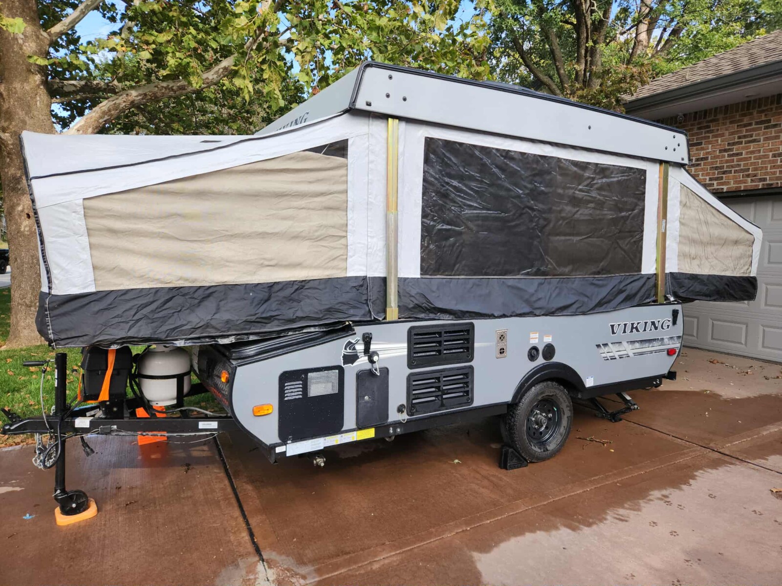 2020 Viking pop up camper, make FRRV, VIN:5ZT1VKECOL5016984, outdoor roof top A/C and propane Furnace, exterior grill with propane attachment, awning, standard power refrigerator low voltage and line voltage, dinette, bench seating front storage bay, bike rack mount, spare tire, lots of extras, leveling blocks, power cords, hoses, inline water filter, and pressure reducing valve, all the power adapters for outside hook up plus additional water hose and extension cords, outside stove, sleeps six, great condition; 2014 Hornet travel trailer, VIN 4YDT23028E7202798, w/ title;