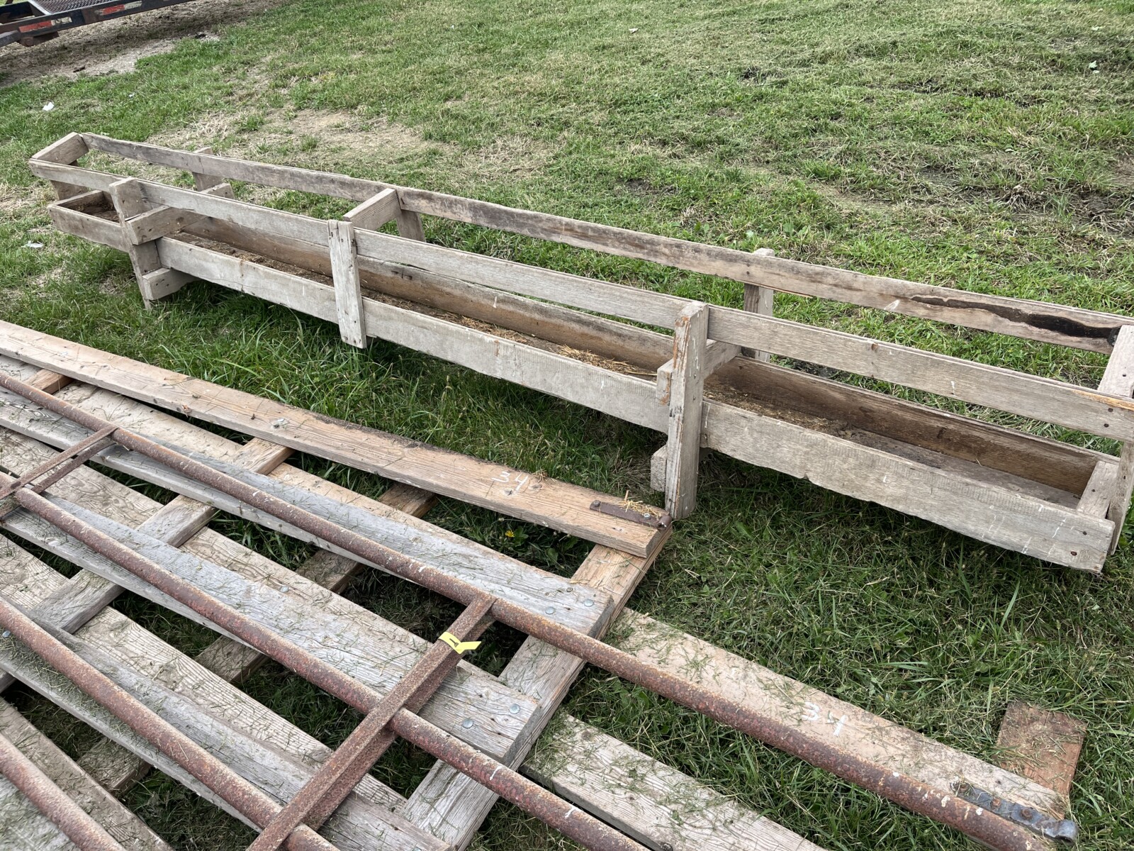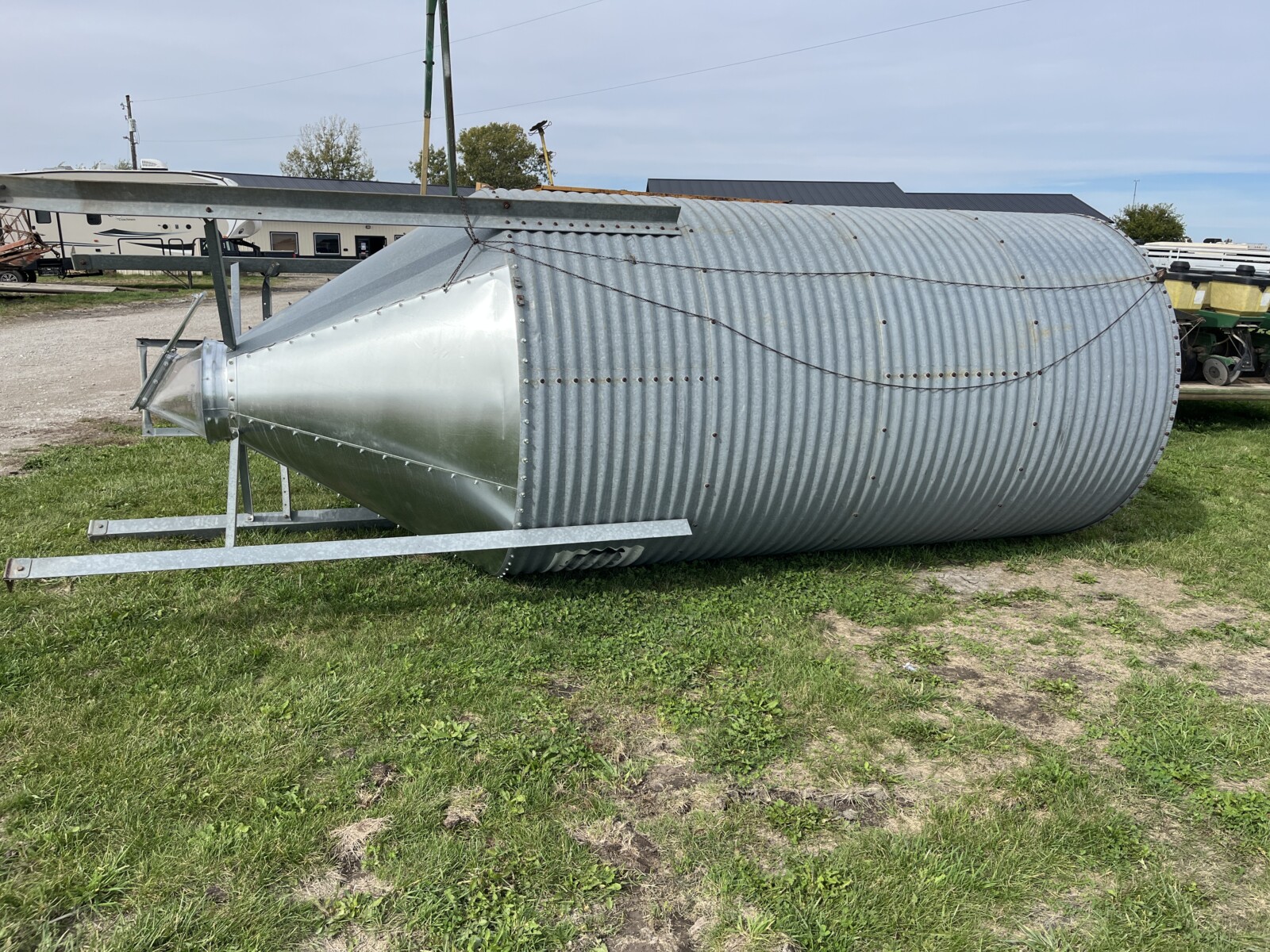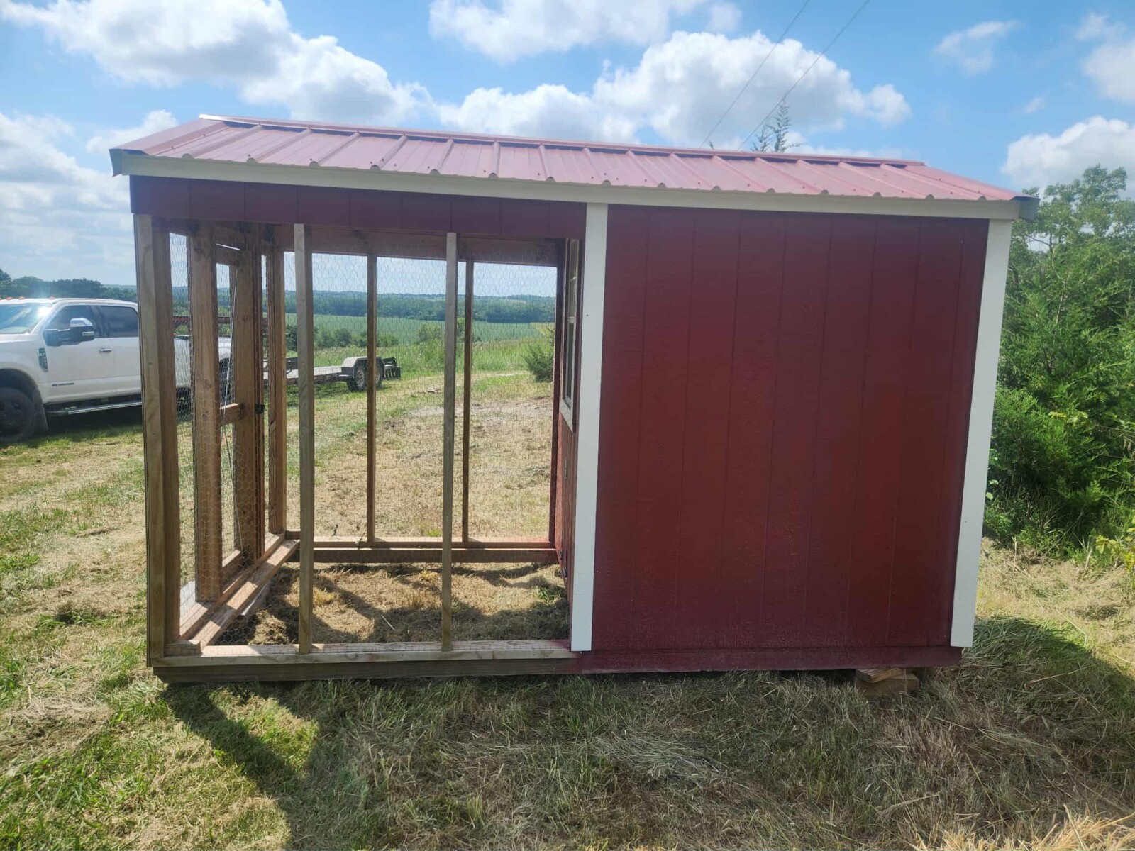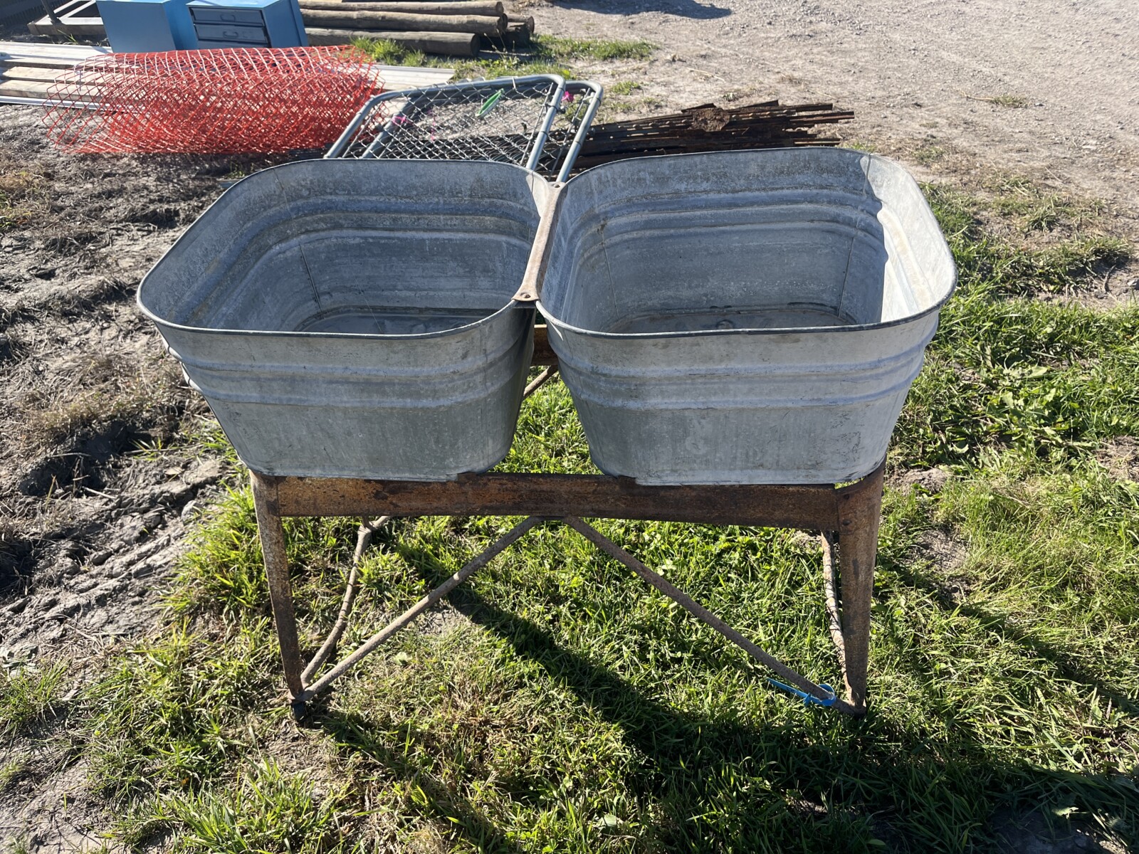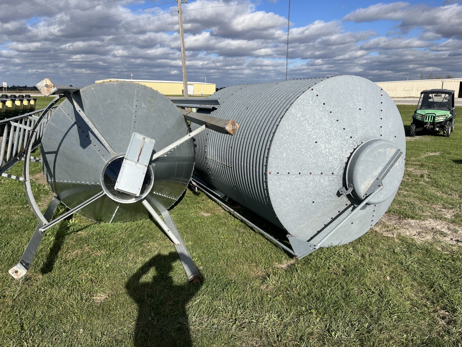 Panels; 7′ steel post; 6′ steel posts; 3′ gates; misc.; fence posts; wooden posts; snow fence; fence braces; woven wire; fiberglass posts; goat feeder; (3) mineral block feeders; 6 ton bin; 2024 6×12 chicken coop, basically brand new, made in Lamoni, Ia by Backyard portable buildings; tan shed; rolls of barb wire; bale ring; 6 ton bin; 5.5 ton bin; (9) stainless steel hog feeders; (2) hog crates;