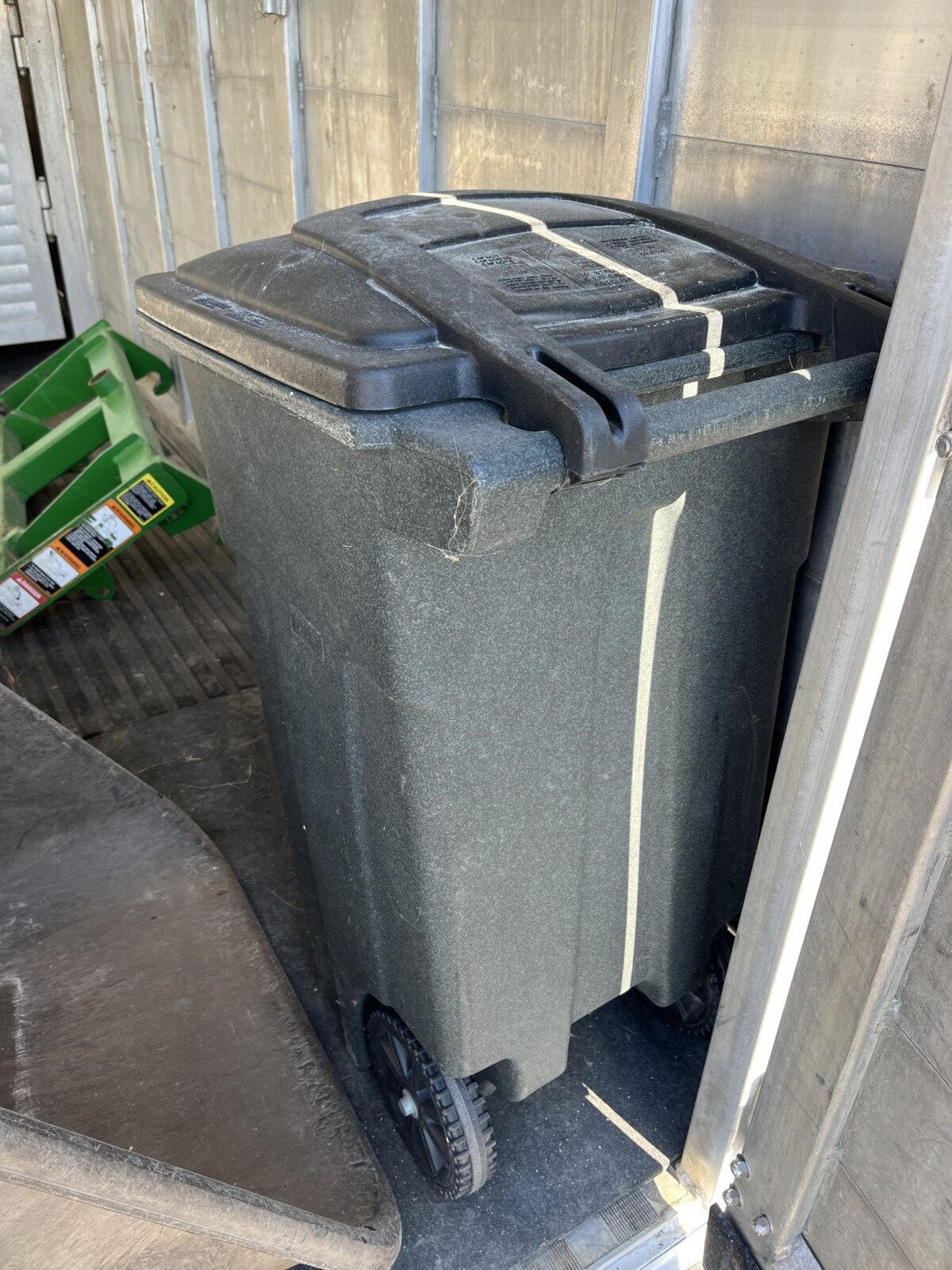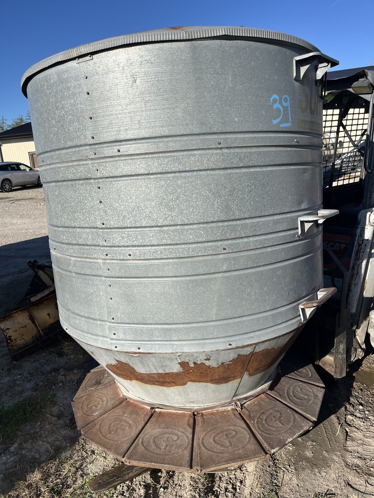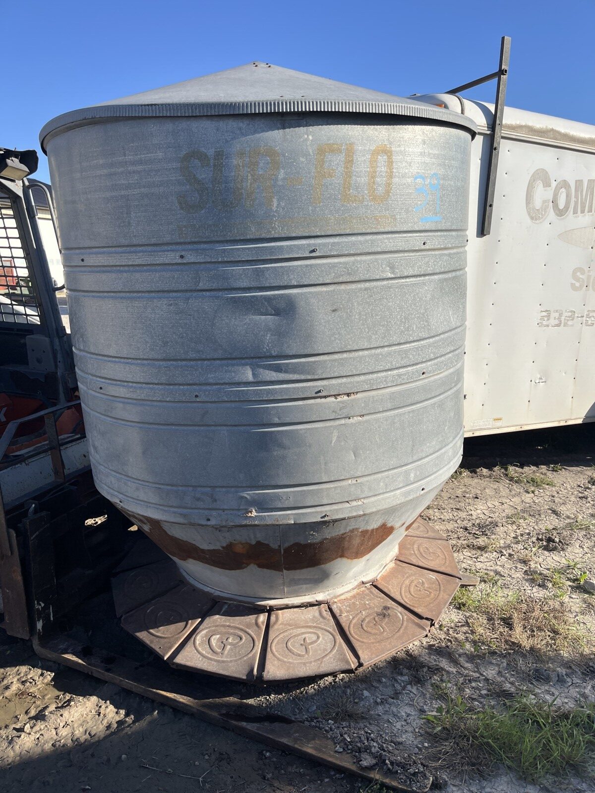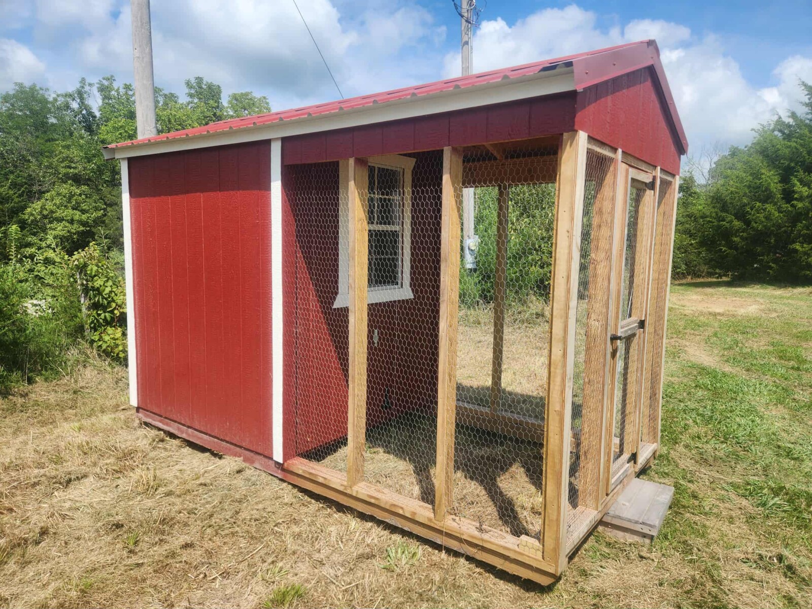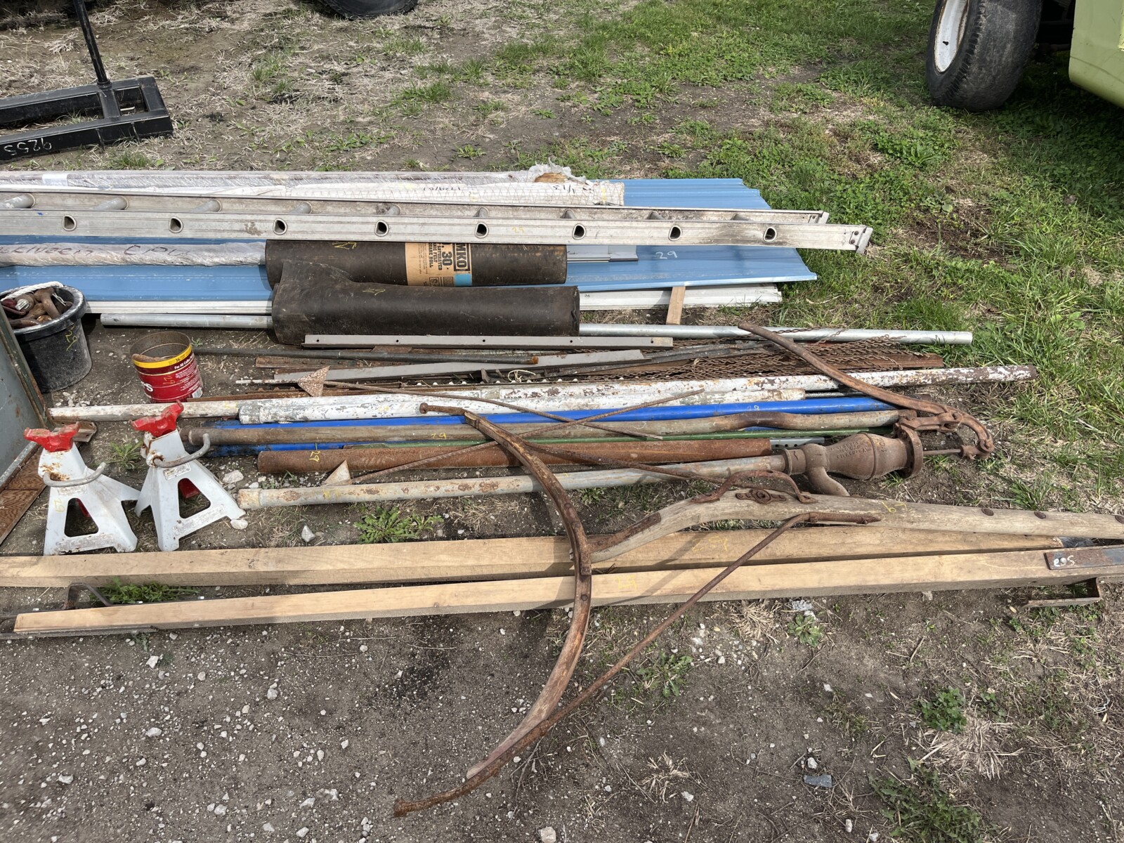 Panels; 7′ steel post; 6′ steel posts; 3′ gates; misc.; fence posts; wooden posts; snow fence; fence braces; woven wire; fiberglass posts; goat feeder; (3) mineral block feeders; 6 ton bin; 2024 6×12 chicken coop, basically brand new, made in Lamoni, Ia by Backyard portable buildings; tan shed; rolls of barb wire; bale ring; 6 ton bin; 5.5 ton bin; (9) stainless steel hog feeders; (2) hog crates;