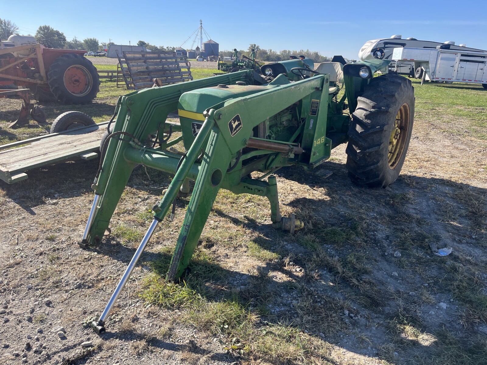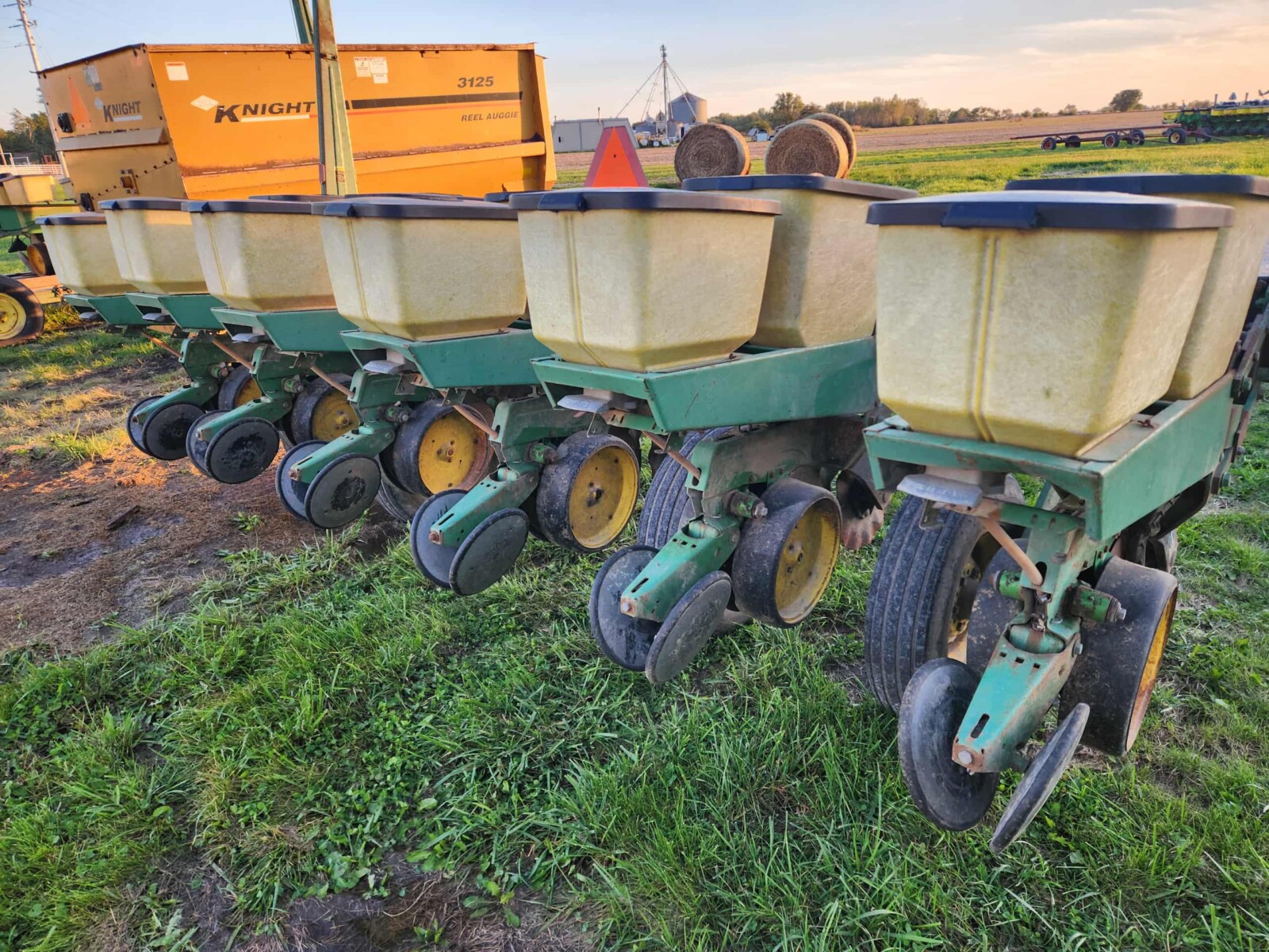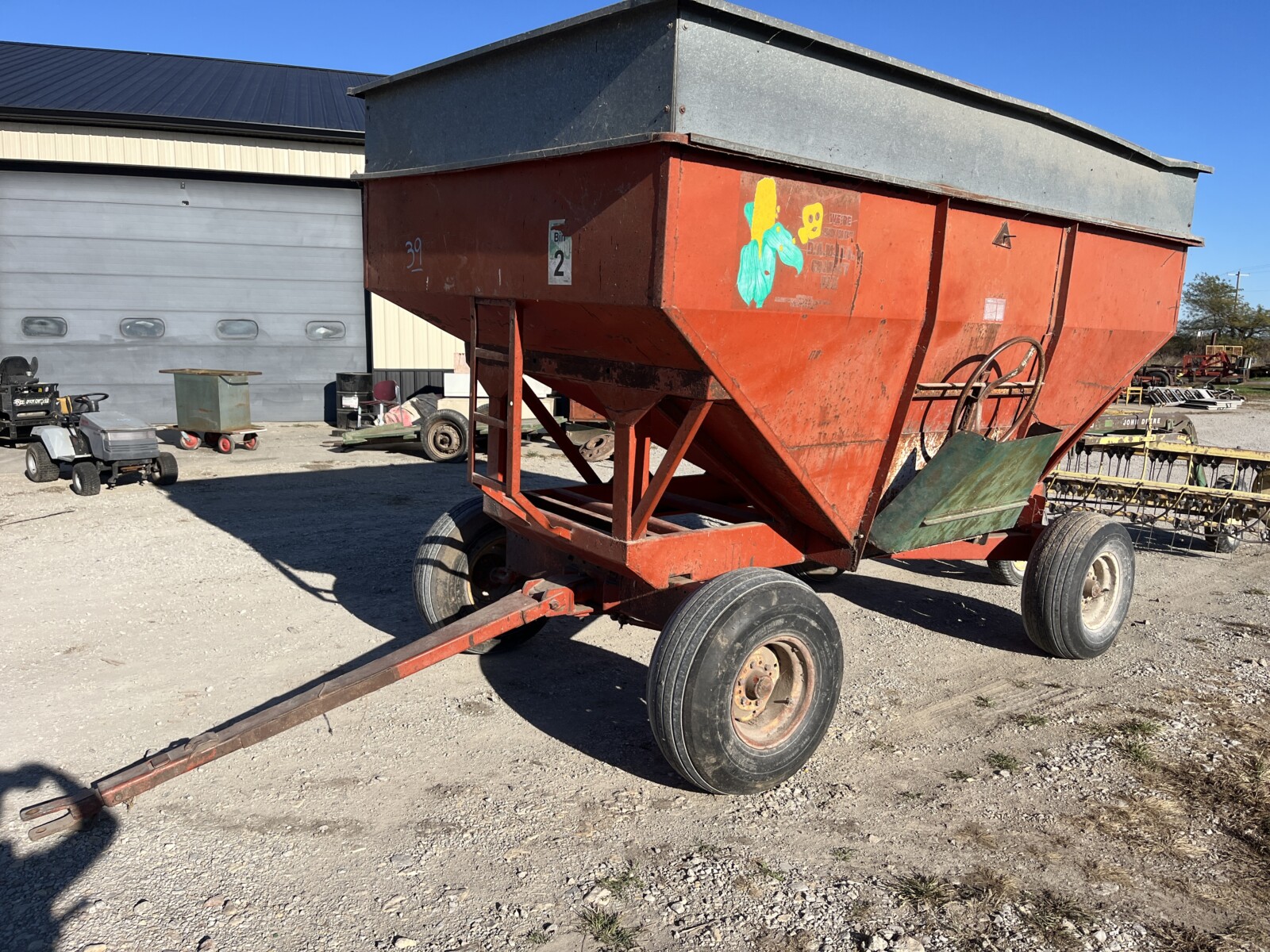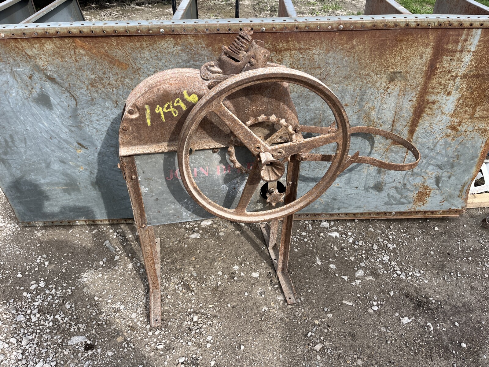 John Deere 4250 tractor; Krause Disc; Brent 820 grain wagon; Parker wagon; Gravity wagon; International tractor parts; IH weights; Kuhn Knight 3125 Reel Auggie; Roto Grinder; 3pt. Ditcher; 6′ finish mower; 2 row cultivator; dirt scoop; Allis Chalmers 66 pull type combine; John Deere blade; green sm. trailer; (2) tractor weights; JD 7000 planter; JD 201 planter; (2) head trailers; corn sheller; JD 216 bean head; Roller Mill; 3 pt. tiller; seed cleaner; John Deere 660 hay rake; 3pt. John Deere tiller;