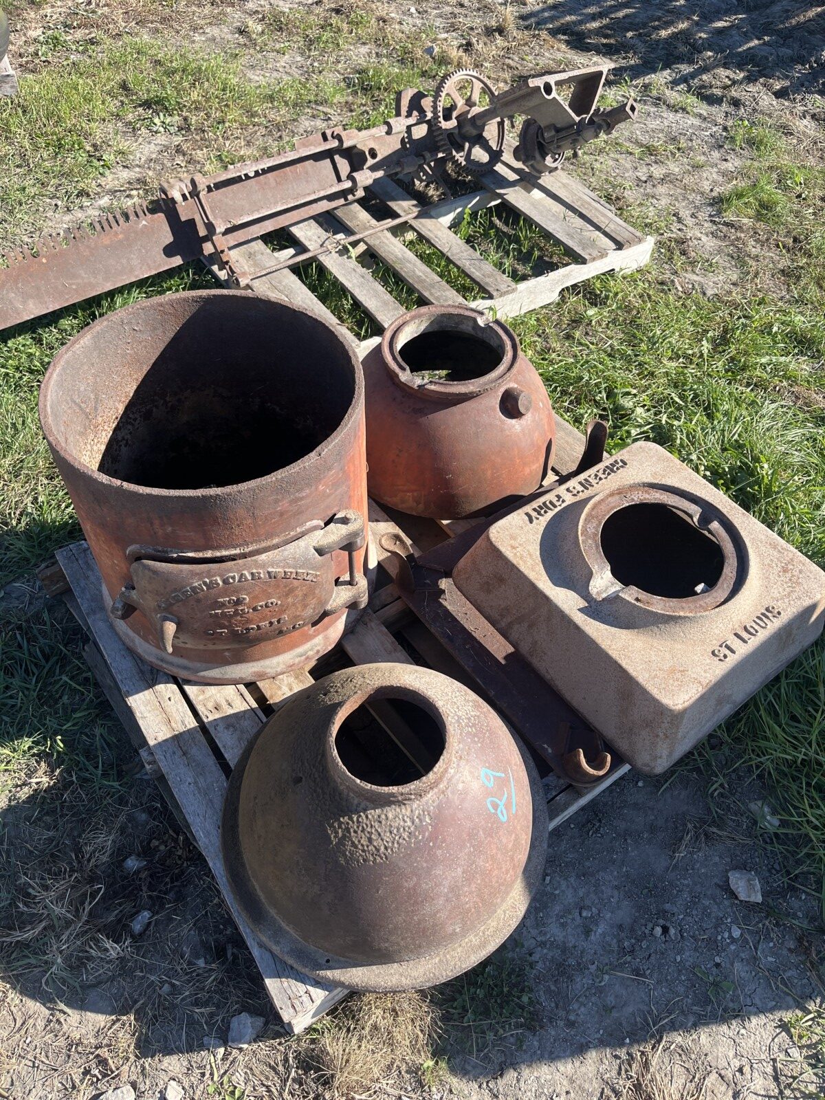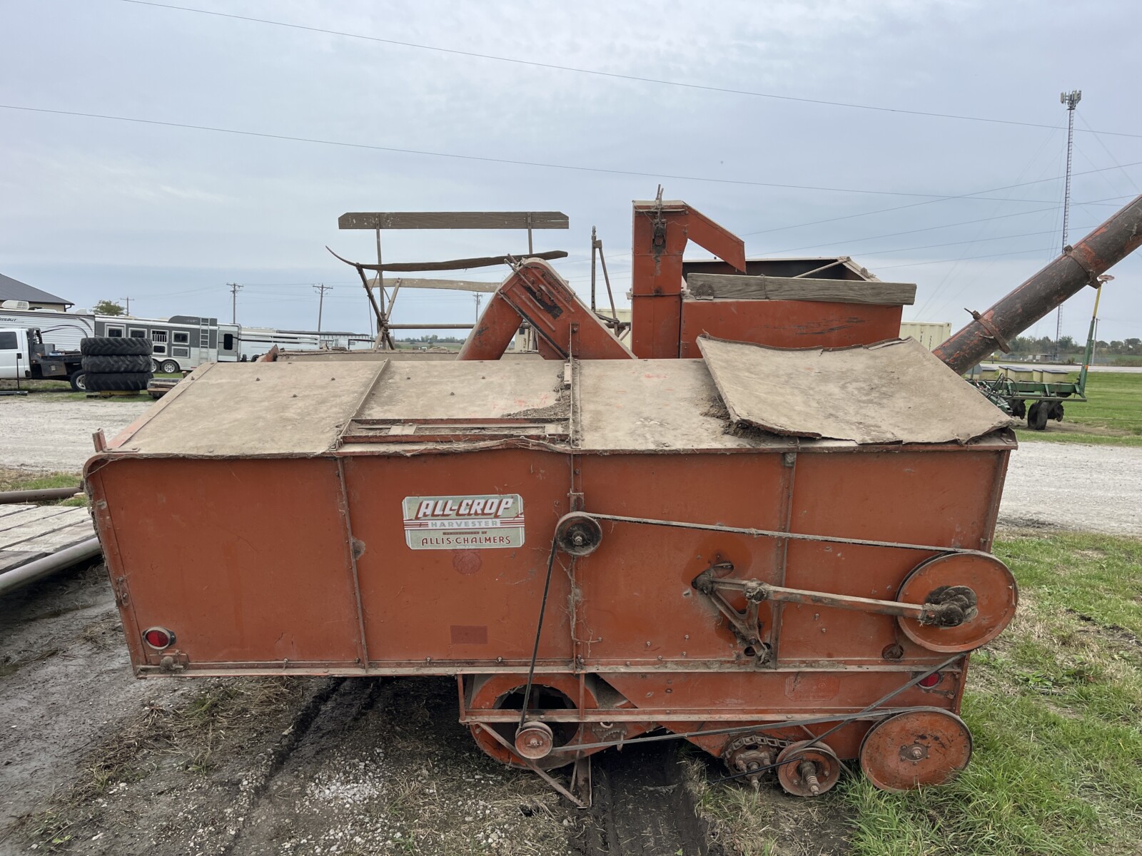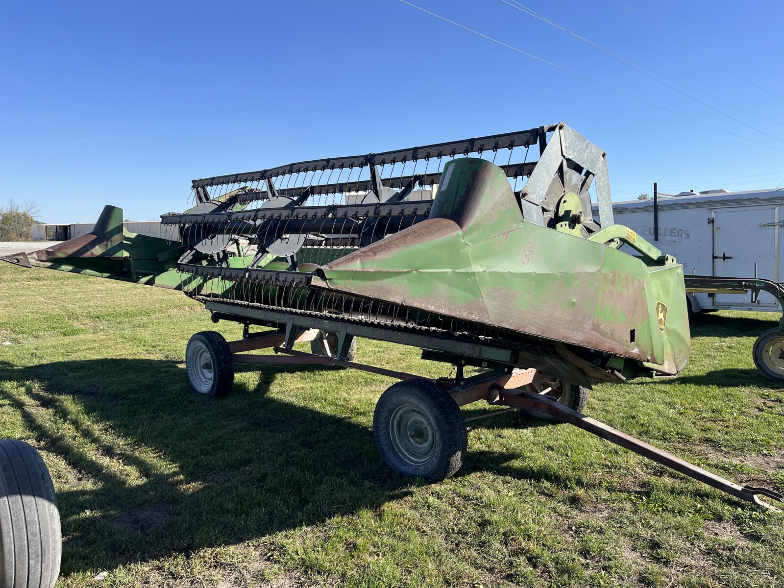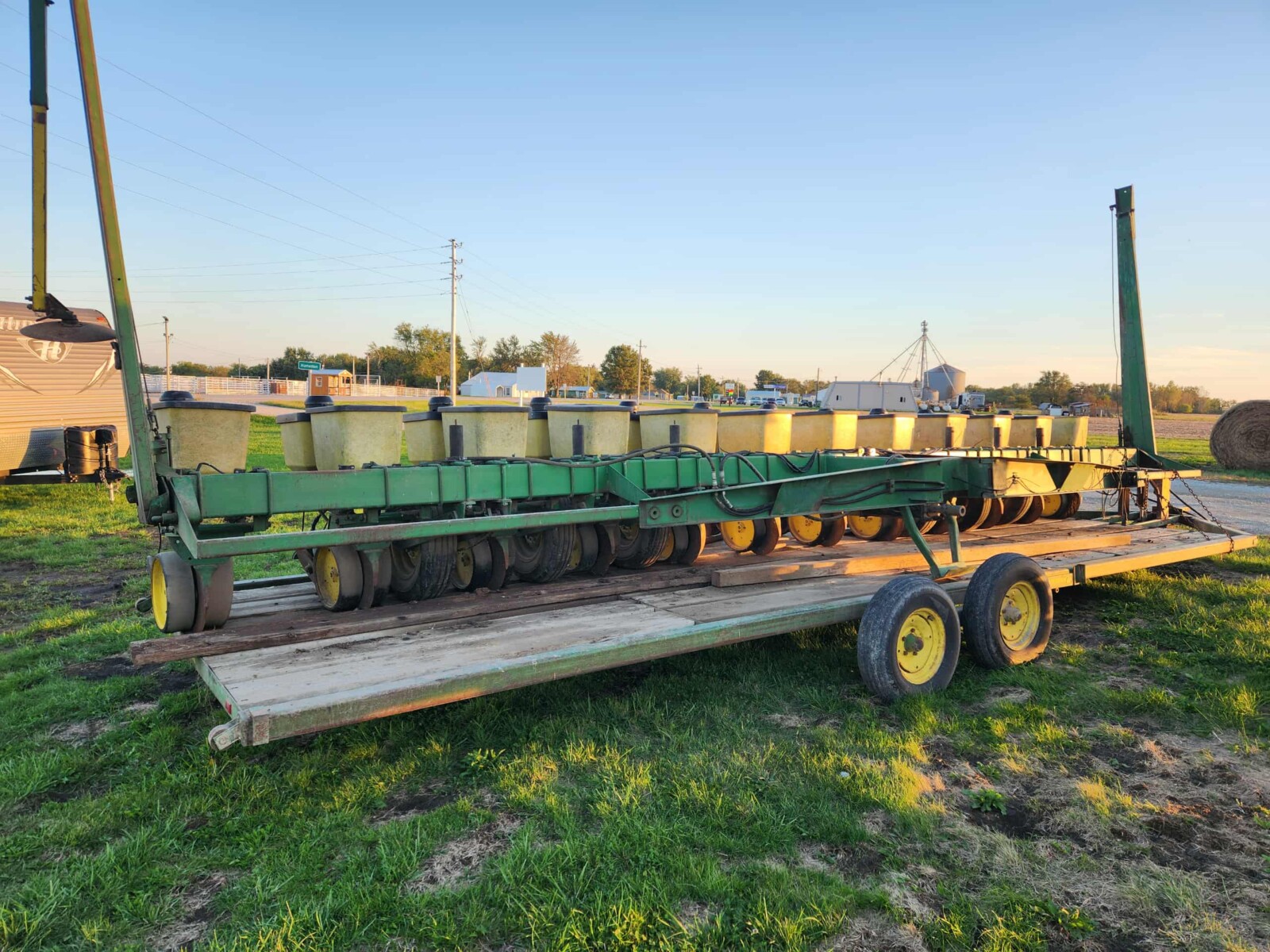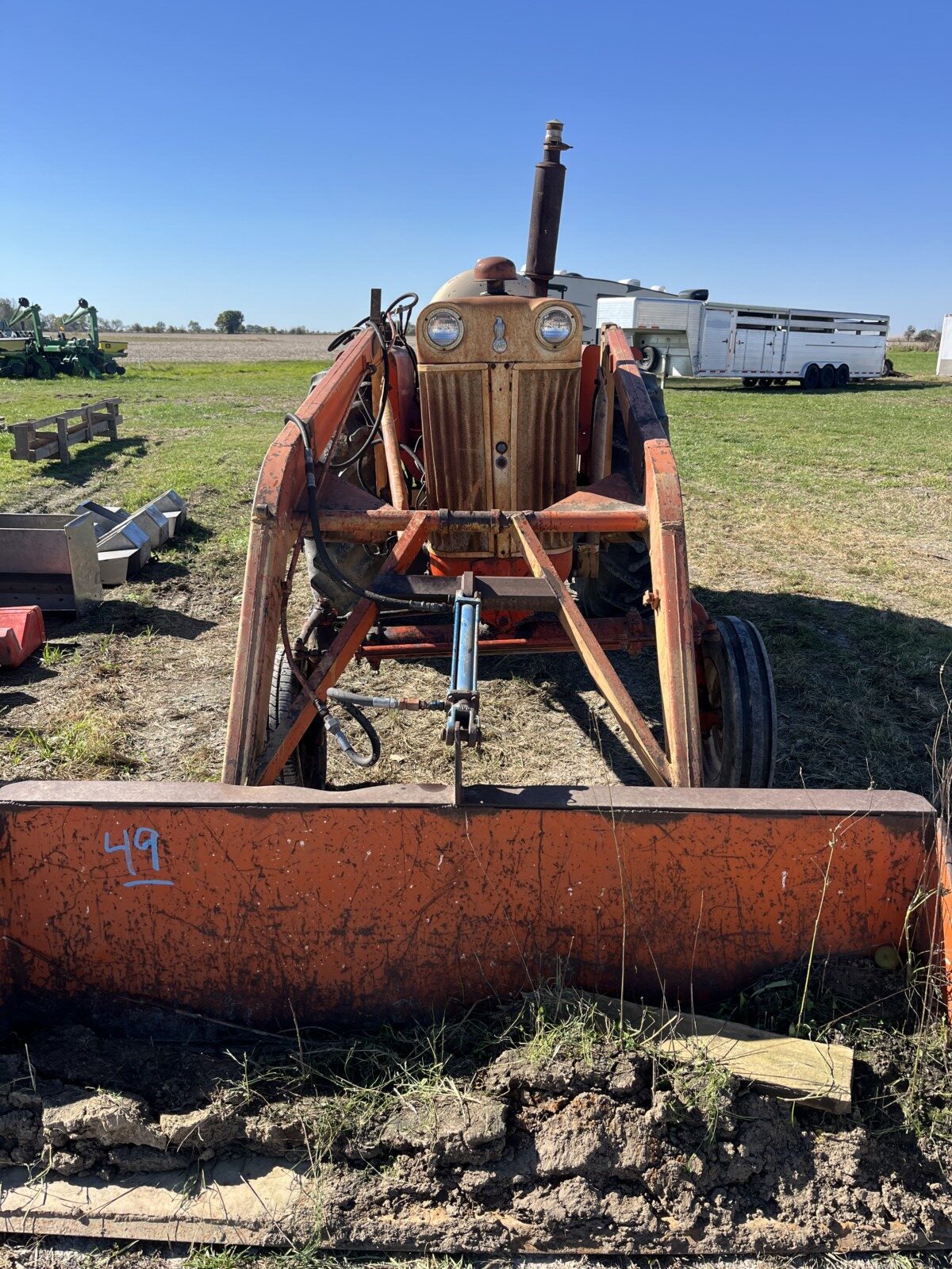John Deere 4250 tractor; Krause Disc; Brent 820 grain wagon; Parker wagon; Gravity wagon; International tractor parts; IH weights; Kuhn Knight 3125 Reel Auggie; Roto Grinder; 3pt. Ditcher; 6′ finish mower; 2 row cultivator; dirt scoop; Allis Chalmers 66 pull type combine; John Deere blade; green sm. trailer; (2) tractor weights; JD 7000 planter; JD 201 planter; (2) head trailers; corn sheller; JD 216 bean head; Roller Mill; 3 pt. tiller; seed cleaner; John Deere 660 hay rake; 3pt. John Deere tiller;