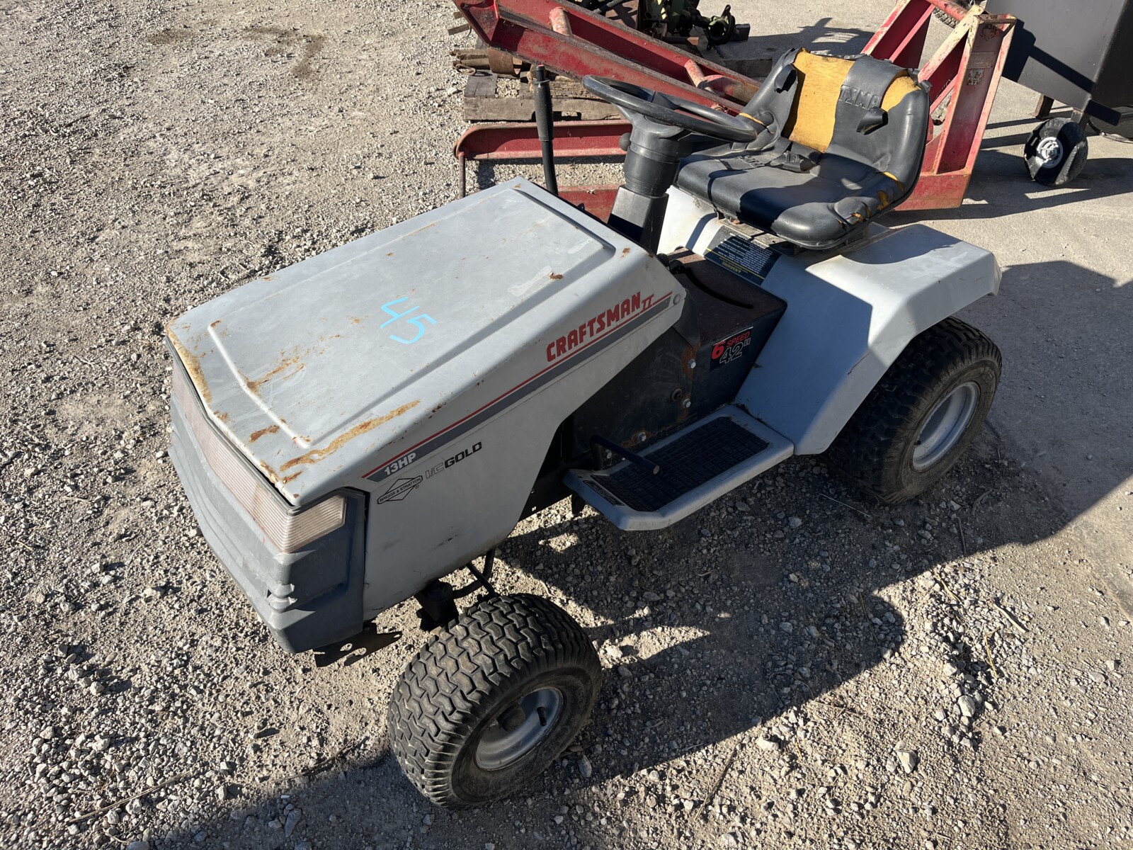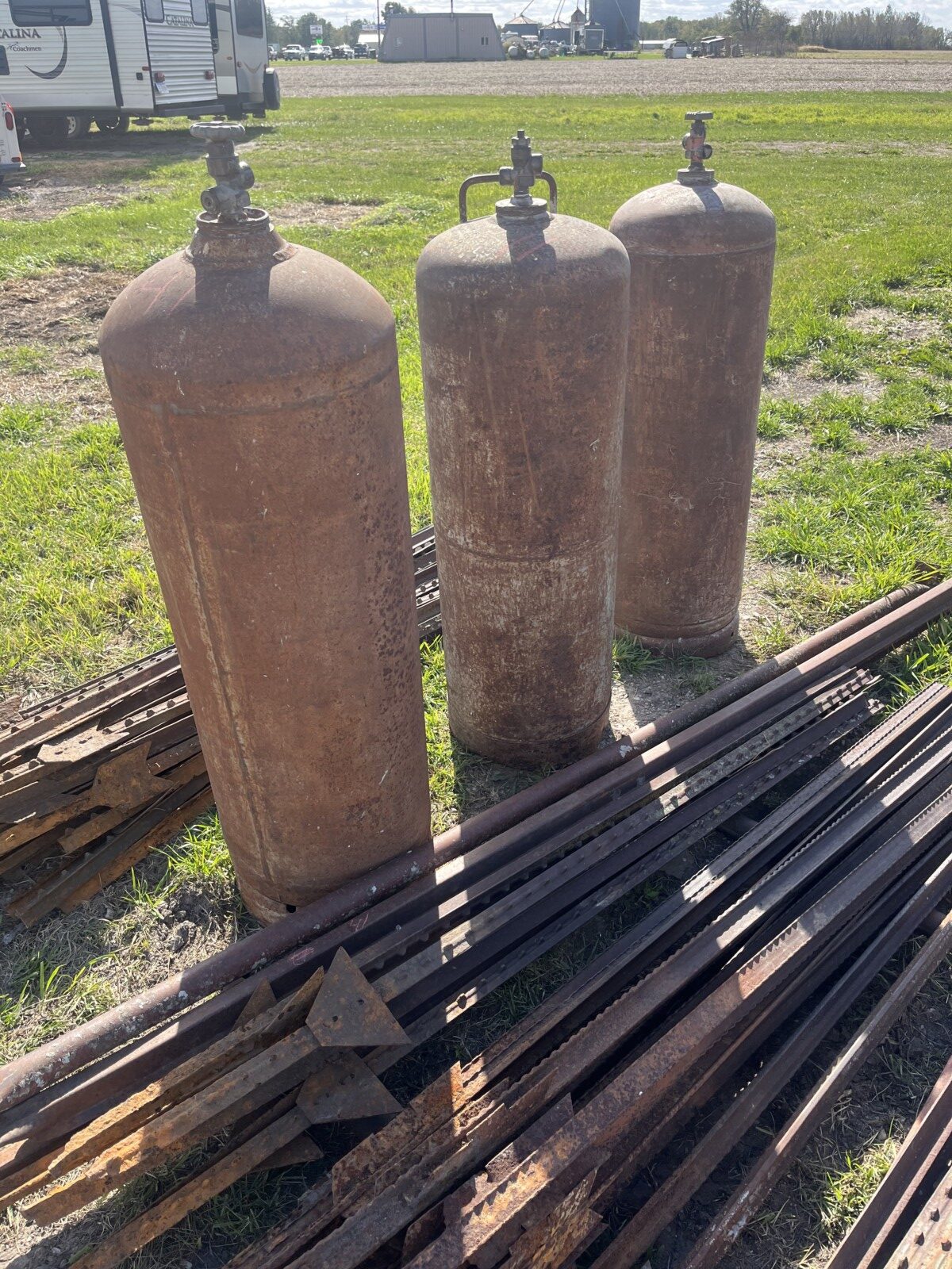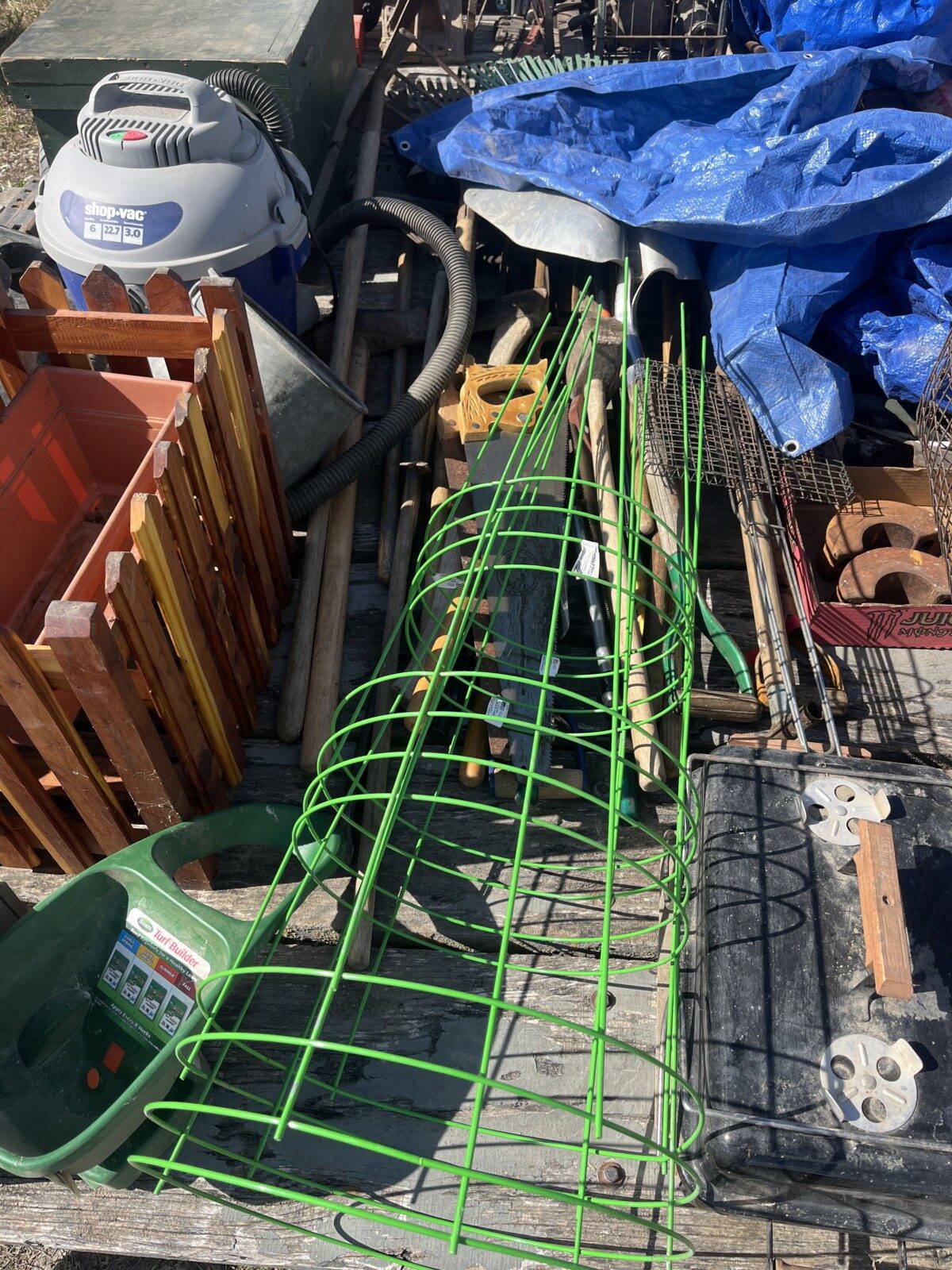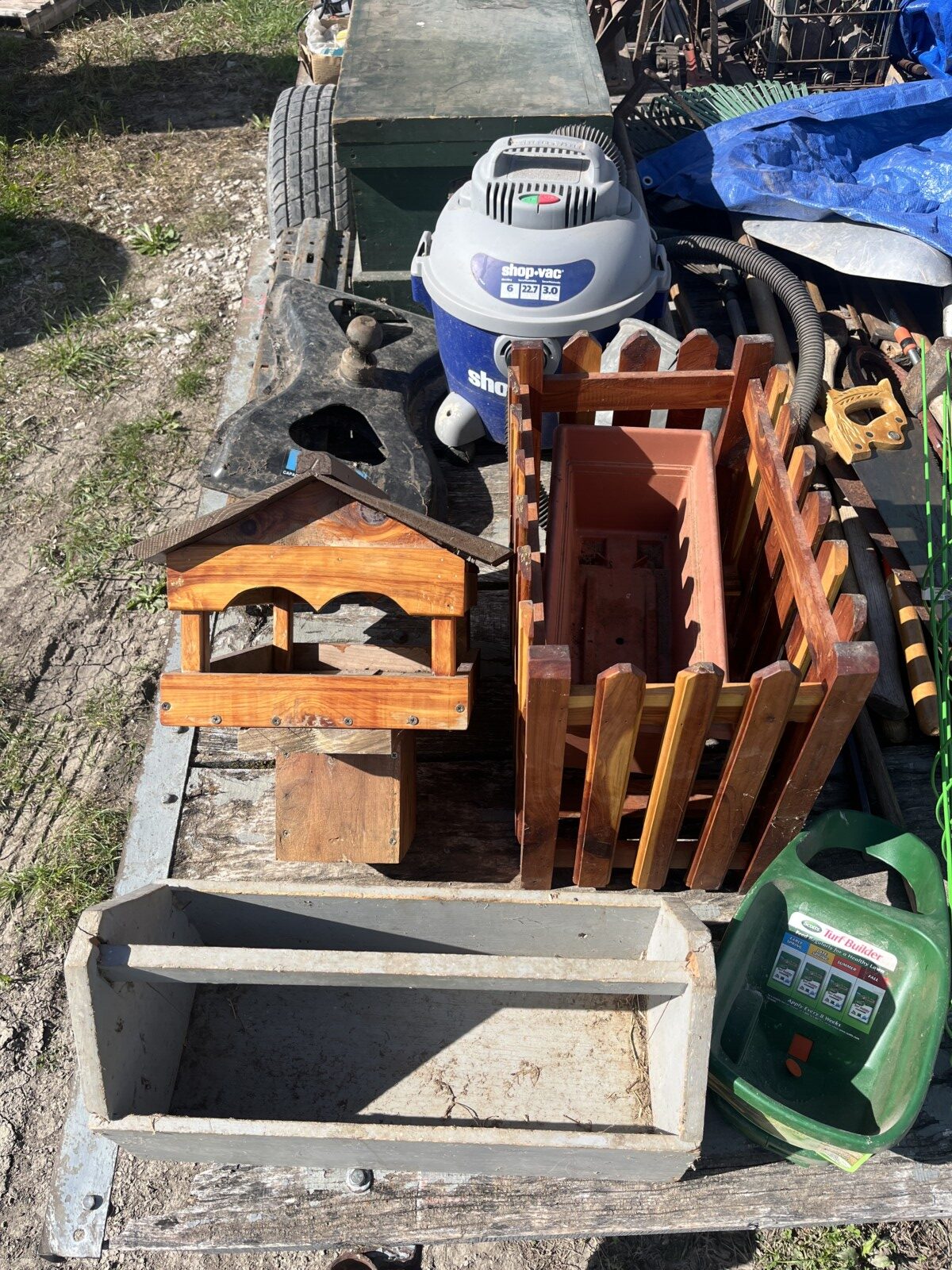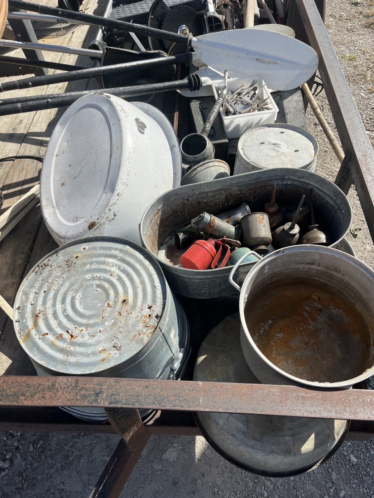 kerosene heaters; battery charger; ice augor; Scotts yard sprayer; air tanks; Tool boxes; table saw; chain saws; drills; misc. tools; air hose on reel; shovels; rakes; Predator 6500 generator up to 14.5 hrs. run time, gas only; clevis; bolts; (2) jack stands; pump; metal shelf; tin; lumber; ext. cords; (3) LP tanks; (2) 20′ Shipping Containers; ladders; saw; shop vac; weed eaters; clamps; metal shelves w/ doors; tin vegetable cages; canoe; motorcycle helmet; chain saw helmet; Lee powder measurer; Lee powder scale; Lee loader; well pumps; truck tool box; Cub Cadet shredder, chipper, vac; bumper hitch Dodge; Jacks; shovels; park style grill; cement trial; Gravely ZT XL-42, 69.9 hrs, Kawasaki FR651V; weed eaters, some for just parts; ladders; tiller; All-Pro heater; smokers; trolling motor; John Deere E110 riding lawn mower, 187 hrs;
