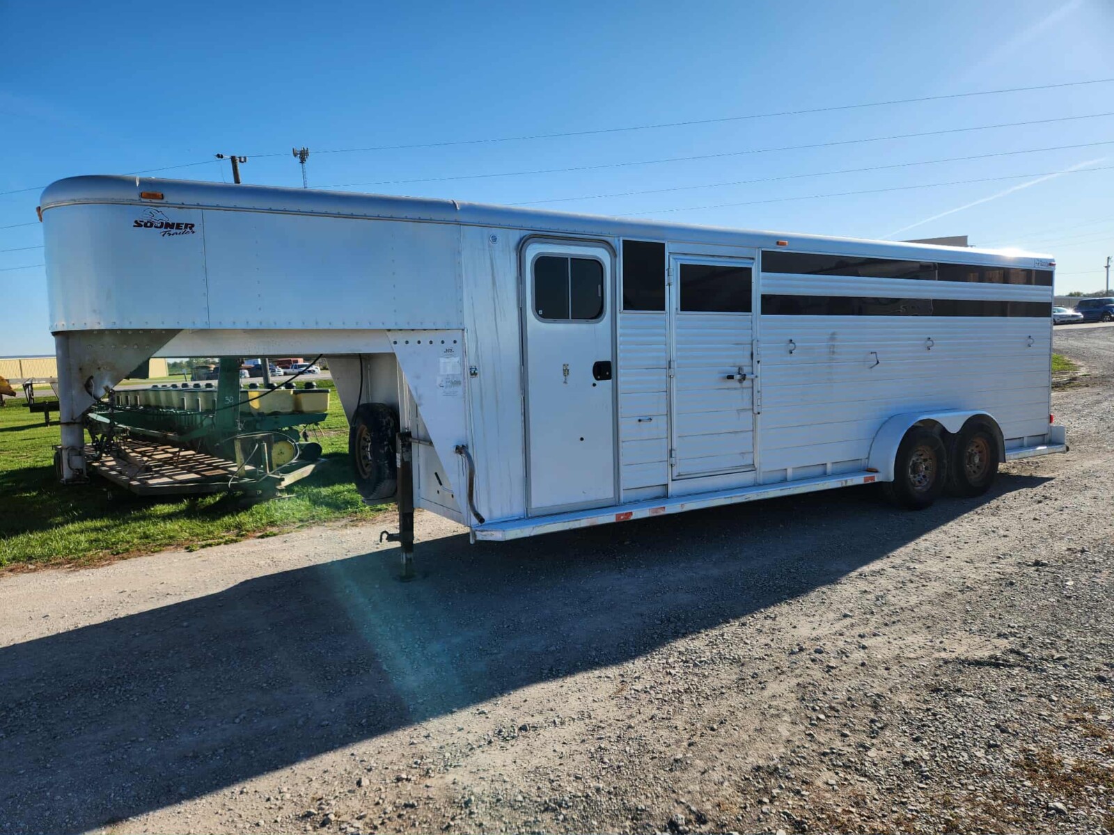 2009 F350 Super duty 4×4, 6.4 liter, diesel, no def, previously owned by Dewey Ford, 178k m/l miles, new tires and shocks, serviced, B&W gooseneck hitch, air bags, tear on lower passenger door, minimal rust, good truck; 1997 Ford F150, gas, 8 cyl., red/silver, 120k miles, w/ title, VIN:1FTDF18W6VLB71680; 2005 Ford F350 Super Duty, gas, 10 cyl., brown/tan, 136K miles, w/ title VIN:1FTWW31Y95EB98022; 2007 Chrysler Town and Country Touring Ed. van, blue, 158k miles m/L, VIN:2A4GP54L77R168207, w/ title; 2006 GMC Sierra C1500, red, VIN:3GTEC14X06G187013, 330K miles, w/ title; 1991 Jeep Cherokee limited, VIN: 1J4FJ78S2ML564365, white, w/ title; 1988 Merritt Equipment co. Hopper semi-trailer, VIN: 1MT2P4222JH005849 w/ title; 1987 Hillsboro trailer, VIN: 1TH2A2C56H1004079, w/ title; 2003 TN Trailers LLC, enclosed, VIN:5JXCT14233s101778 w/ title; 1997 rebuilt 20′ w/ 4′ beavertail Keifer trailer, new floor, lights, and tires w/ title; 2000 Sooner 24′ aluminum trailer, Dexter 7k lb. axles, tack area, newer brakes, center gate, w/ title; 2005 Big Tex 8′ single axle, utility trailer with ramp, with registration; 18.4×38 DMI duals w/ extra tire; small tilt trailer home built; 18.4×34 tire/rim; Implement tires; Arctic CAT 650 Prowler XT, H1, unknown mi., 2012, w/ winch, everything works but speedometer; 2013 John Deere Gator model 850RXI, camo color, 4×4, w/ winch, windshield, less than 100 hrs. works great; never been used Kolpin blade, w/ title;