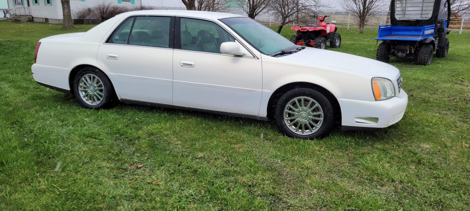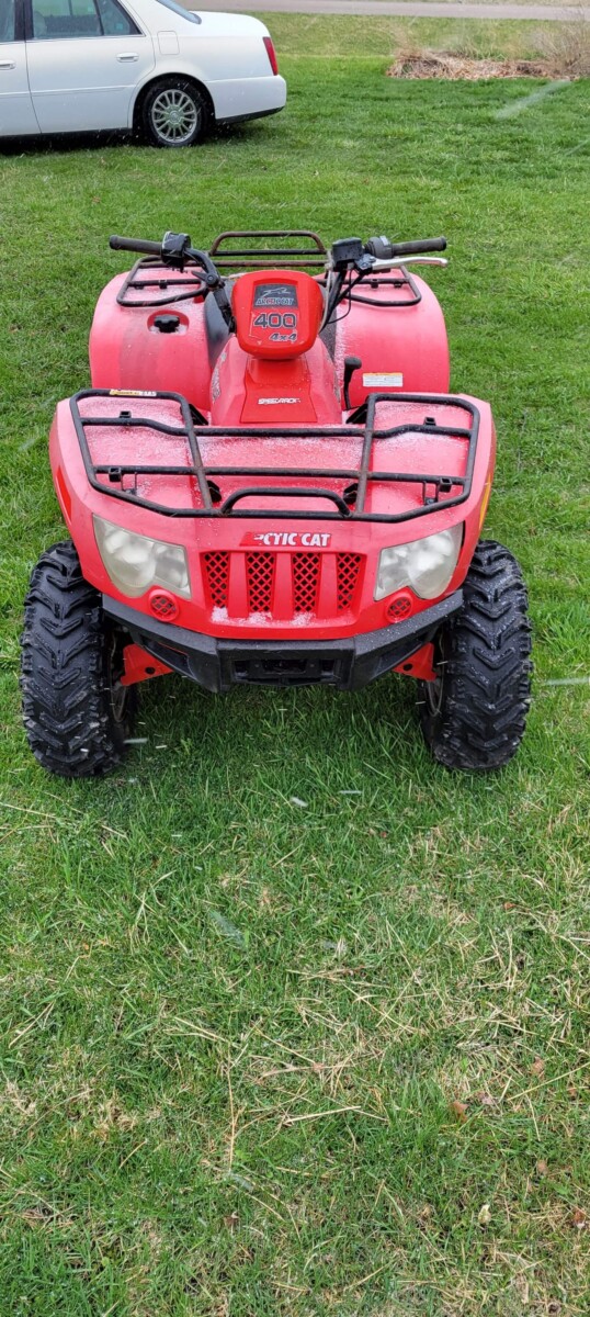 2004 Cadillac DeVille, loaded, 175k miles, 6 disc changer, Northstar V8 4.6 liter engine; 2014 Ford F250 super duty, SRW, regular cab XL, 6.2 liter, V8 gas, 6 speed, auto, 4×4, power windows and locks, lock out hubs, 58k miles, VIN 1FTBF2B67EEA03475; Mule SX 2017 Kawasaki AF400k, 800 hrs; Arctic Cat 4×4 400, speed racks, reece hitch;