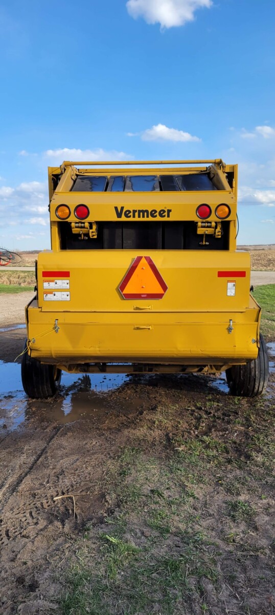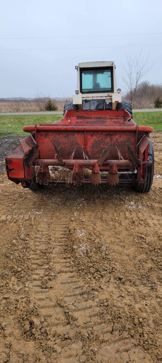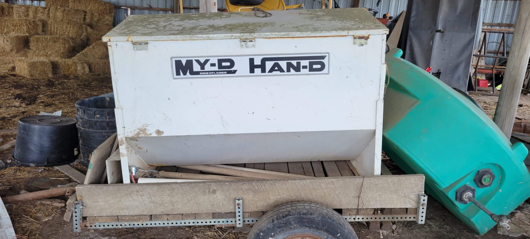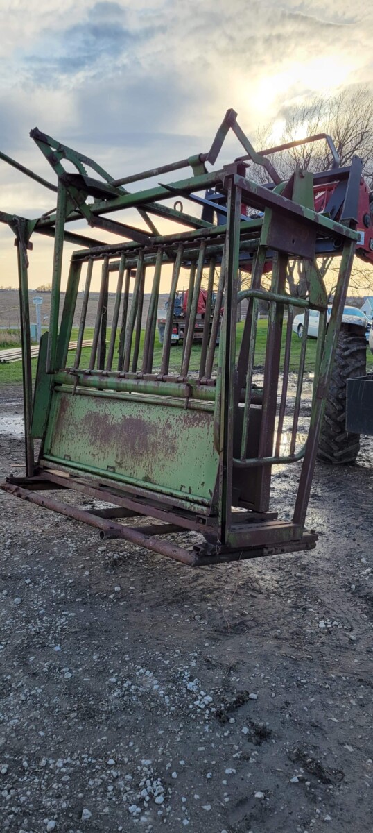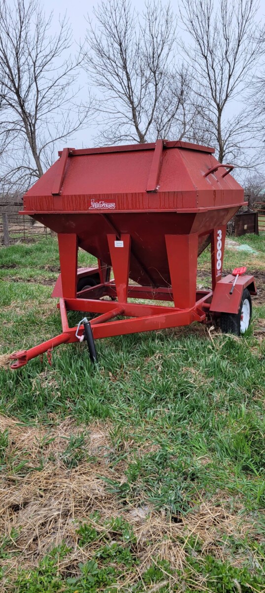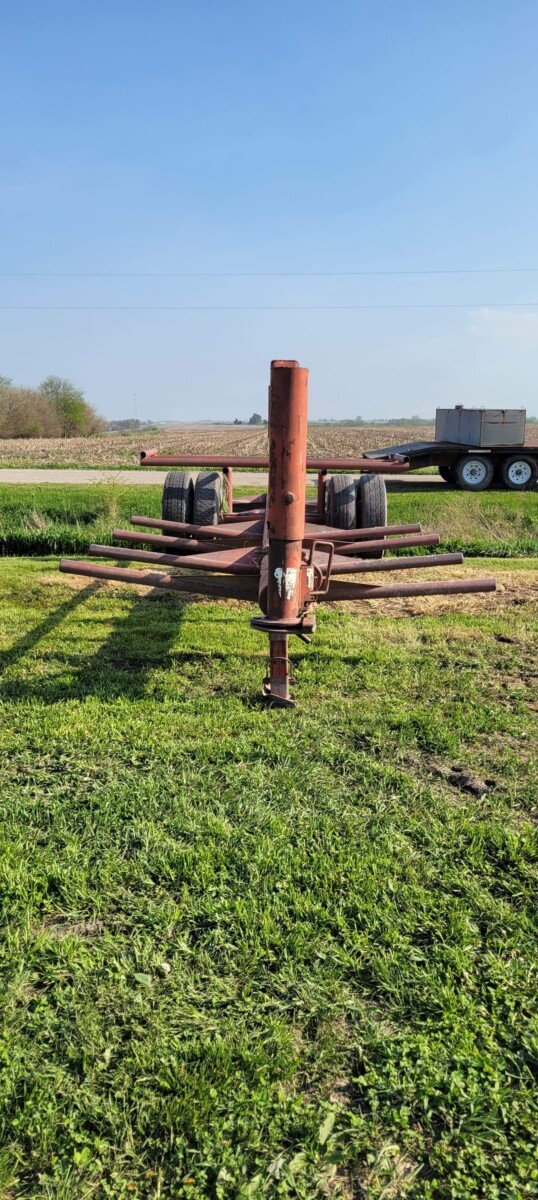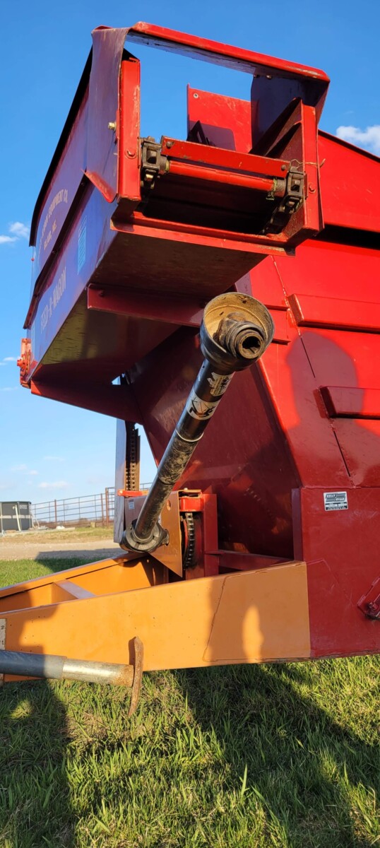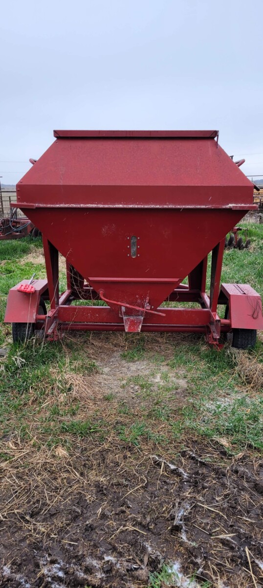 520 Ford New Holland manure spreader, good floor, good chain, 540 pto; NVHL Bison 3 way blade, stout; (2) hydraulic hay bale unrollers, 3 pt; 258 New Holland rake w/ dolly wheels; International 490 disc, 22′; 500 gal. fuel barrel w/ pump; 300 gal fuel barrel w/ pump; 16’x10′ portable shed, steel sides and roof; Feed Train 3000 bulk bin on wheels, 3200 lbs; Westfield grain auger W80 pto hand crank, 8″; hay rack (needs work) w/ good running gears; 4 section harrow cart; Bear Cat 950 grinder mixer; 3pt quick hitch; end gate seeder; MYD Handy cake feeder; International 710 5 bottom plow, 16″; (12) 24′ trusses, 26′ at base with over hang; JD 4 row planter; Powder River squeeze chute; old wooden doors; Schulte FX-1800, 15′ batwing, serial#C18511332711; Kuhn FC 353 GC disc mower conditioner pull type (needs repairs); Kuhn SR112 speed rake; Kuhn GMD 700-G2, HD 9′, 3pt disc mower; 8 bale pipe hay hauler; 605 Vermeer baler w/ Accu bale monitor; OMI chain harrow, serial #000775; WW steel stock trailer; small amount of smalls