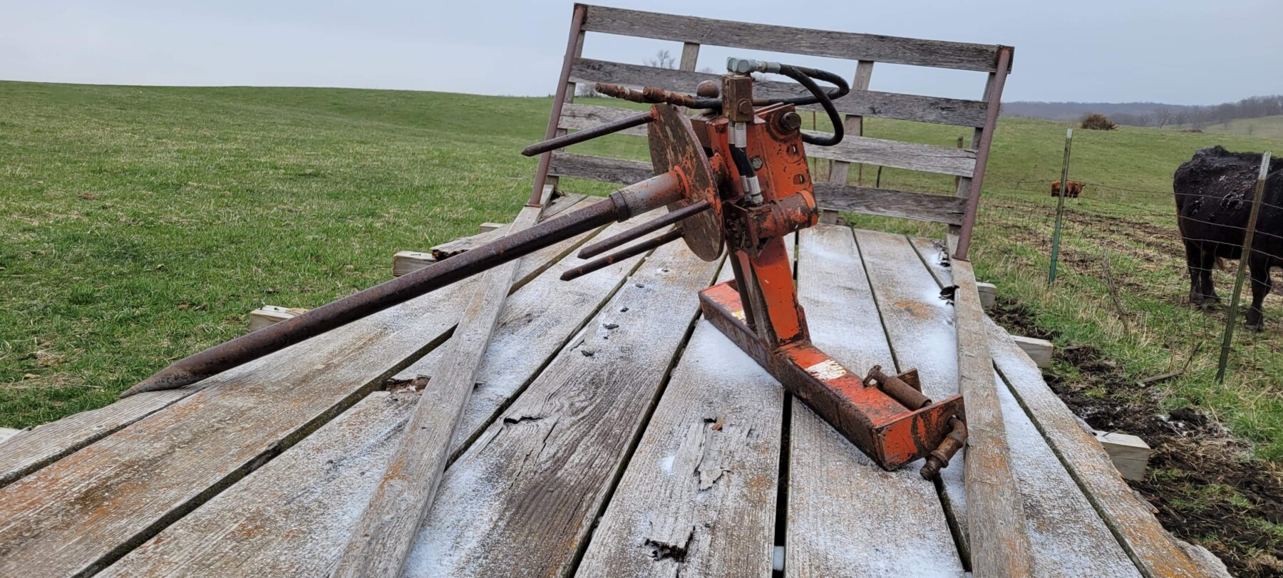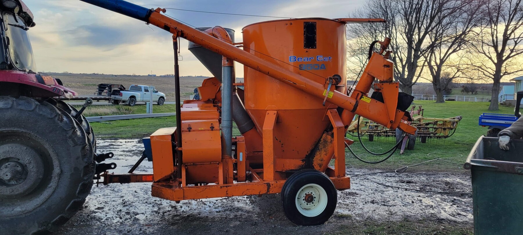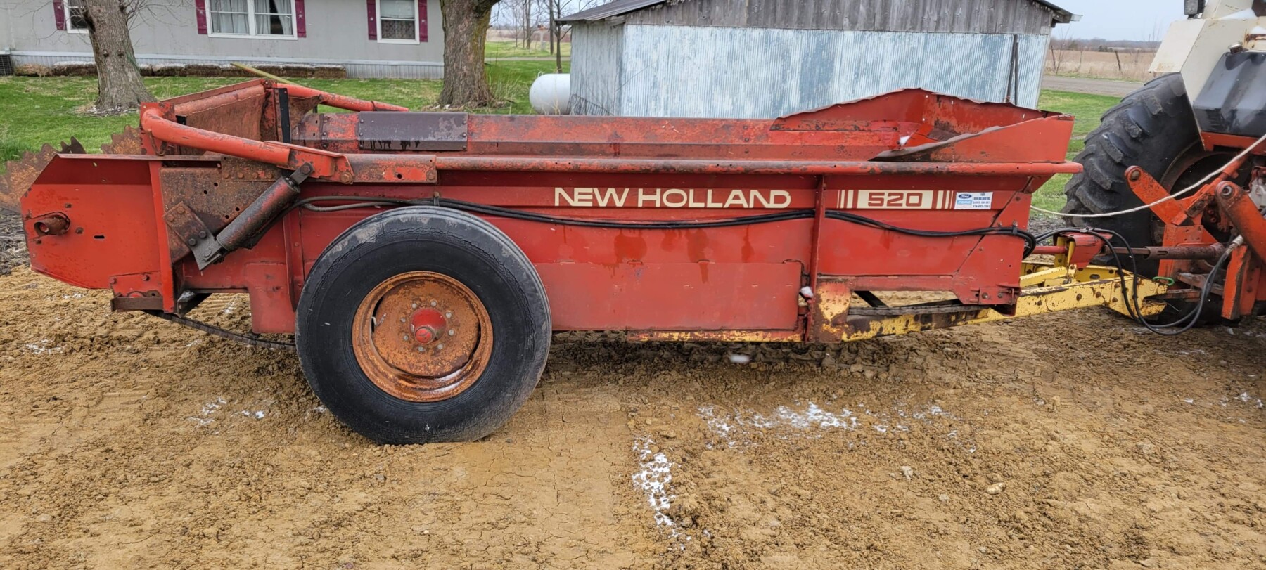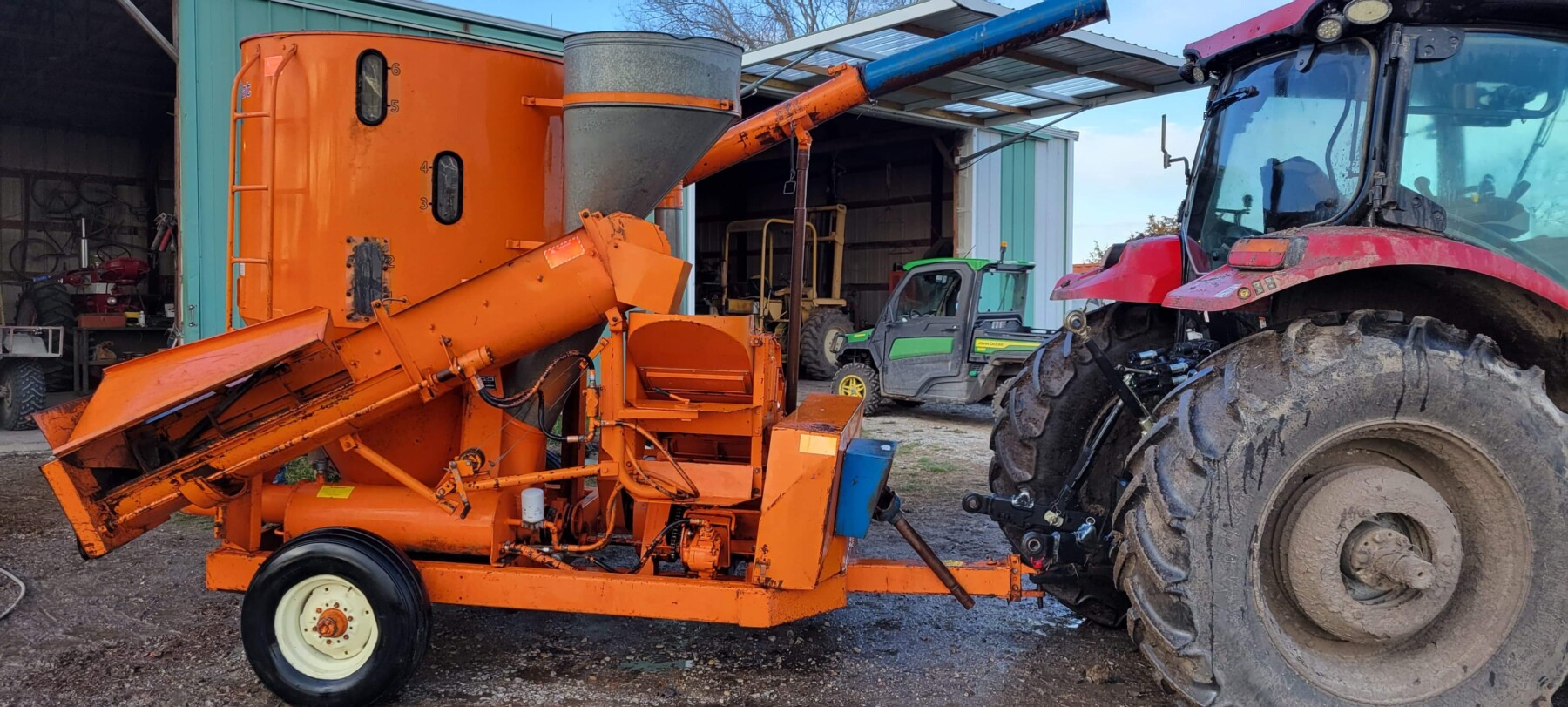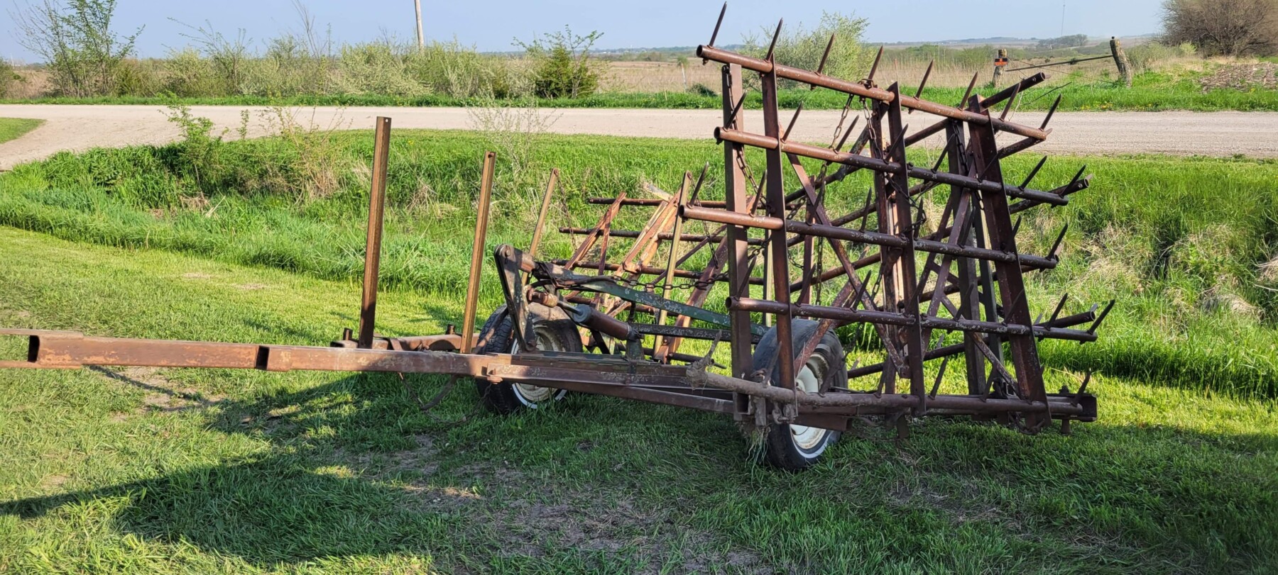 520 Ford New Holland manure spreader, good floor, good chain, 540 pto; NVHL Bison 3 way blade, stout; (2) hydraulic hay bale unrollers, 3 pt; 258 New Holland rake w/ dolly wheels; International 490 disc, 22′; 500 gal. fuel barrel w/ pump; 300 gal fuel barrel w/ pump; 16’x10′ portable shed, steel sides and roof; Feed Train 3000 bulk bin on wheels, 3200 lbs; Westfield grain auger W80 pto hand crank, 8″; hay rack (needs work) w/ good running gears; 4 section harrow cart; Bear Cat 950 grinder mixer; 3pt quick hitch; end gate seeder; MYD Handy cake feeder; International 710 5 bottom plow, 16″; (12) 24′ trusses, 26′ at base with over hang; JD 4 row planter; Powder River squeeze chute; old wooden doors; Schulte FX-1800, 15′ batwing, serial#C18511332711; Kuhn FC 353 GC disc mower conditioner pull type (needs repairs); Kuhn SR112 speed rake; Kuhn GMD 700-G2, HD 9′, 3pt disc mower; 8 bale pipe hay hauler; 605 Vermeer baler w/ Accu bale monitor; OMI chain harrow, serial #000775; WW steel stock trailer; small amount of smalls