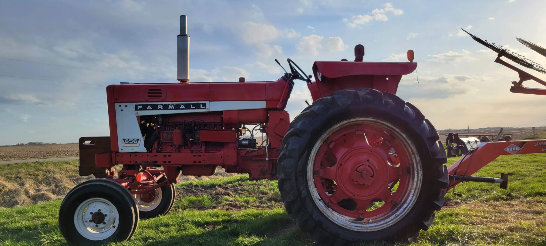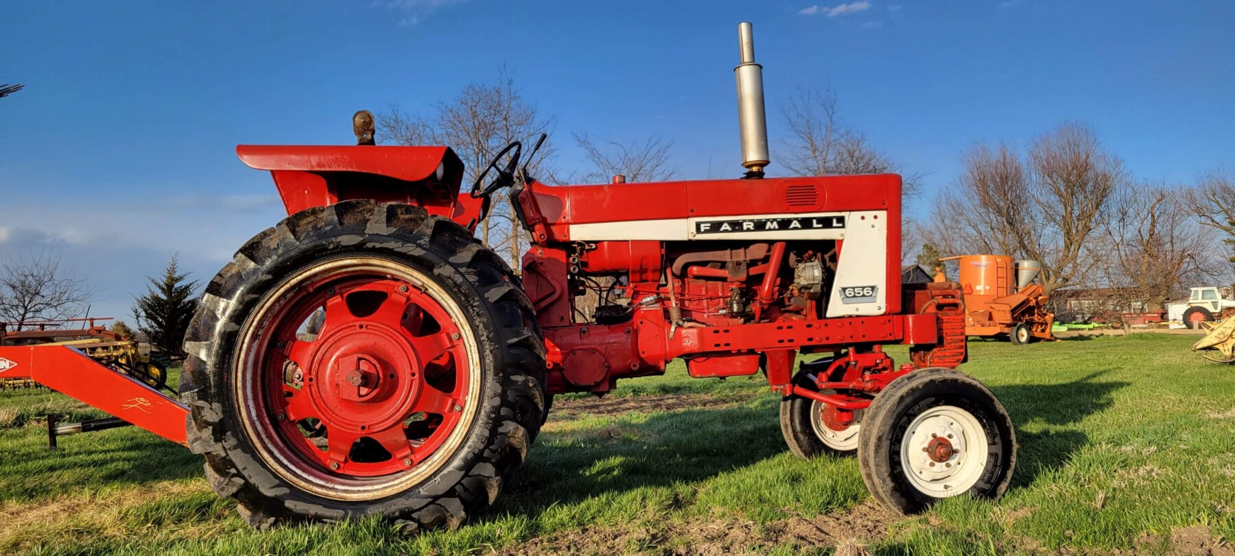 JD 6150M, grapple bucket, spears, 3 pt., H360 loader, pre-emmissions, 3823 hrs; Case IH MXM155 w/ loader, 9400 hrs, always well maintained by Case IH; Farmall 656, 4 new tires, 3 aux hydraulic remotes, gas; Farmall 560 great paint/ tires, fast hitch, serial #35025; Farmall M FBK serial #81909, clam shell fenders; Belarus tractor;
