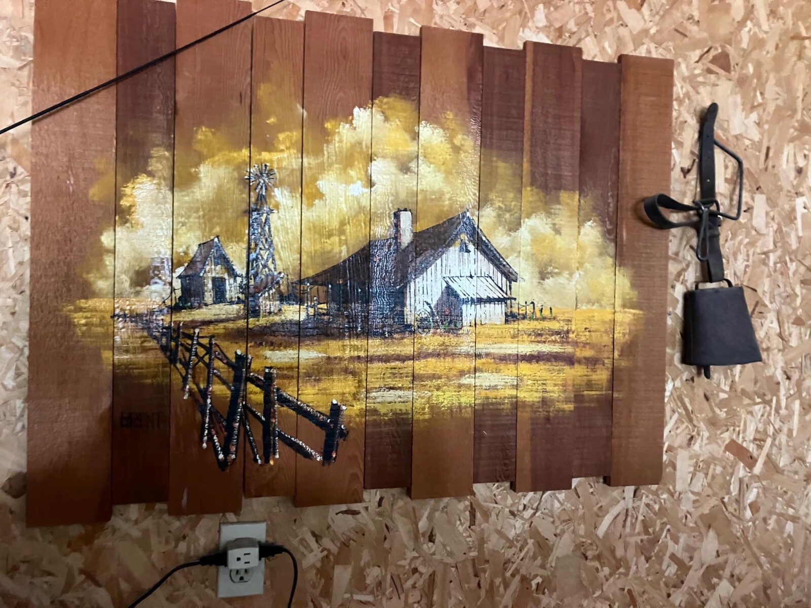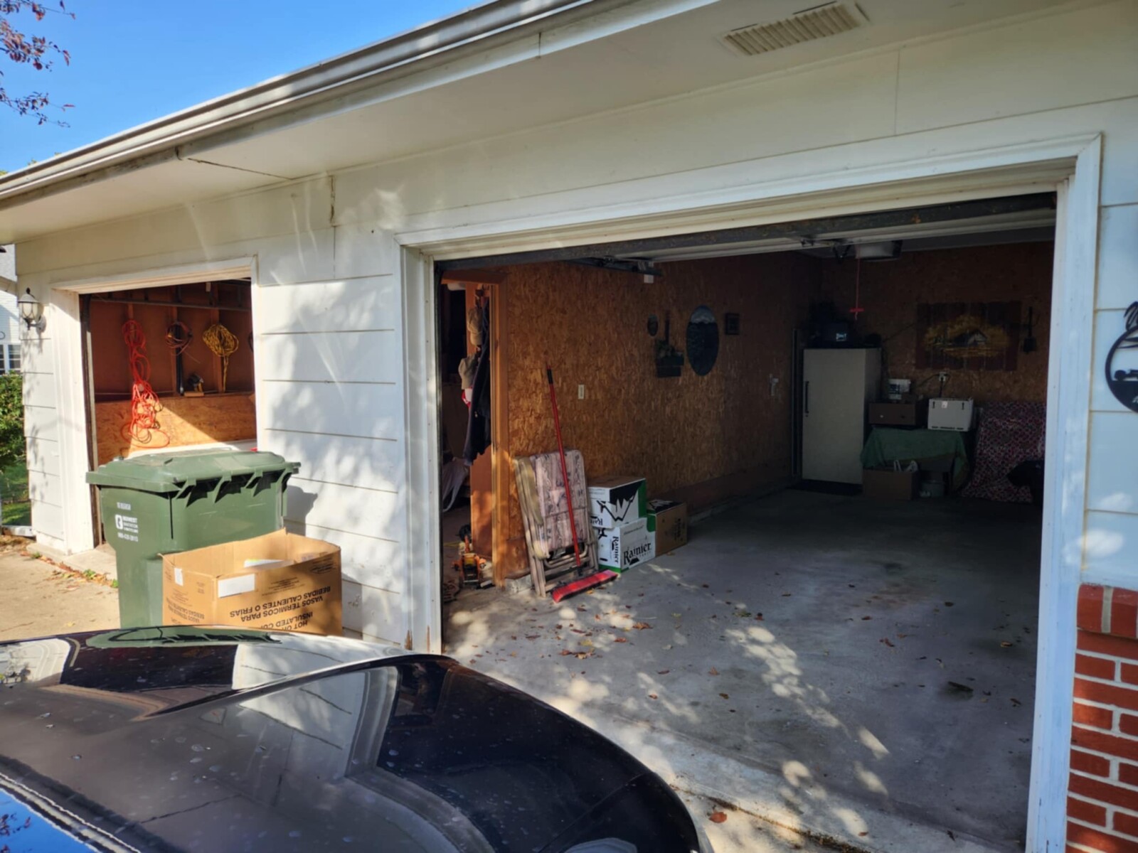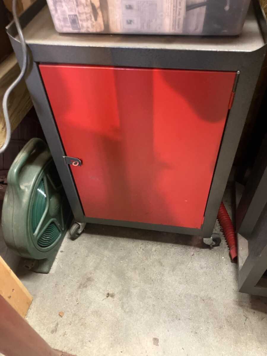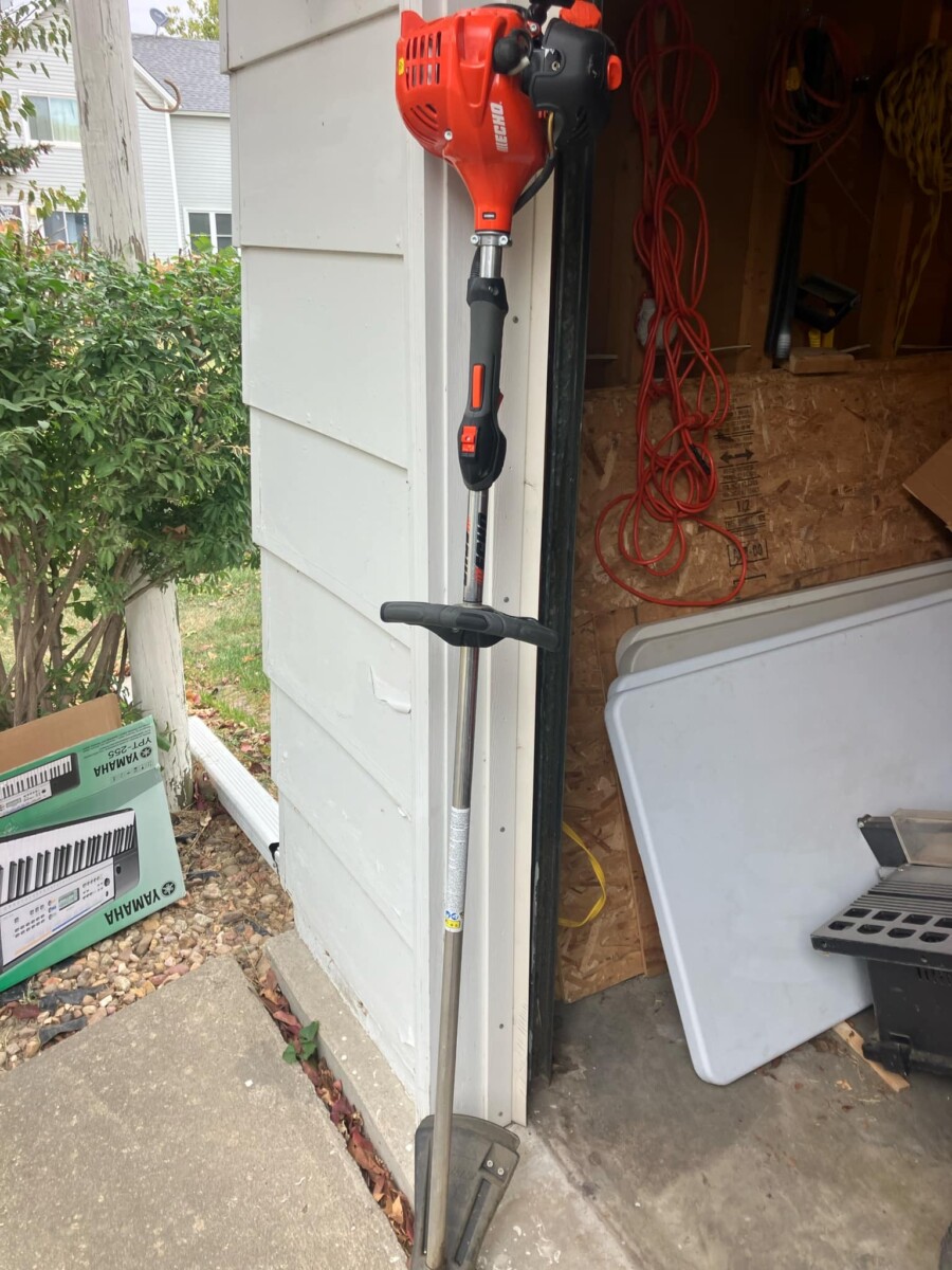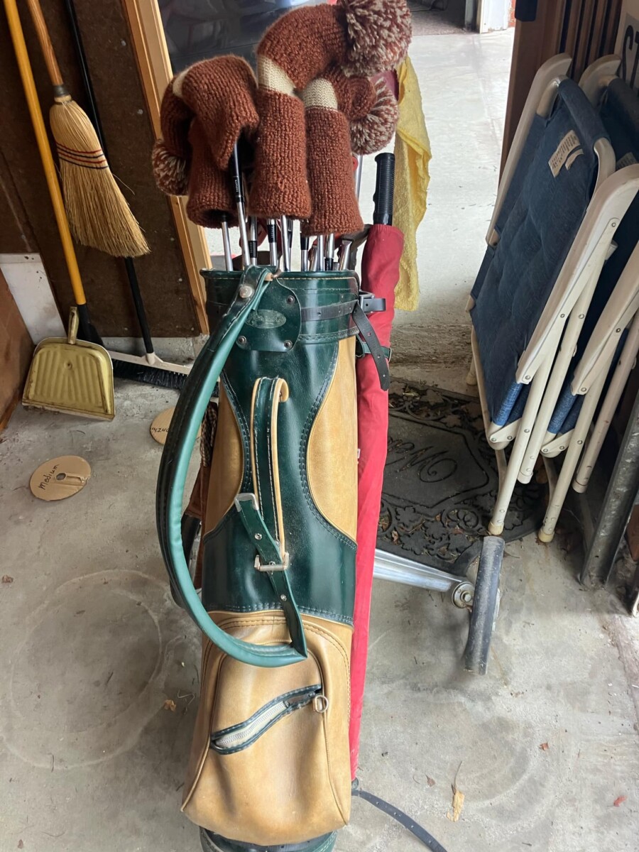 Many lawn Chairs; Davidson step ladder; wooden 8′ ladder; Aluminum 16′ extension ladder; misc. garden tools; shoulder strap grass seeder; 24″ mountain bike; Army cots; Radio Flyer Tricycle; Next Whomp 16″ bicycle; Shop Vac; power paint sprayer; golf clubs (right hand);