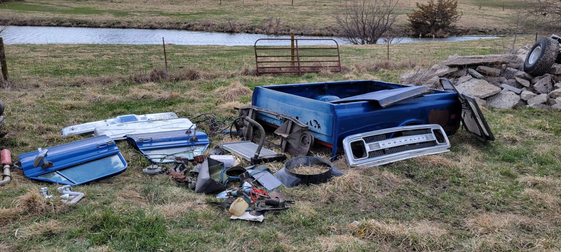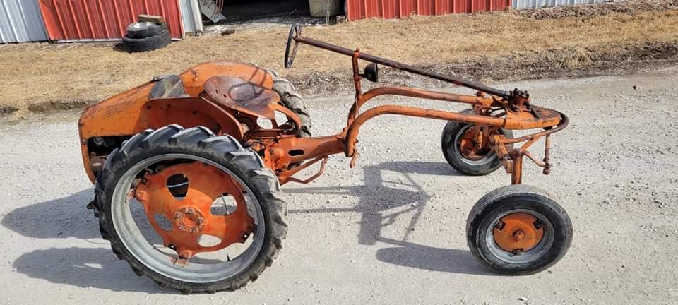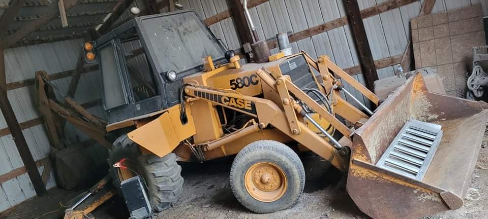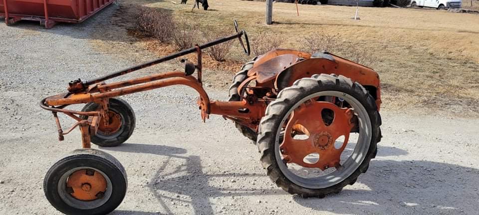 Hydra Mack skid steer MMII10 serial 2-2907; Case 580C backhoe, approximate year 1978, everything works, no leaks, strong hydraulics, engine runs good; Oliver 1600 tractor w/ loader non running; antique Allis Chalmers G tractor; White C85 tractor w/ cab, good hydraulics, non turbo w/ Westendorf loader; JD 60 tractor; 1968 Chevy motor and chasis, mechanically good, great tires; 1949 Ford, 1.5 ton, model F5 TK, serial #98RT216534, restored; 1929 Ford Model A Speedster kit; 1976 Chevy Corvette Stingray, 350cc engine, 92k miles m/l, automatic, T roof, excellent paint job; 2014 Forest River, Palomino Back Peck Edition, slide in pickup camper, model # HS-8801, fridge, stove, shower, toilet, queen bed, fits 8′ truck bed, everything works;