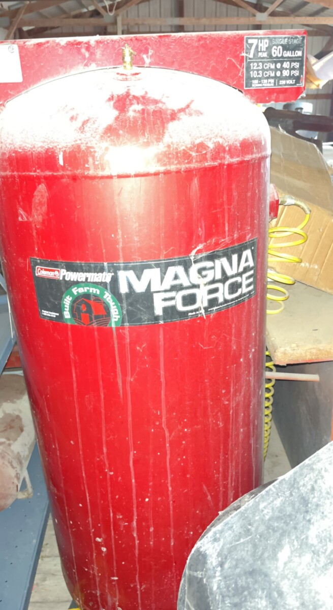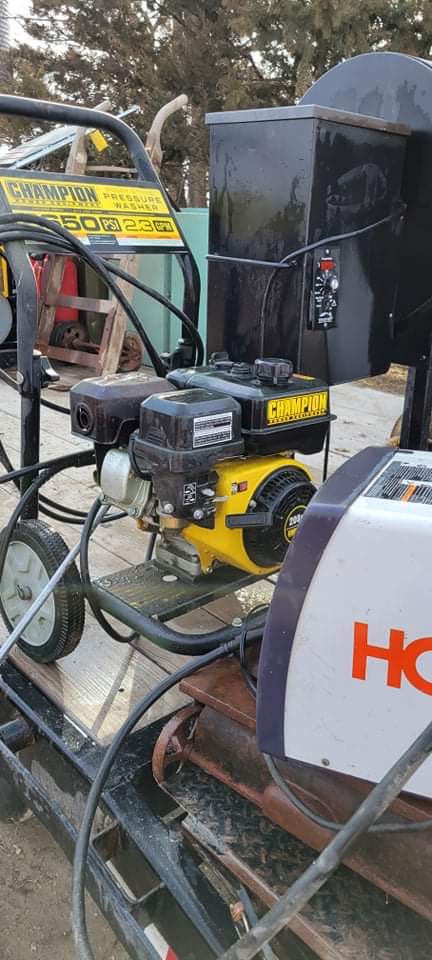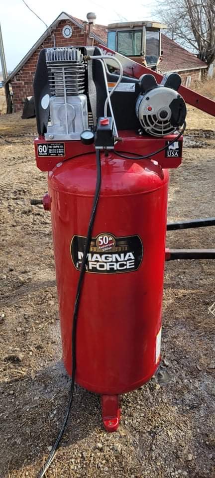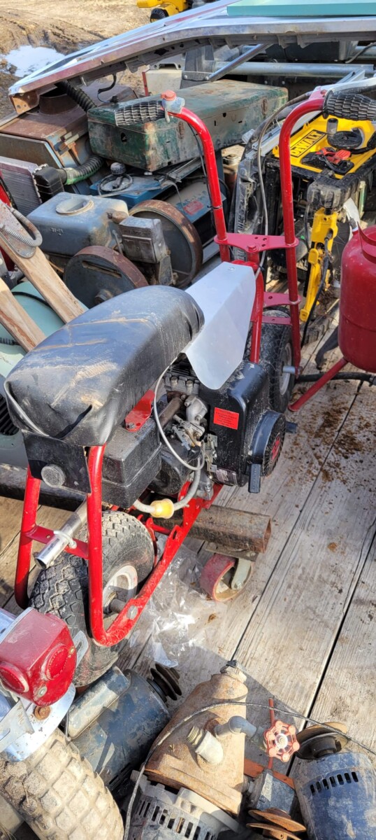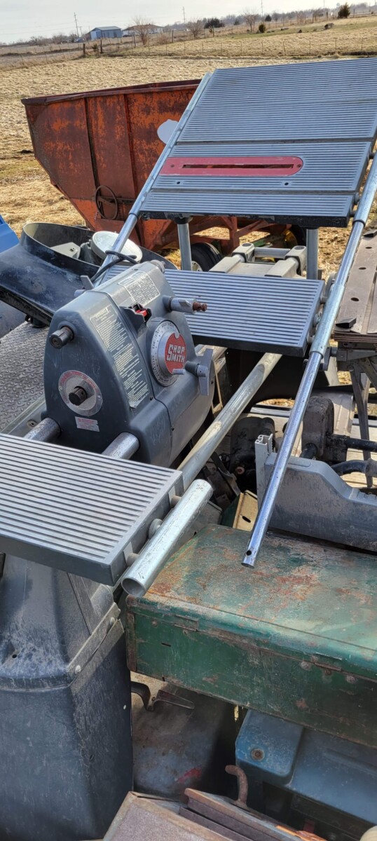 Jordahl, LTD Limited wood stove; Nordil wood burner stove; Fairbanks Platform scales; military grade medical chest w/ drawers; metal shelving; air tank w/out motor; (2) old doors; dog kennel; portable car canopy; shop desk; metal filing cabinet; wooden head board; ceiling fan; light fixtures; old kitchen sink; (4) 4 wheeler tires; (2) compound bows; 2 horse collars; several life vests; B&D hedge trimmers; Ritchie waterer; Torin Big Red 3 ton cherry picker; electric motors; aluminum 130 gal. portable fuel tank w/ 1505 electric pump; aluminum pick-up tool box; Coleman Max A-5000, 10 hp portable generator w/ Tecumseh motor; Champion power washer, gas powered, 2650 psi, 2.3 gal per min, 208 CC engine; Hobart Handler 175, 220 volt welder; (2) 6 man nylon tents in bags; Coleman camp stoves; Traeger pellet grill; Wilson universal wood ski’s; Antique oil cans; single tree & double tree yokes; cream can; Honda Trail 70 motor bike; mini bike, 3.5 Tecumseh motor; Yamaha mini bike, 50cc; misc. bikes, Schwinn, Mongoose; Phantom 3, standard drone; Jet 12″ wood planer; Shop Smith free standing wood lathe, 120 v, 13amp, model # MARK-V 555-540, serial 050991; DeWalt portable table saw, 15 amp, DWE 7490; DeWalt miter box saw DW703; Sears sandblaster; Skat blast, dry sandblaster; Central machinery belt, disc sander belt; Black and Decker work stand; Magna Force 60 gal., 130 psi, 240 volt air compressor w/ 3.7 hp motor; squirrel cage fans; portable air tank; Diamond Tread platform scales; Hog panels made into bucket calf pens; Farmstar portable calf creep; 4 ton feed grain bin; Scat Blast sand blasting box; lockable army boxes; Magna Force 60 gal. vertical air compressor; 300 gal. steel gravity fuel barrel w/ stand; bundles of lumber, cherry and soft maple; 3 pt quick hitch;