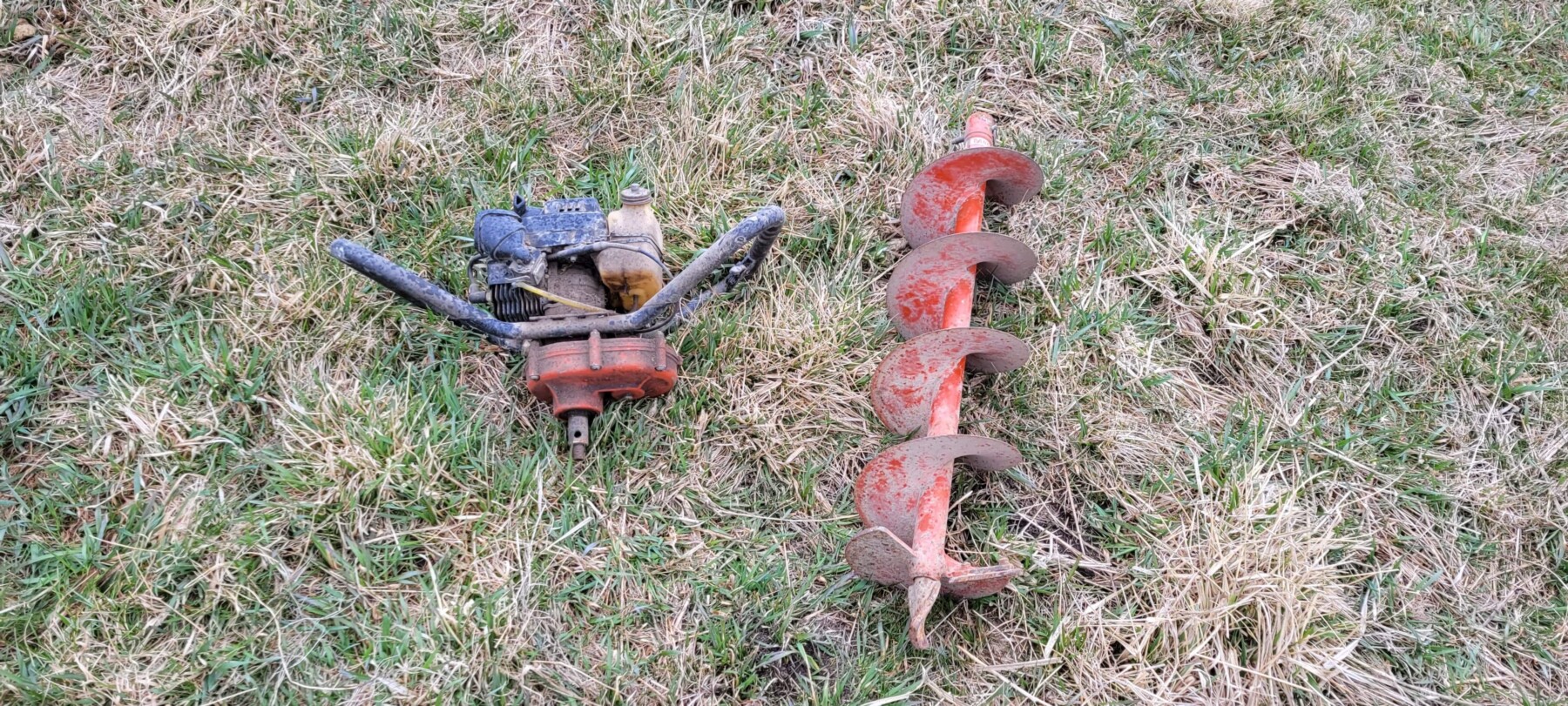 General gas powered post hole digger; vintage Case Hydro stat lawn mower; Husqvarna , 42″ cut, yth-2042 lawn mower; 3 pt. quick attach; 12′ Bush Hog, 3 pt. brush mower;