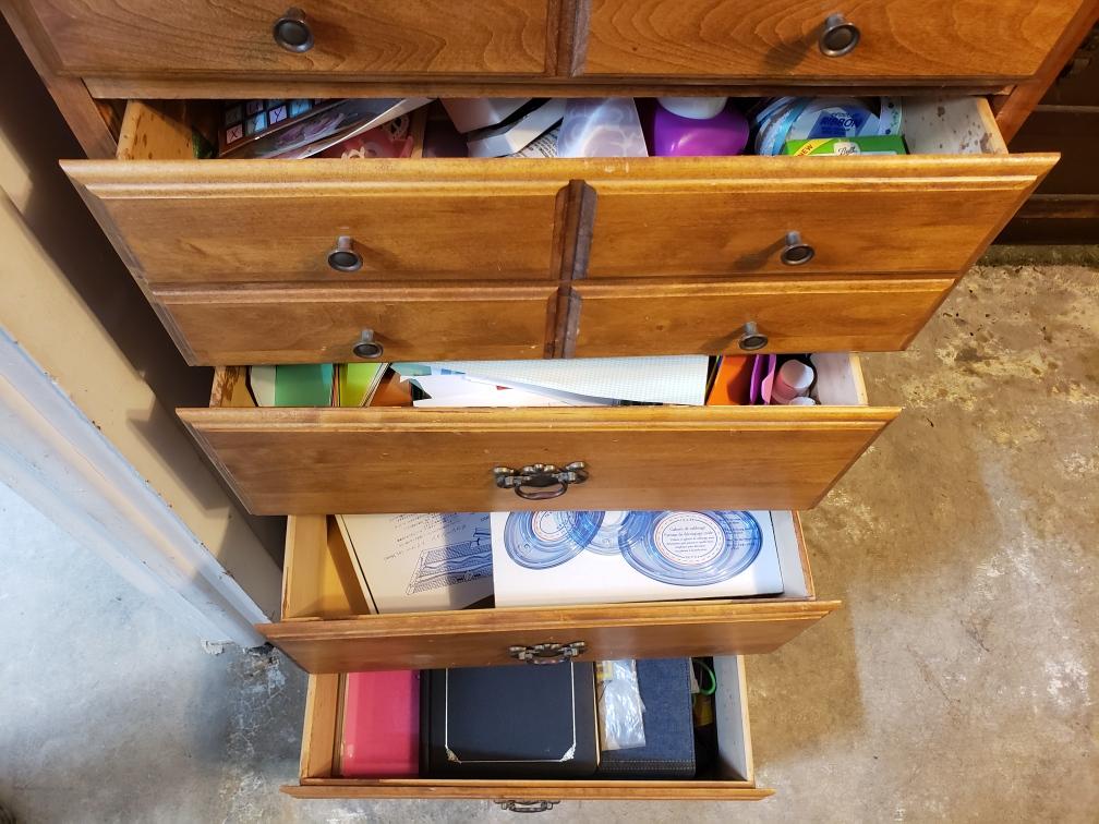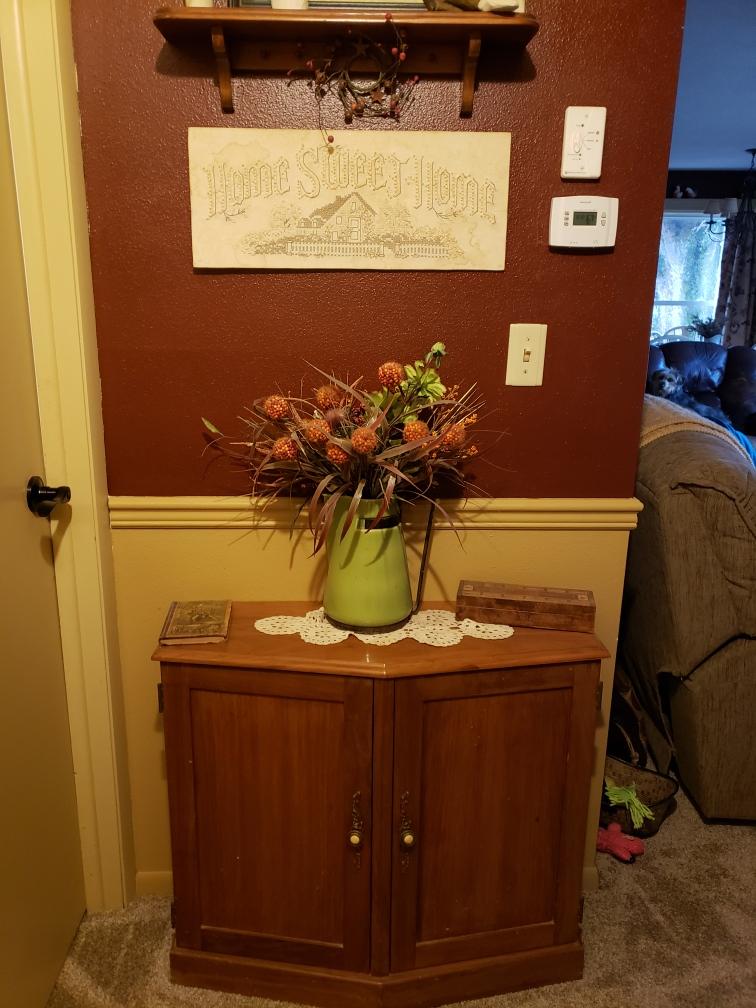 Nice dining table and 6 chairs; cabinets; kitchen; canning jars; dressers