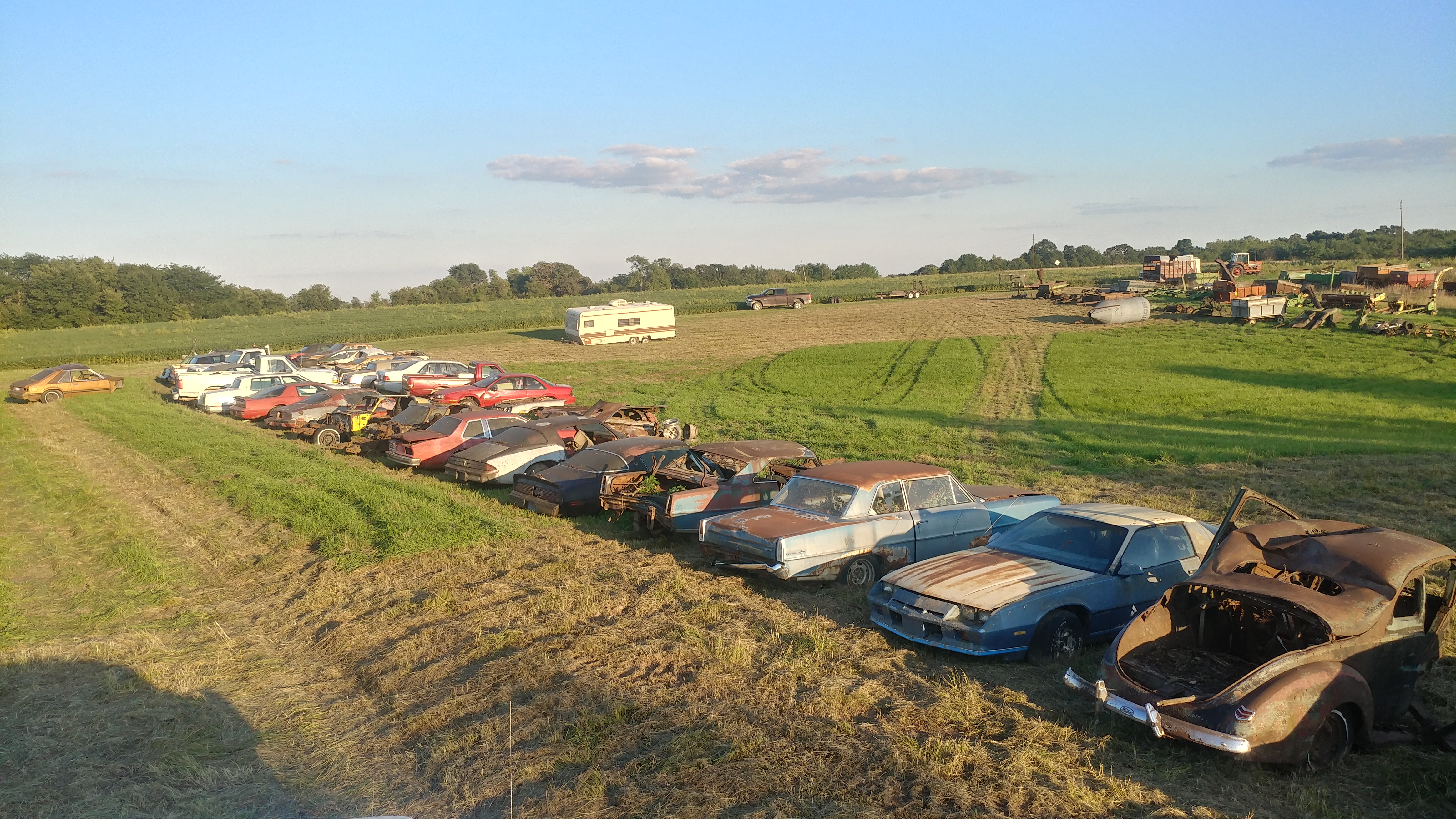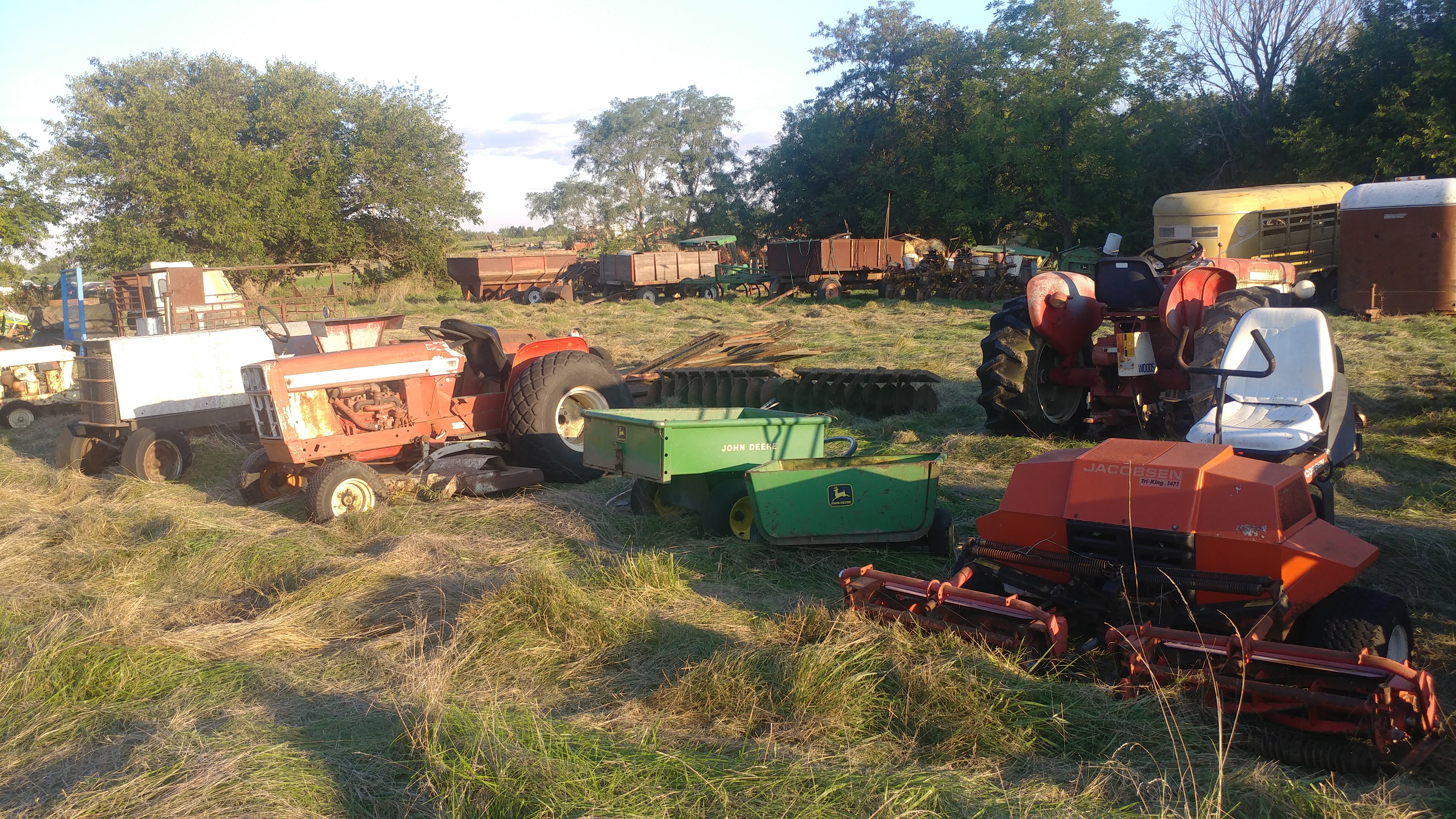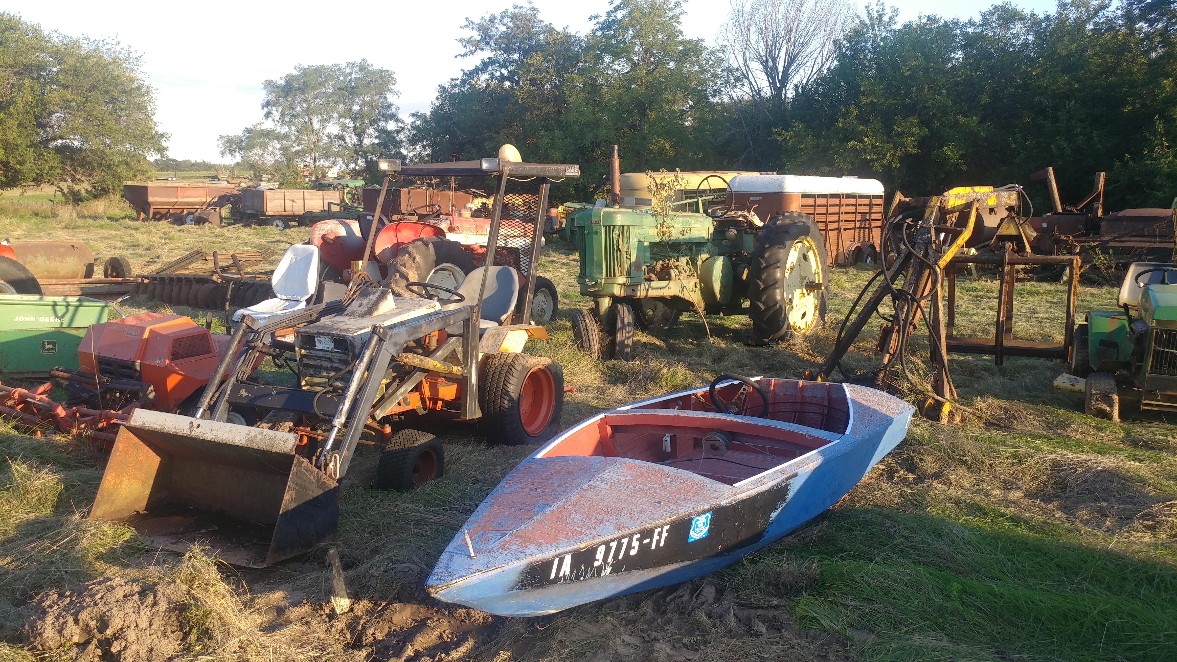 Chevy SS-56 Bel Air; Chevy 10 pickup; Camaros; Chevy DD; IH Loadstar 1700 Rollback 21’ deck w/hoist & wench; IH Loadstar 1700 truck & chassis; Top Kick 18’ flat bed LoPro; Chevy Apache 31 pickup; Lincoln Continental suicide doors; Monaza Spyder 4.3 L V8 Chevy; Pontiac Catalina; El Camino; Fleetmaster; Lincoln; Corvair 110; Ford Galaxy 500; Corvair 700; Ford Falcon’ Plymouth Plaza 2 door; Ford-O-Matic town sedan; Thunderbird; Pontiac Firebird; GMCs; 280 ST Mercedes Benz; Mazda; motorcycles; bicycles; snowmobiles; 3 wheelers; lawn mowers; boats; boat trailers; (5) pickup box trailers; 2 row pickers; side dump spreaders; harrow carts; balers; flare box wagons; planters; augers; drills; chisel plows; discs; bur mills; rotary cutters; silage wagons; JD 400 grinder rotary hoes; cultipackers; narrow front MiniMo tractor; auger wagons; plows; 6 bale trailer; 1 arm loader; Mark Twain 16’ boat; John Deer BWA disc; field cultivators; rakes; combines;