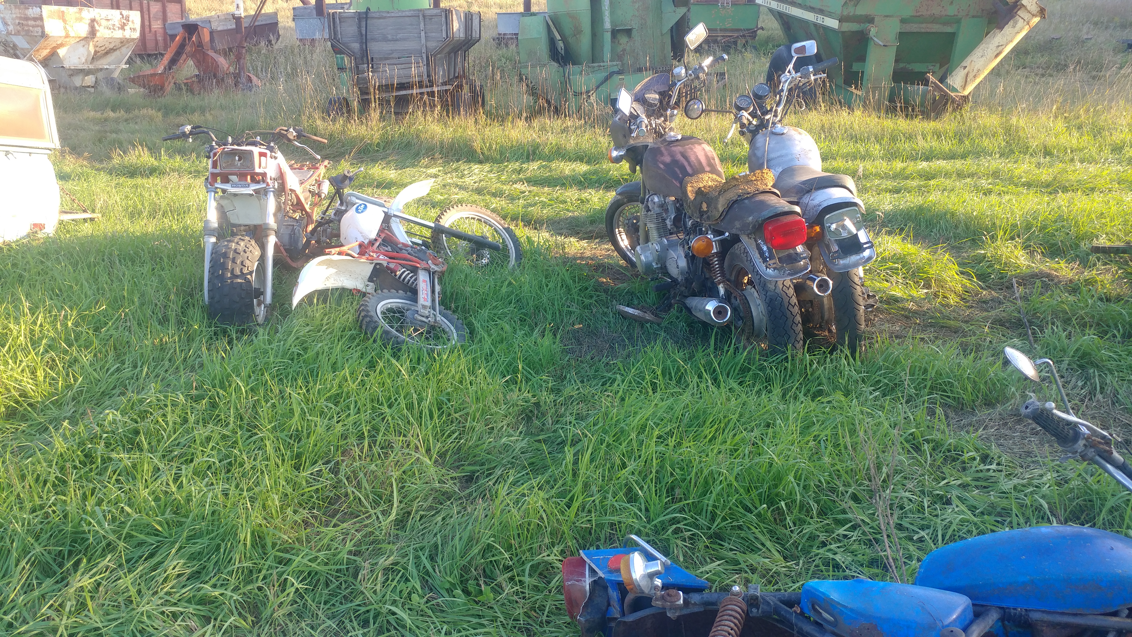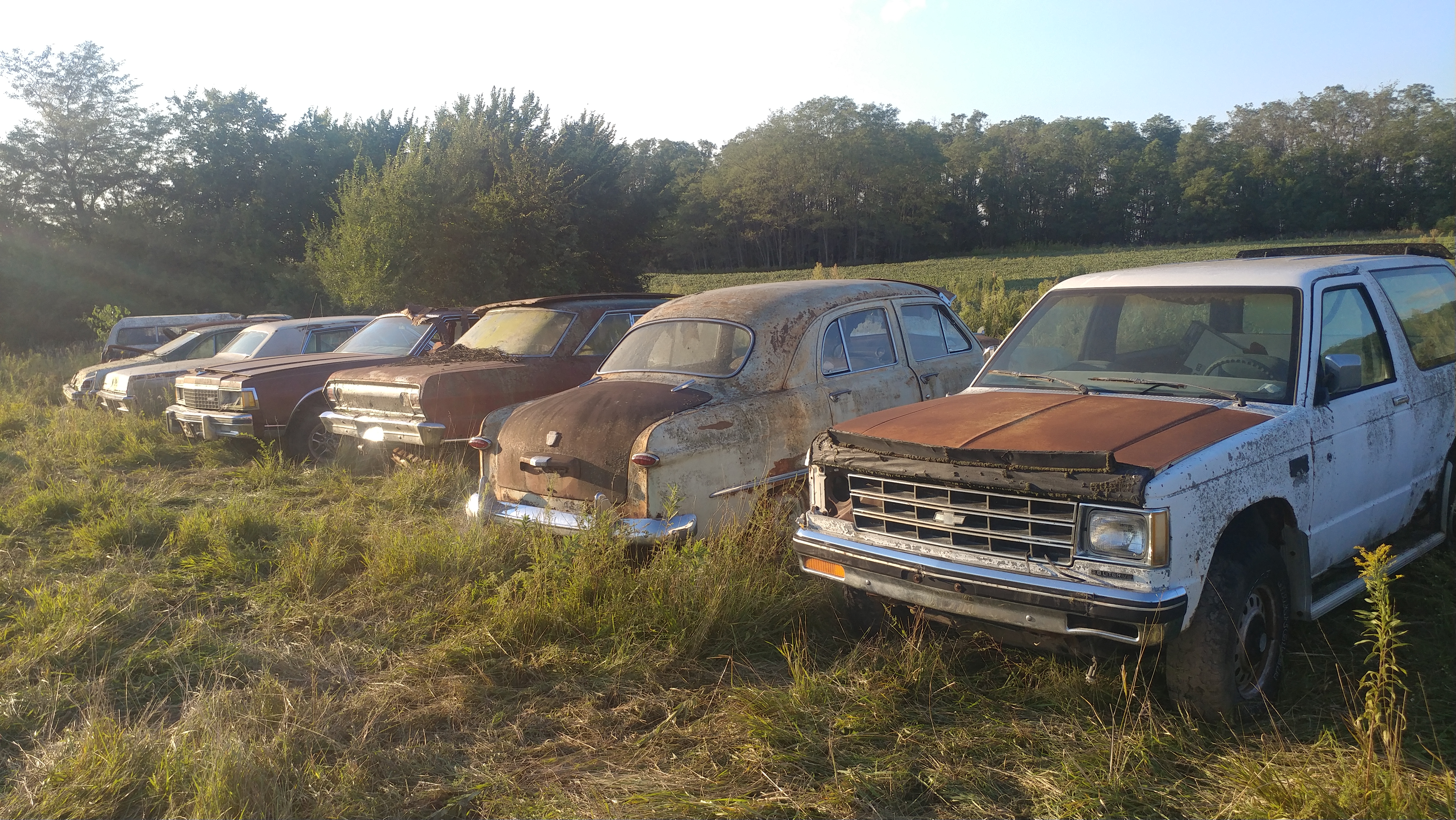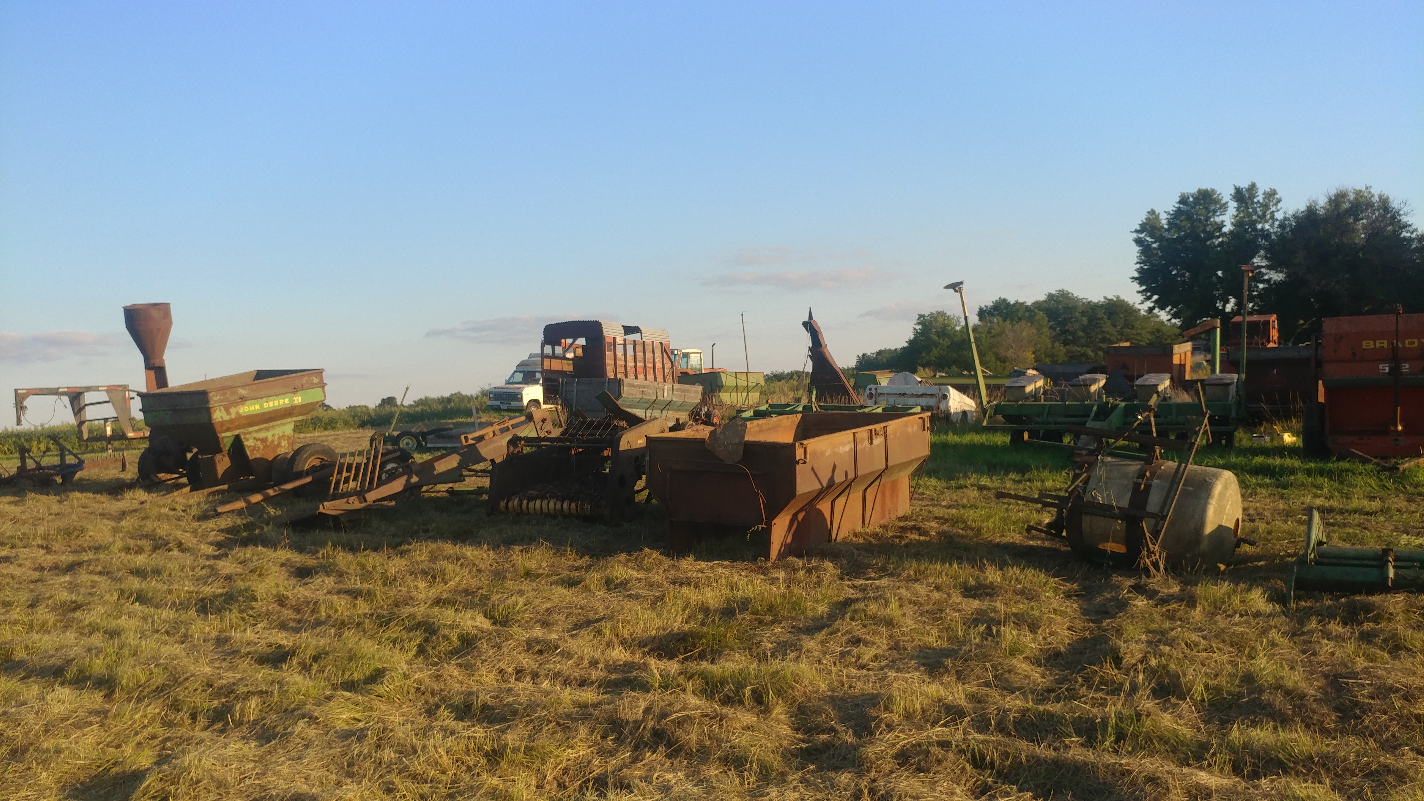 Chevy SS-56 Bel Air; Chevy 10 pickup; Camaros; Chevy DD; IH Loadstar 1700 Rollback 21’ deck w/hoist & wench; IH Loadstar 1700 truck & chassis; Top Kick 18’ flat bed LoPro; Chevy Apache 31 pickup; Lincoln Continental suicide doors; Monaza Spyder 4.3 L V8 Chevy; Pontiac Catalina; El Camino; Fleetmaster; Lincoln; Corvair 110; Ford Galaxy 500; Corvair 700; Ford Falcon’ Plymouth Plaza 2 door; Ford-O-Matic town sedan; Thunderbird; Pontiac Firebird; GMCs; 280 ST Mercedes Benz; Mazda; motorcycles; bicycles; snowmobiles; 3 wheelers; lawn mowers; boats; boat trailers; (5) pickup box trailers; 2 row pickers; side dump spreaders; harrow carts; balers; flare box wagons; planters; augers; drills; chisel plows; discs; bur mills; rotary cutters; silage wagons; JD 400 grinder rotary hoes; cultipackers; narrow front MiniMo tractor; auger wagons; plows; 6 bale trailer; 1 arm loader; Mark Twain 16’ boat; John Deer BWA disc; field cultivators; rakes; combines;