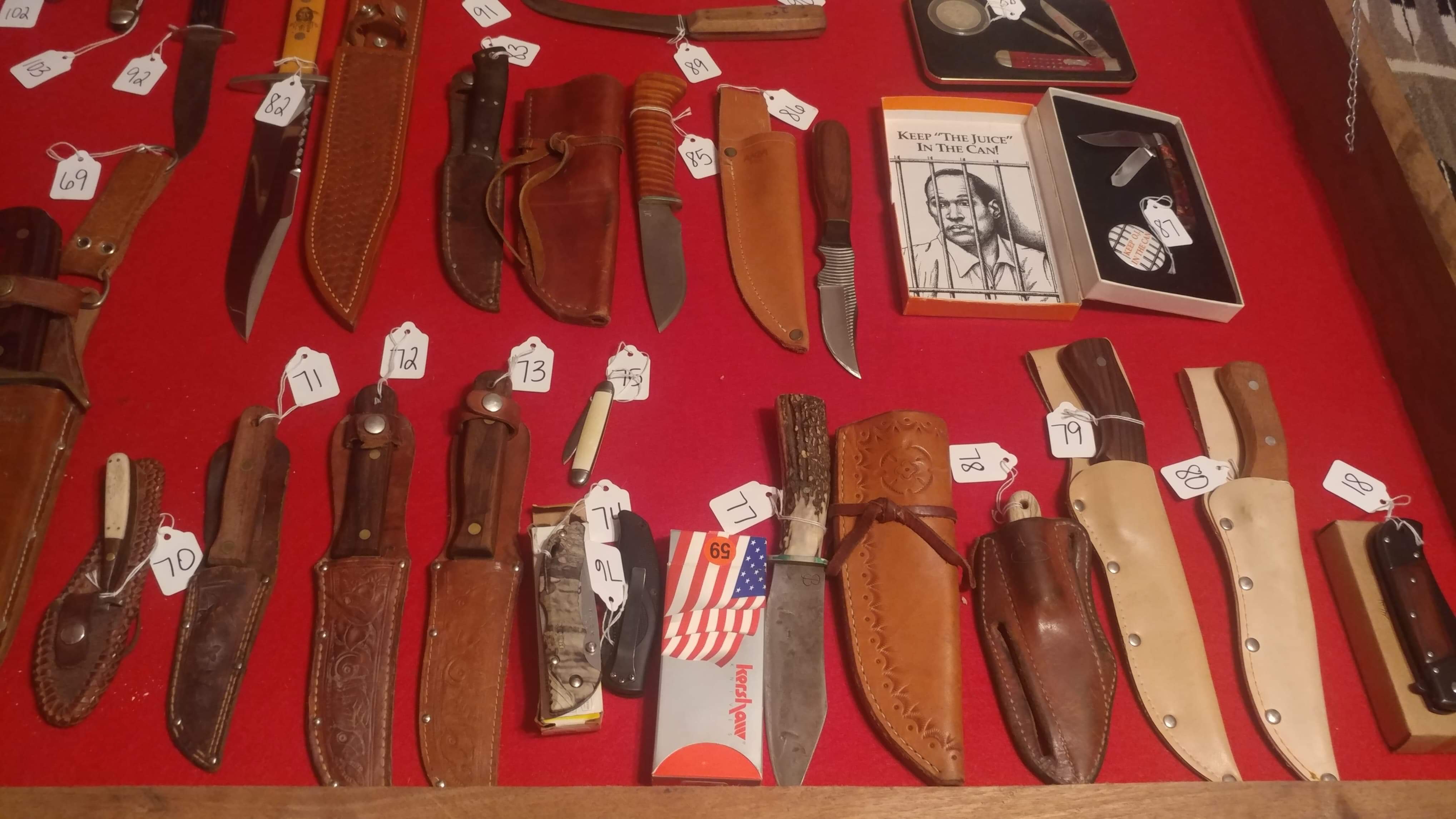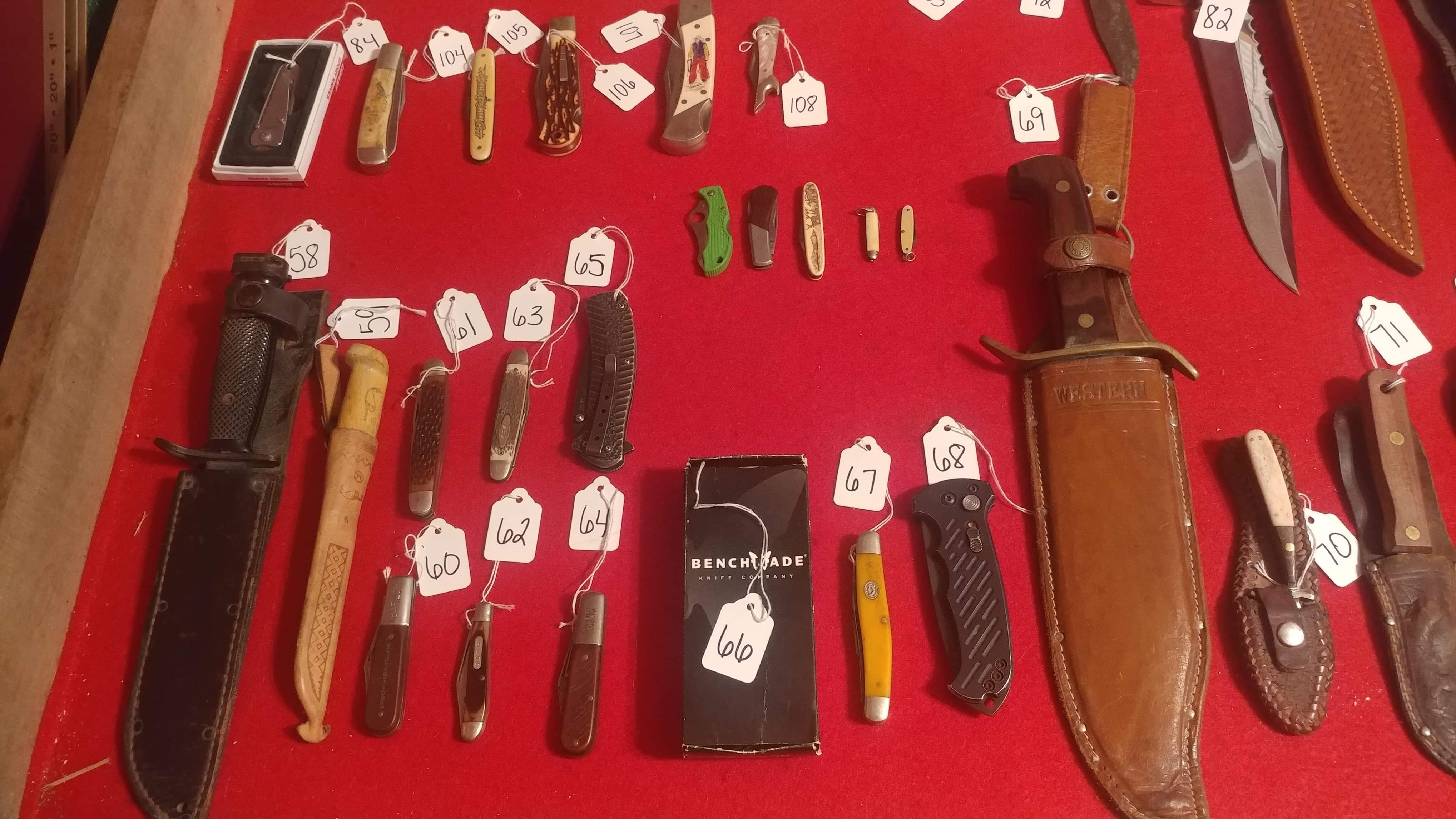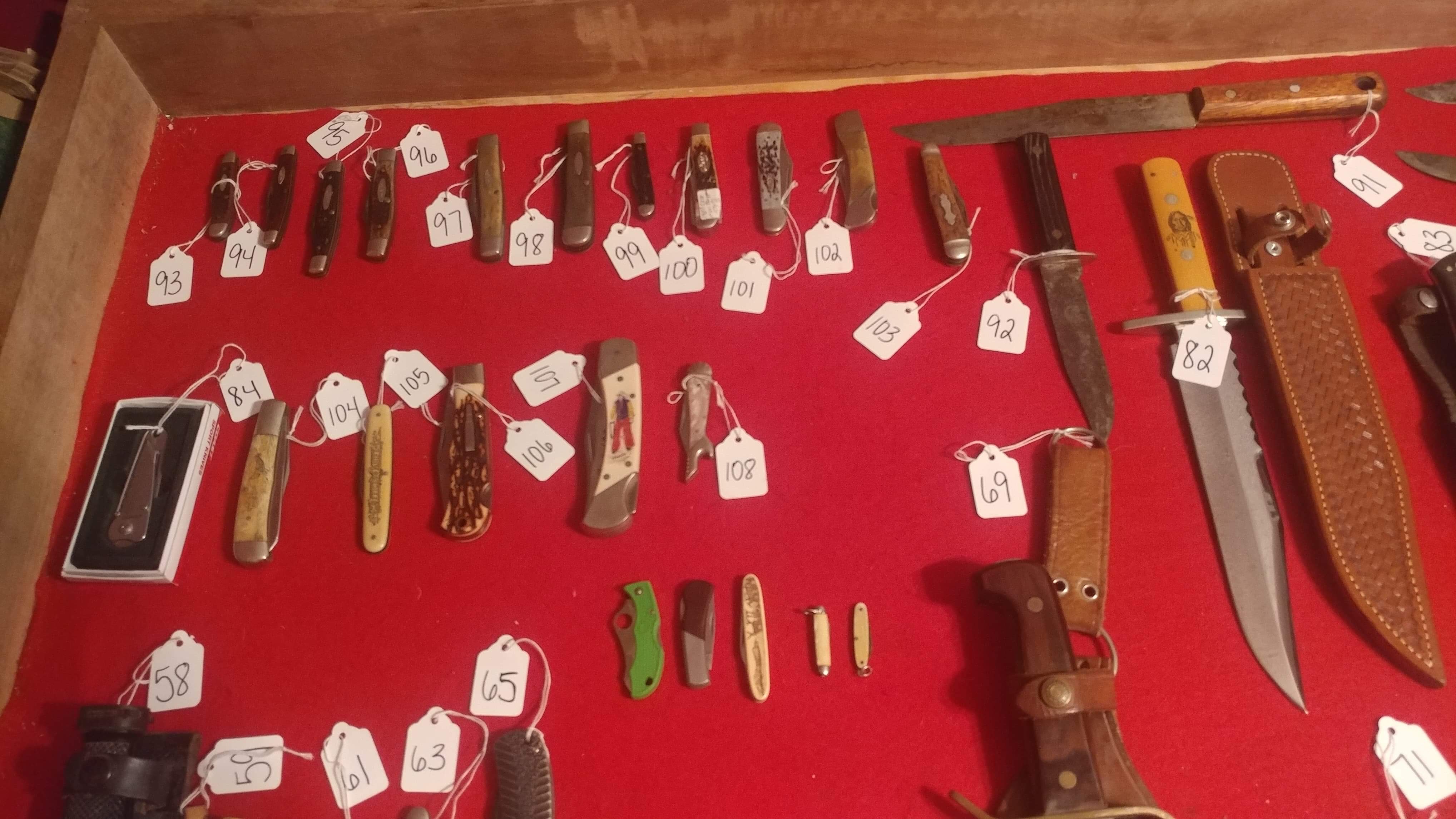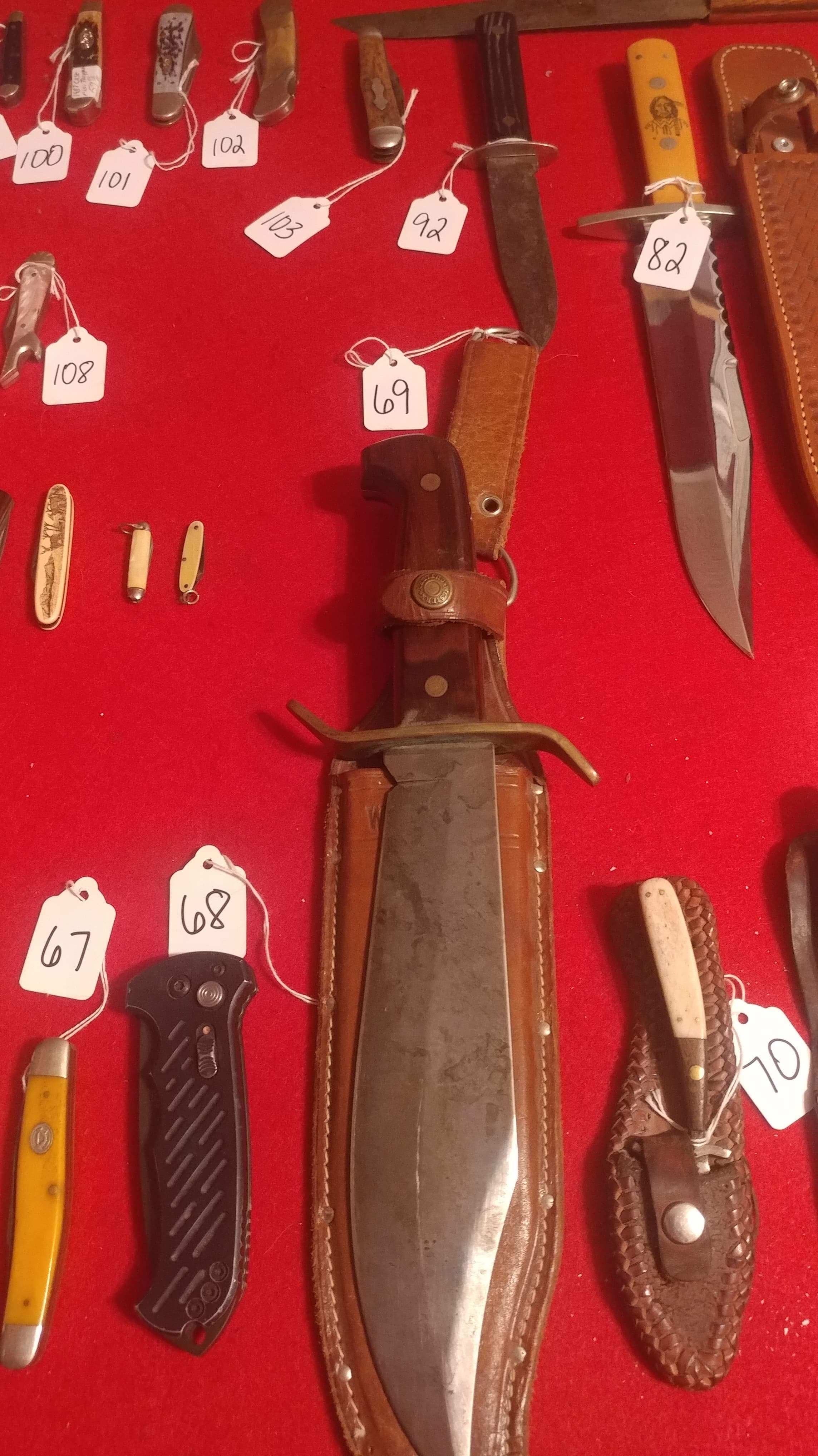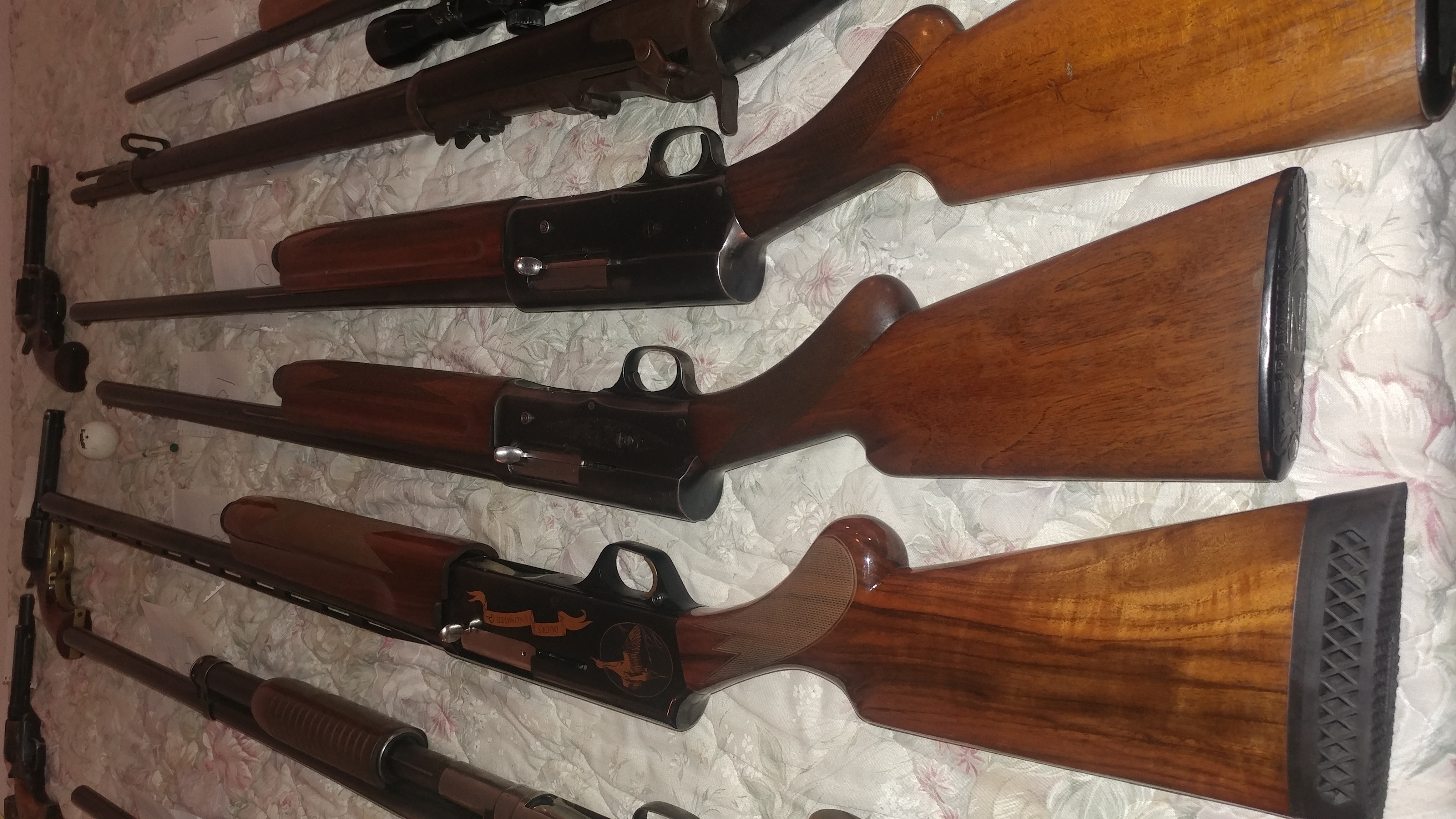 Sierra Six 22/22 mag cylinder ; Cabela’s SAA 45 long colt ; Uberti SA 357 mag. ; Marlin 39D 22 cal ; Marlin Golden 39A 22 cal ; Marlin 39A 22 cal ; Marlin 1894 .357 Mag ; Marlin 336 30-30 ; Marlin 336A 30-30 ; Marlin 338 MX 338 Marlin Express ; Winchester 30-30 ; Winchester 94 30-30 ; Winchester 94 30-30 Teddy Roosevelt ; Winchester 94 Wrangler 32 Win SP ; Henry 22 mag LA ; Remington 788 bolt action .222 with scope ; Remington 788 bolt action .243 with scope ; Henry American Beauty 22 NIB ; US Springfield M1878 45-70 trap door ; Browning A5 12 ga. ; Browning A5 16 ga. ; Browning A5 Ducks Unlimited 12 ga.; Winchester M12 12 ga. ; Winchester M12 16 ga. ; High Standard Victor Semi Auto .22 ; Ruger K 10/22 Semi Auto .22 ; Ruger K10/22 Semi Auto .22 ; Ruger 10/22 Take-Down Semi Auto .22 ; Marlin 39A Lever Action .22 ; Ruger Precision Rifle Bolt Action .243 ; Browning Model 42 Pump 410 ; Browning Citori O/U 410 ; Fox Model B S/S 410;Marlin Model 782 bolt action .22 Mag ; Winchester Model 70 Sporter bolt action .30-06 ; Marlin Model 336 lever action .30-30 ; Winchester Model 1300 pump 12 ga. ; Browning D-S/S 12 ga ; Browning Citori O/U 20 ga. ; Browning Citori O/U 20 ga.; Browning B-S/S 20 ga. ; Browning B-S/S 20 ga. ; Smith & Wesson MP Semi Auto 9MM ; Ruger Model 96/17 lever action .17 HMR ; 100 m/l knives, some folding some sheathed belt knives & others;