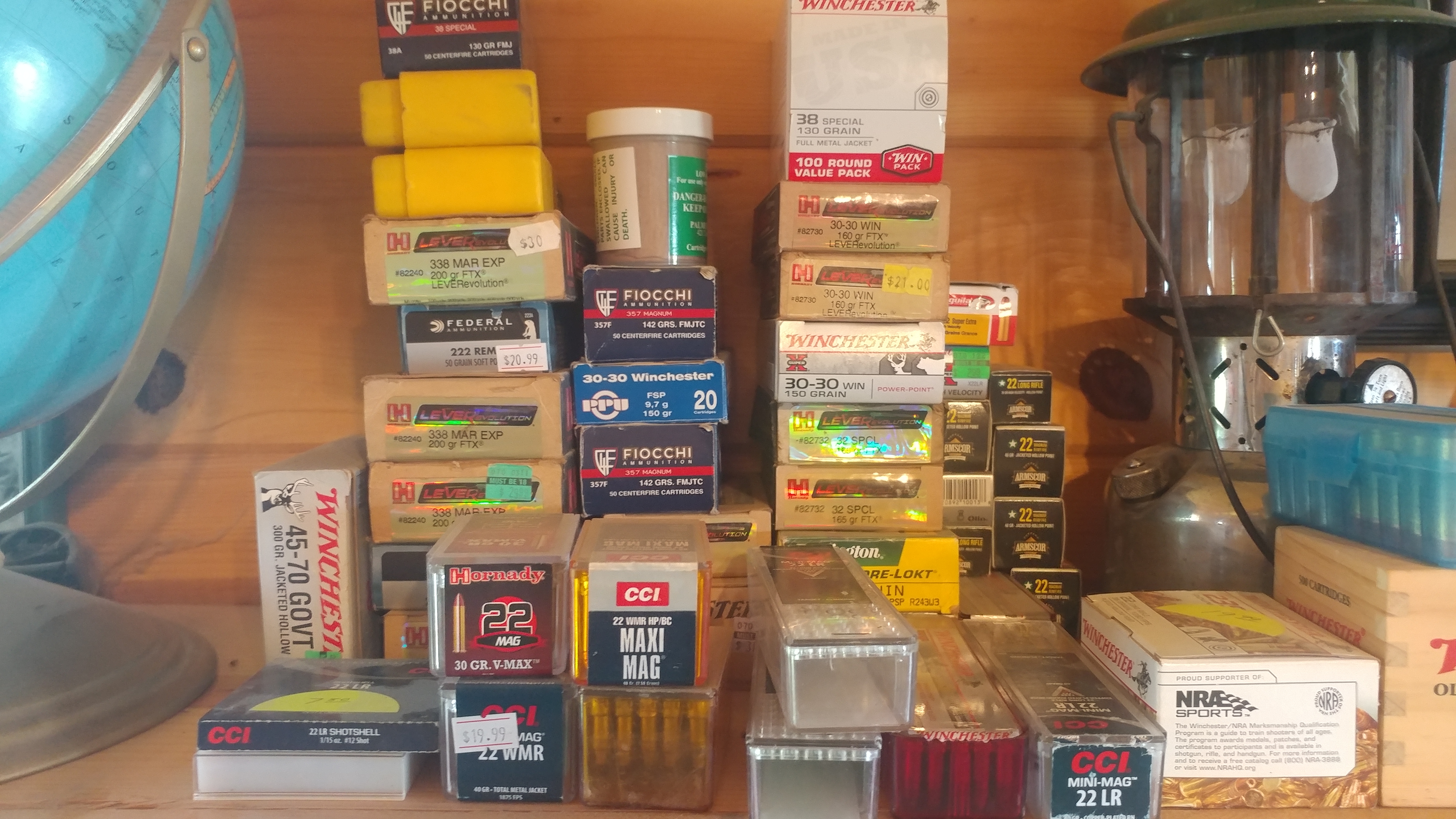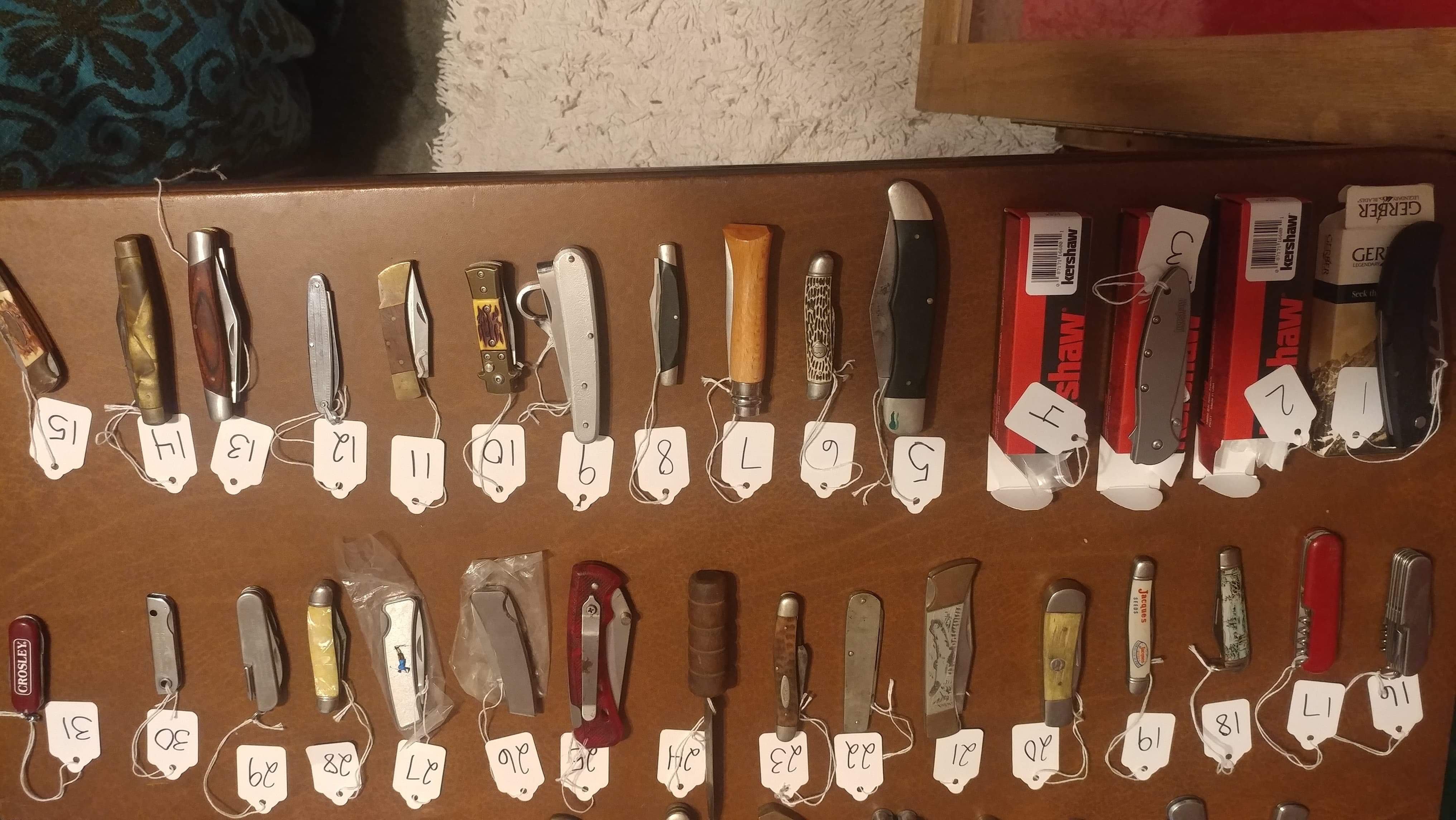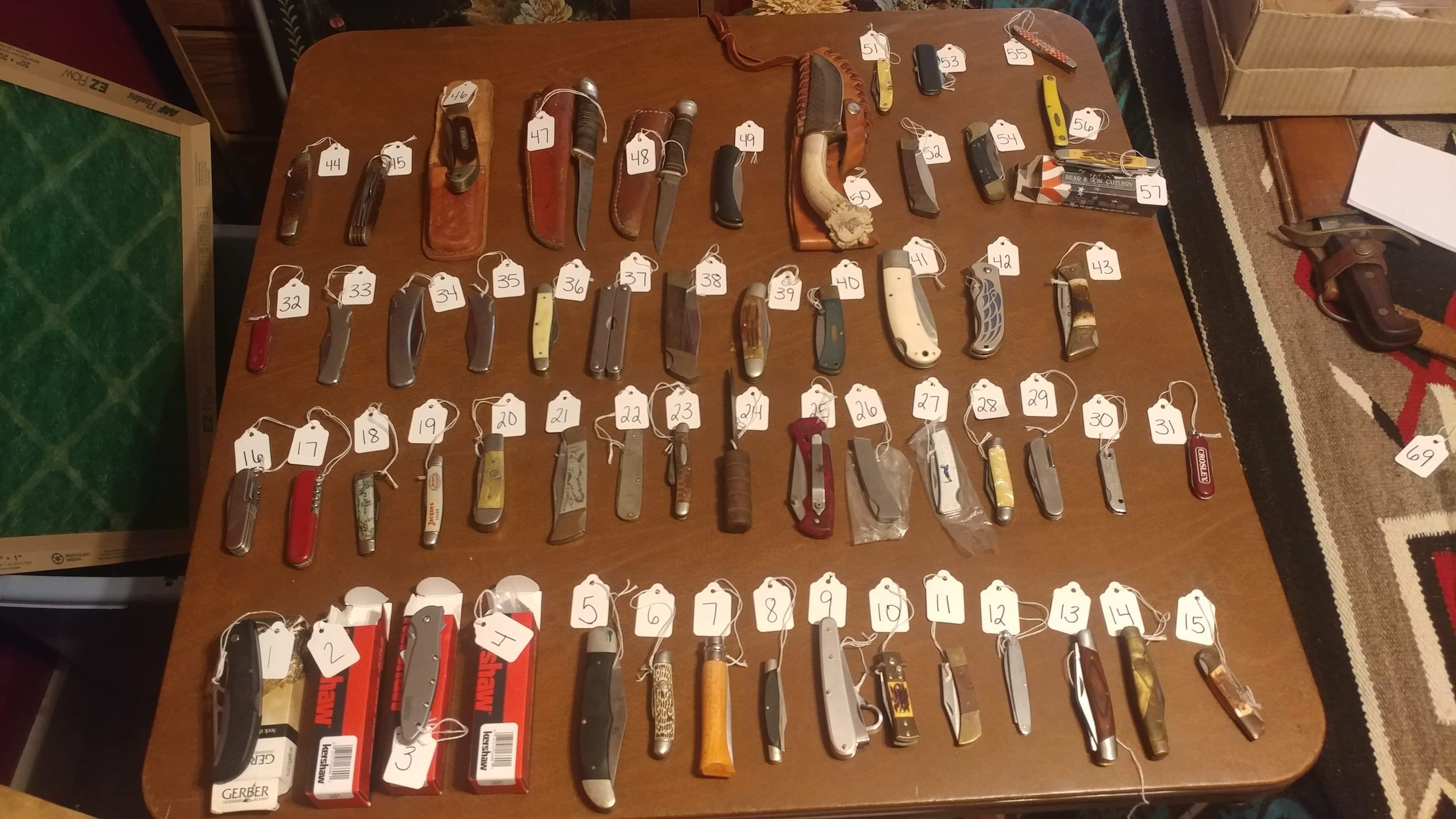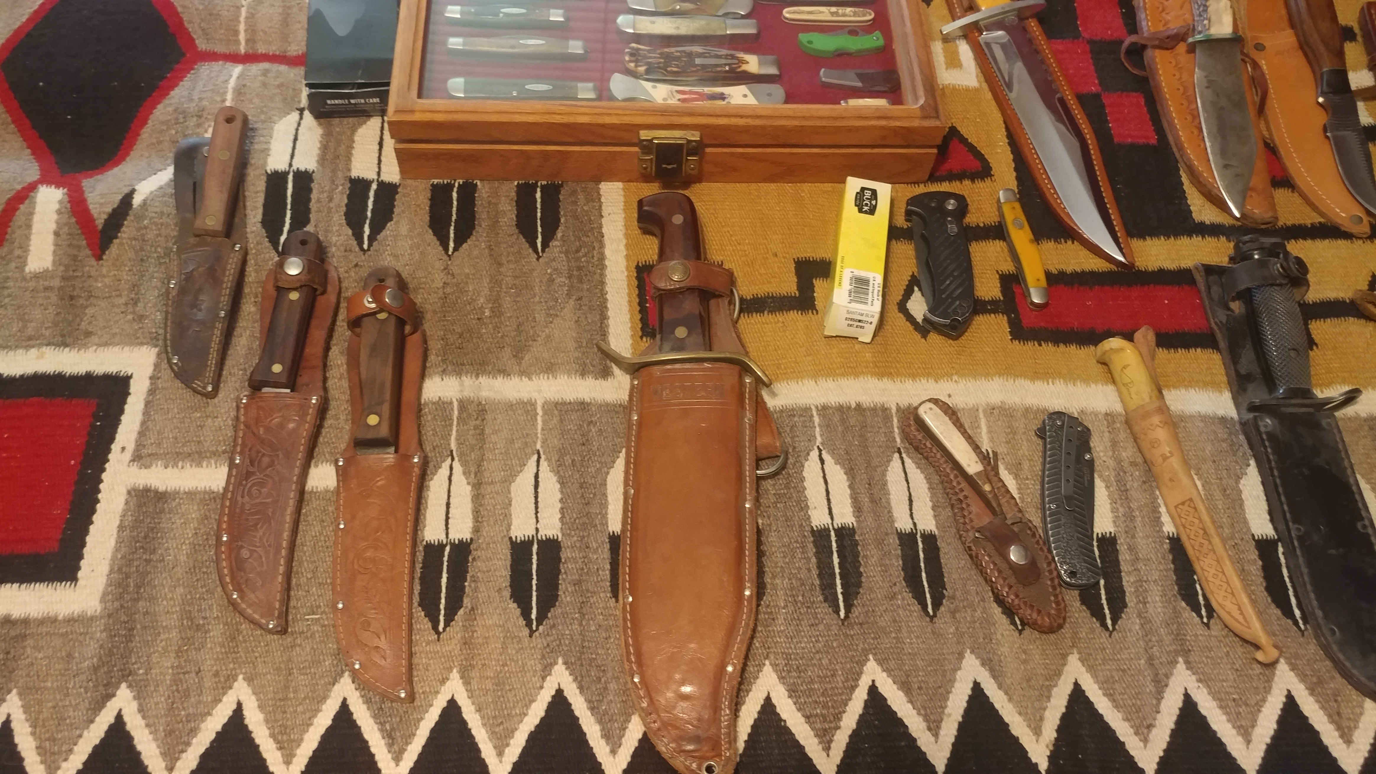 Sierra Six 22/22 mag cylinder ; Cabela’s SAA 45 long colt ; Uberti SA 357 mag. ; Marlin 39D 22 cal ; Marlin Golden 39A 22 cal ; Marlin 39A 22 cal ; Marlin 1894 .357 Mag ; Marlin 336 30-30 ; Marlin 336A 30-30 ; Marlin 338 MX 338 Marlin Express ; Winchester 30-30 ; Winchester 94 30-30 ; Winchester 94 30-30 Teddy Roosevelt ; Winchester 94 Wrangler 32 Win SP ; Henry 22 mag LA ; Remington 788 bolt action .222 with scope ; Remington 788 bolt action .243 with scope ; Henry American Beauty 22 NIB ; US Springfield M1878 45-70 trap door ; Browning A5 12 ga. ; Browning A5 16 ga. ; Browning A5 Ducks Unlimited 12 ga.; Winchester M12 12 ga. ; Winchester M12 16 ga. ; High Standard Victor Semi Auto .22 ; Ruger K 10/22 Semi Auto .22 ; Ruger K10/22 Semi Auto .22 ; Ruger 10/22 Take-Down Semi Auto .22 ; Marlin 39A Lever Action .22 ; Ruger Precision Rifle Bolt Action .243 ; Browning Model 42 Pump 410 ; Browning Citori O/U 410 ; Fox Model B S/S 410;Marlin Model 782 bolt action .22 Mag ; Winchester Model 70 Sporter bolt action .30-06 ; Marlin Model 336 lever action .30-30 ; Winchester Model 1300 pump 12 ga. ; Browning D-S/S 12 ga ; Browning Citori O/U 20 ga. ; Browning Citori O/U 20 ga.; Browning B-S/S 20 ga. ; Browning B-S/S 20 ga. ; Smith & Wesson MP Semi Auto 9MM ; Ruger Model 96/17 lever action .17 HMR ; 100 m/l knives, some folding some sheathed belt knives & others;