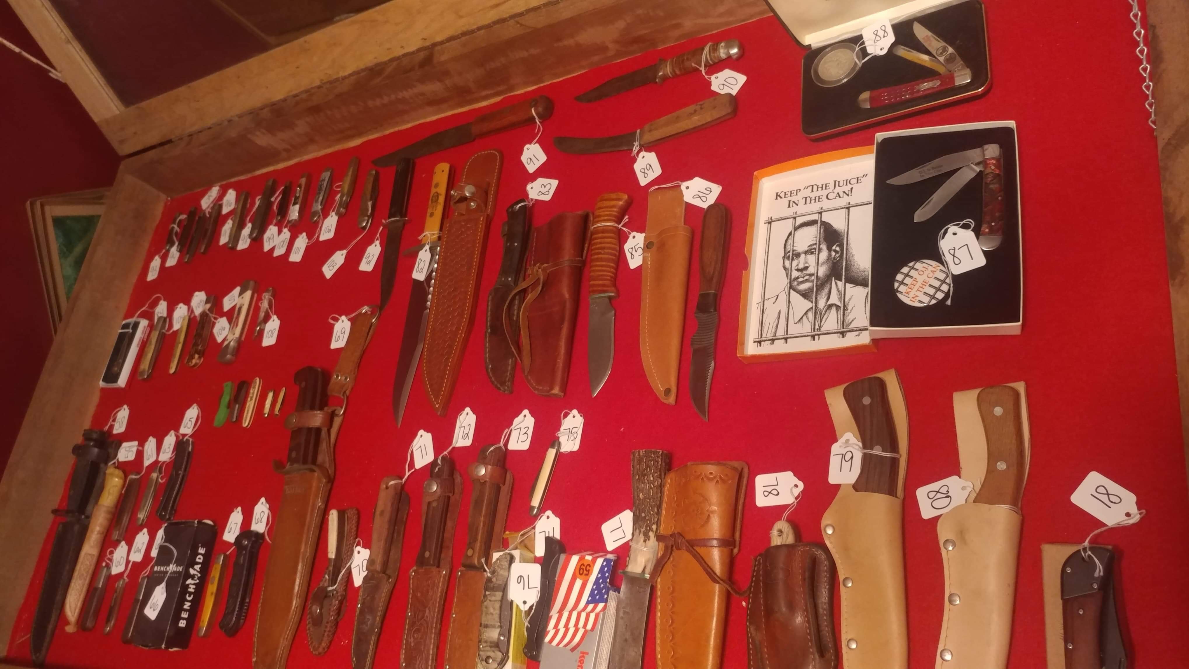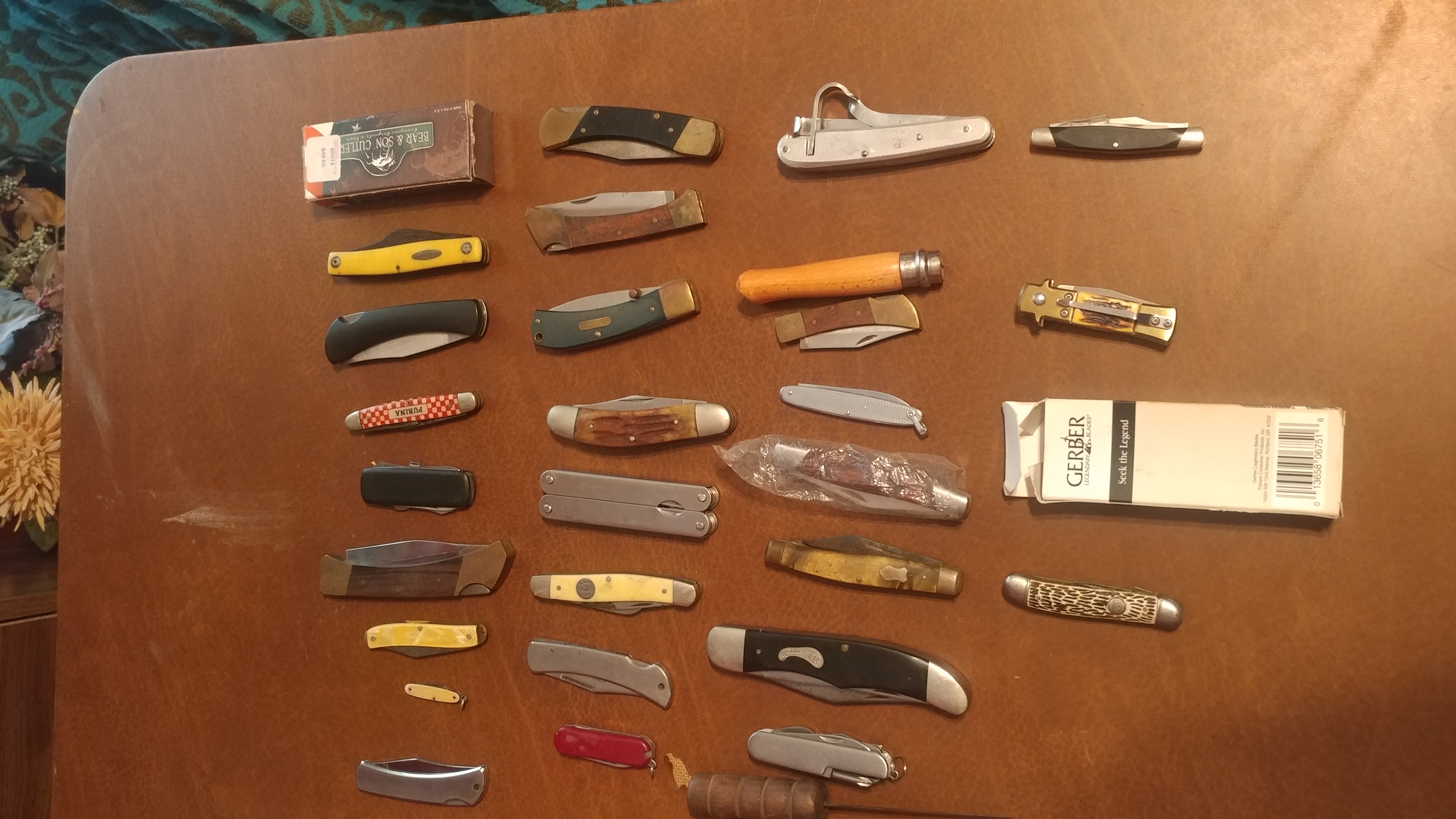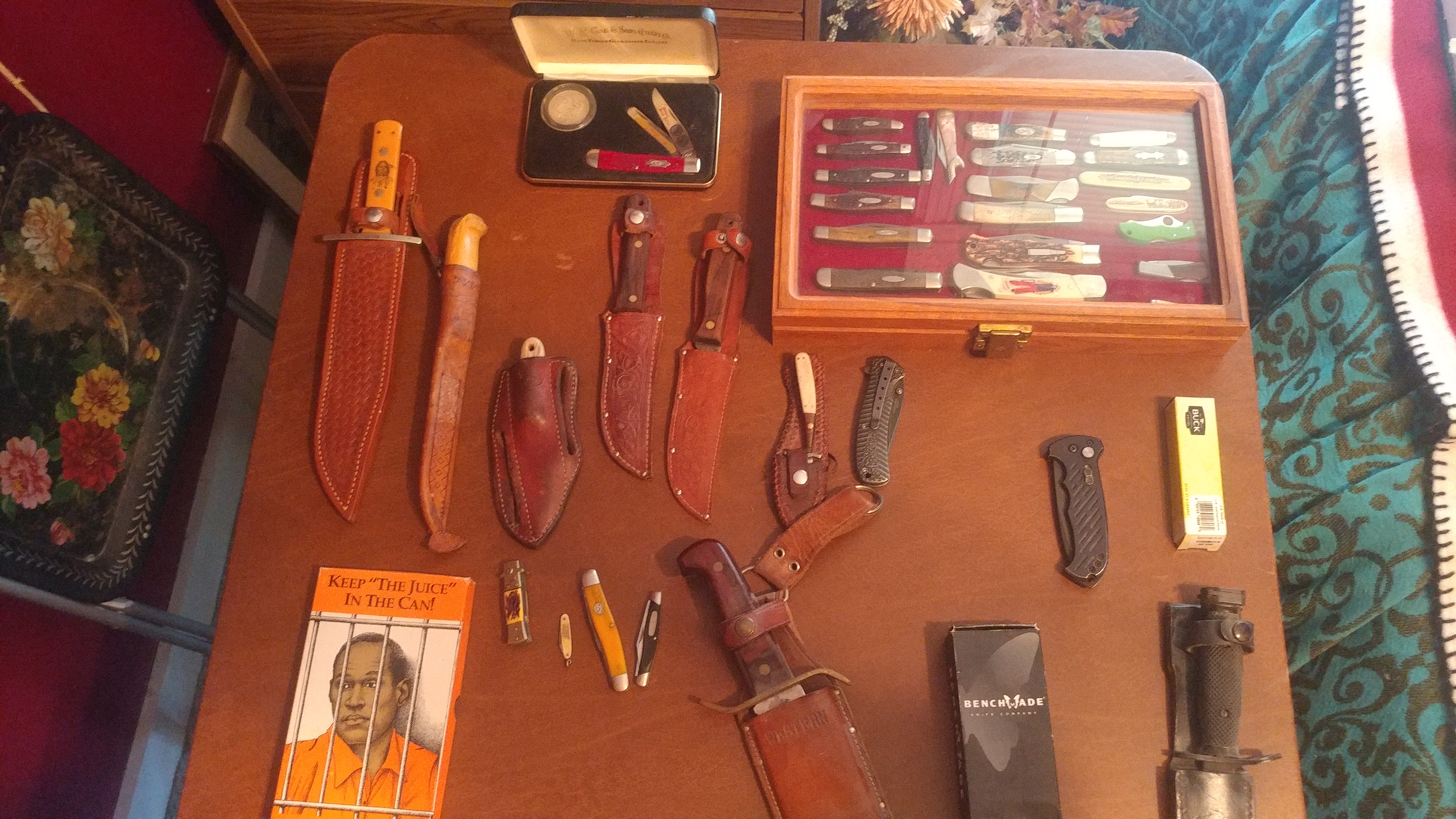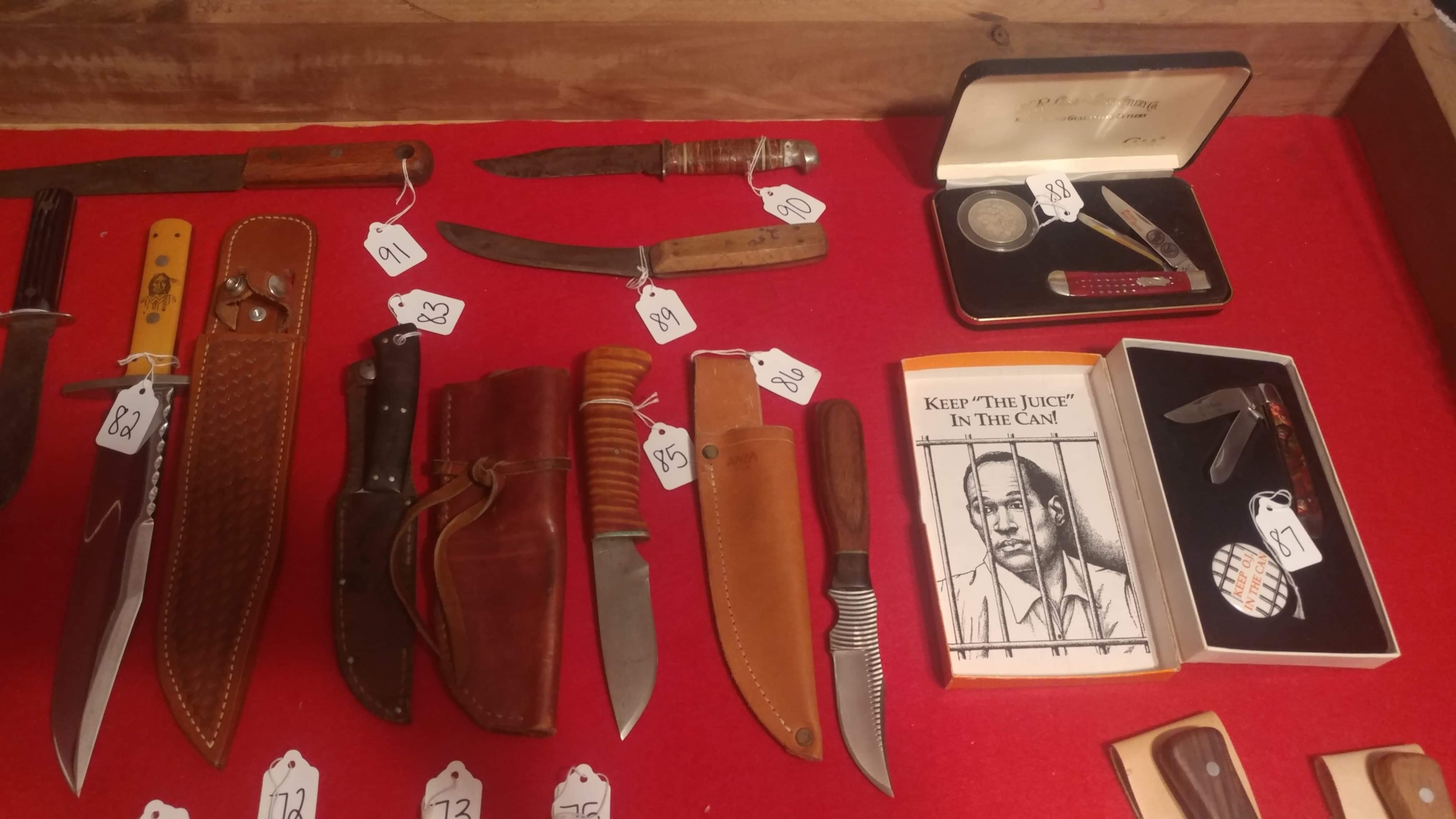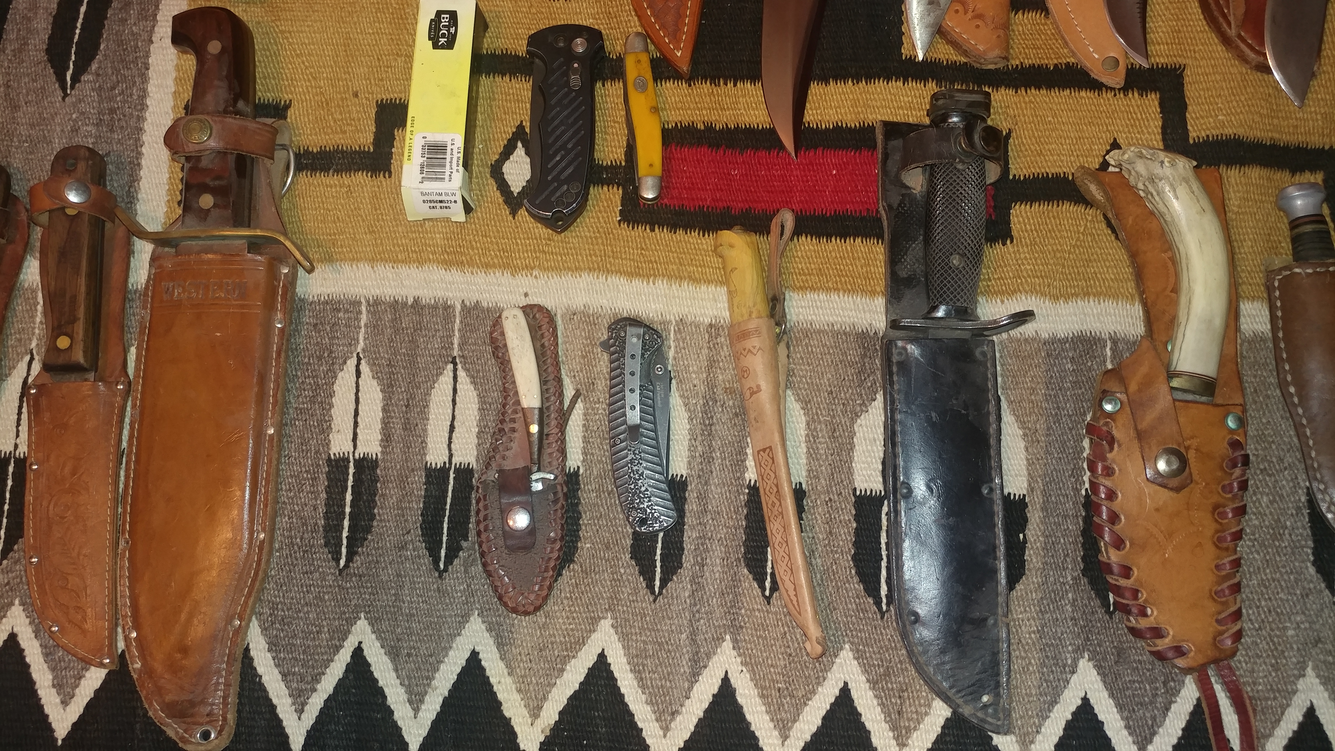 Sierra Six 22/22 mag cylinder ; Cabela’s SAA 45 long colt ; Uberti SA 357 mag. ; Marlin 39D 22 cal ; Marlin Golden 39A 22 cal ; Marlin 39A 22 cal ; Marlin 1894 .357 Mag ; Marlin 336 30-30 ; Marlin 336A 30-30 ; Marlin 338 MX 338 Marlin Express ; Winchester 30-30 ; Winchester 94 30-30 ; Winchester 94 30-30 Teddy Roosevelt ; Winchester 94 Wrangler 32 Win SP ; Henry 22 mag LA ; Remington 788 bolt action .222 with scope ; Remington 788 bolt action .243 with scope ; Henry American Beauty 22 NIB ; US Springfield M1878 45-70 trap door ; Browning A5 12 ga. ; Browning A5 16 ga. ; Browning A5 Ducks Unlimited 12 ga.; Winchester M12 12 ga. ; Winchester M12 16 ga. ; High Standard Victor Semi Auto .22 ; Ruger K 10/22 Semi Auto .22 ; Ruger K10/22 Semi Auto .22 ; Ruger 10/22 Take-Down Semi Auto .22 ; Marlin 39A Lever Action .22 ; Ruger Precision Rifle Bolt Action .243 ; Browning Model 42 Pump 410 ; Browning Citori O/U 410 ; Fox Model B S/S 410;Marlin Model 782 bolt action .22 Mag ; Winchester Model 70 Sporter bolt action .30-06 ; Marlin Model 336 lever action .30-30 ; Winchester Model 1300 pump 12 ga. ; Browning D-S/S 12 ga ; Browning Citori O/U 20 ga. ; Browning Citori O/U 20 ga.; Browning B-S/S 20 ga. ; Browning B-S/S 20 ga. ; Smith & Wesson MP Semi Auto 9MM ; Ruger Model 96/17 lever action .17 HMR ; 100 m/l knives, some folding some sheathed belt knives & others;