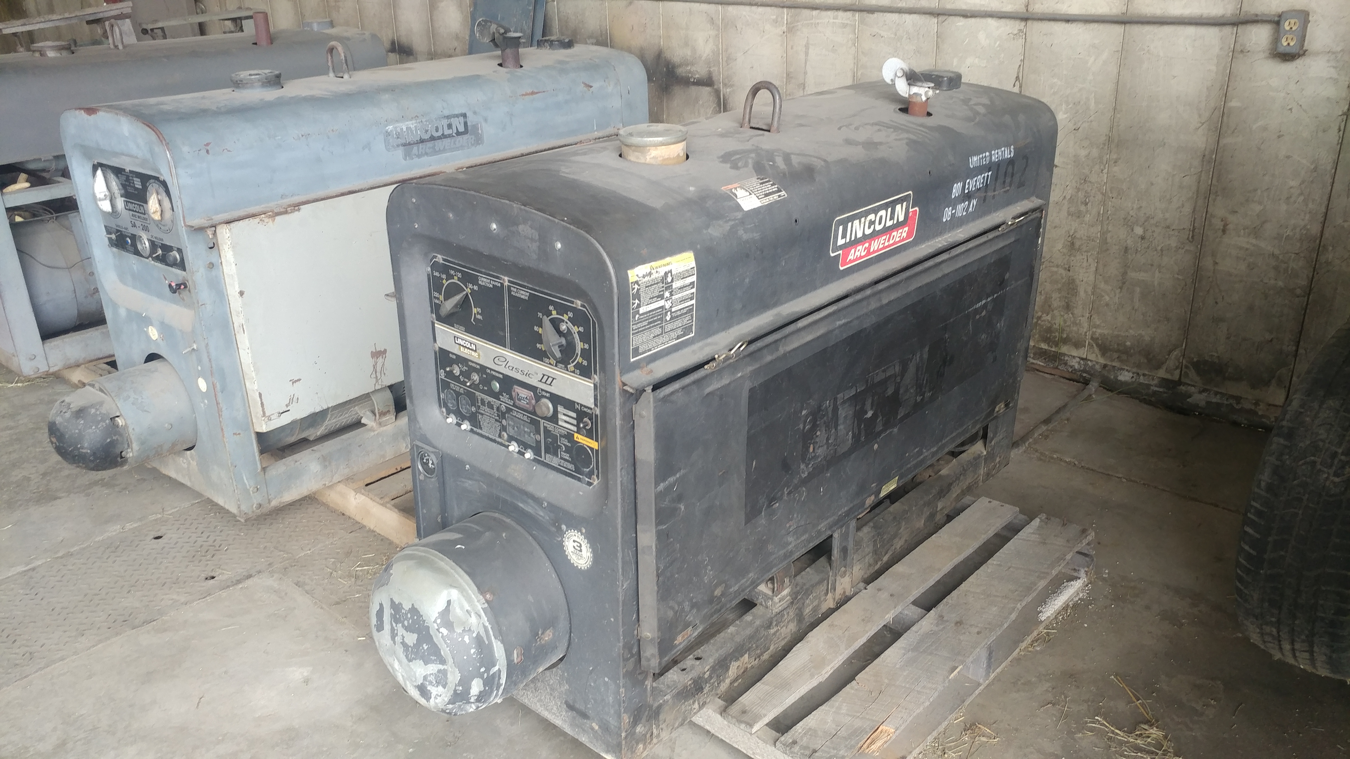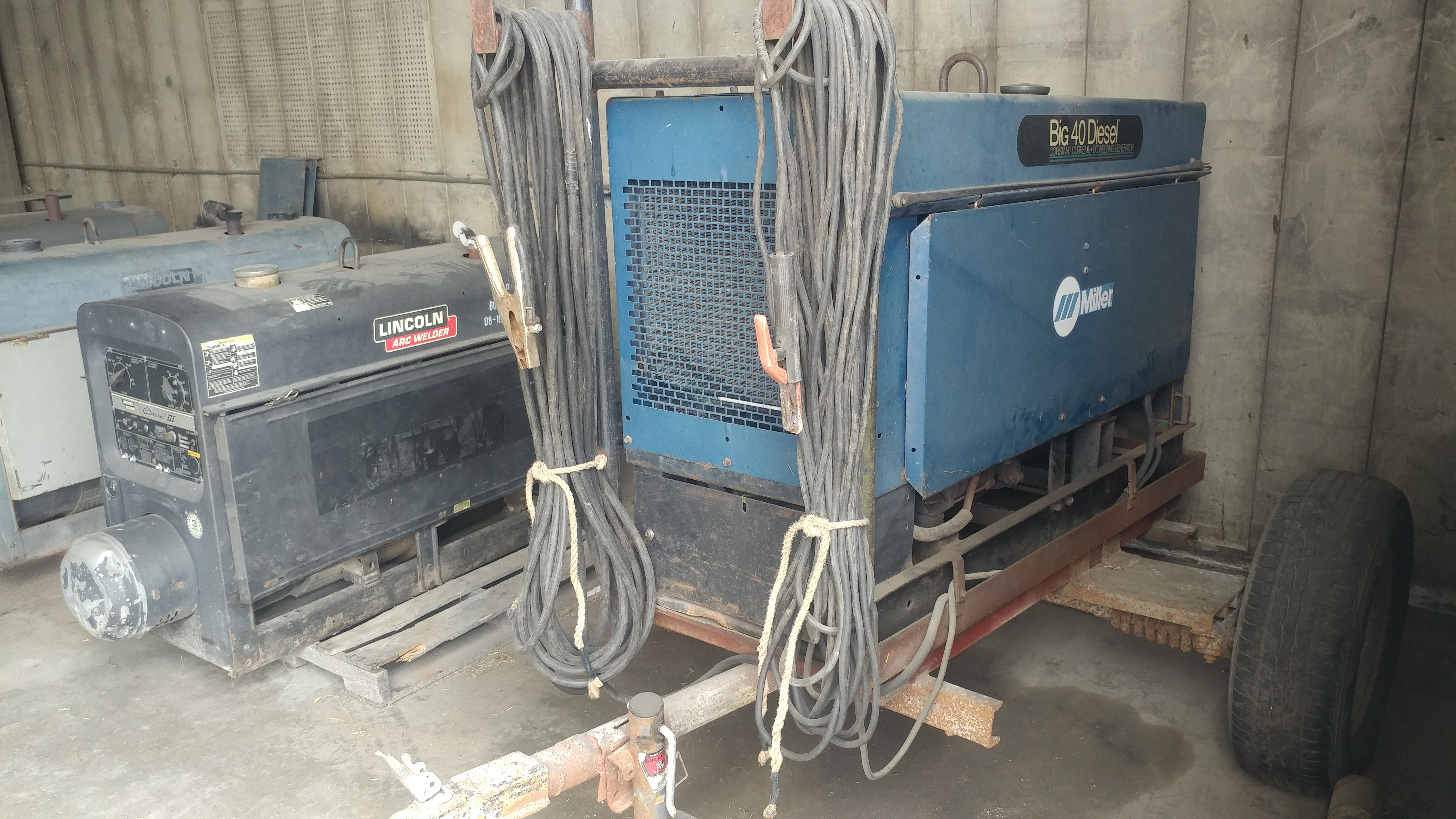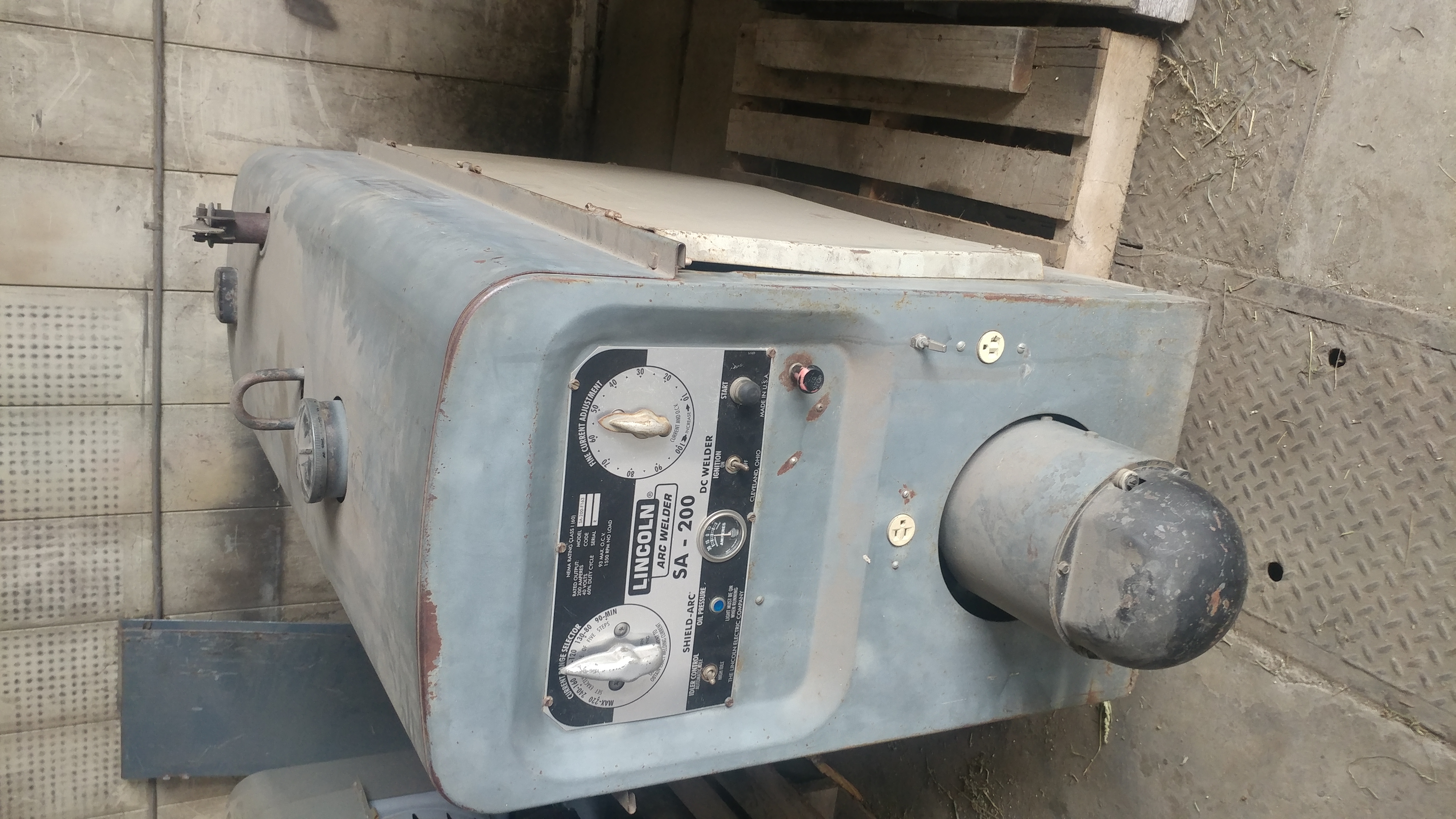 Lincoln classic III G, gas powered, 2400 Hours; Lincoln SA 200 Green light gas welder; Lincoln SA 200 blackface gas welder; Lincoln electric precision tig 185 with foot & hand control; Miller big 40 diesel welder, 348 hours, sells with leads on a 2 wheel cart; (50) cartons of welding rod; 30#, 100#, 130# & 200# Vulcan anvils; 80# Peter Wright anvil; homemade 3 phase pipe threader; pipe corrals; homemade coal forge.