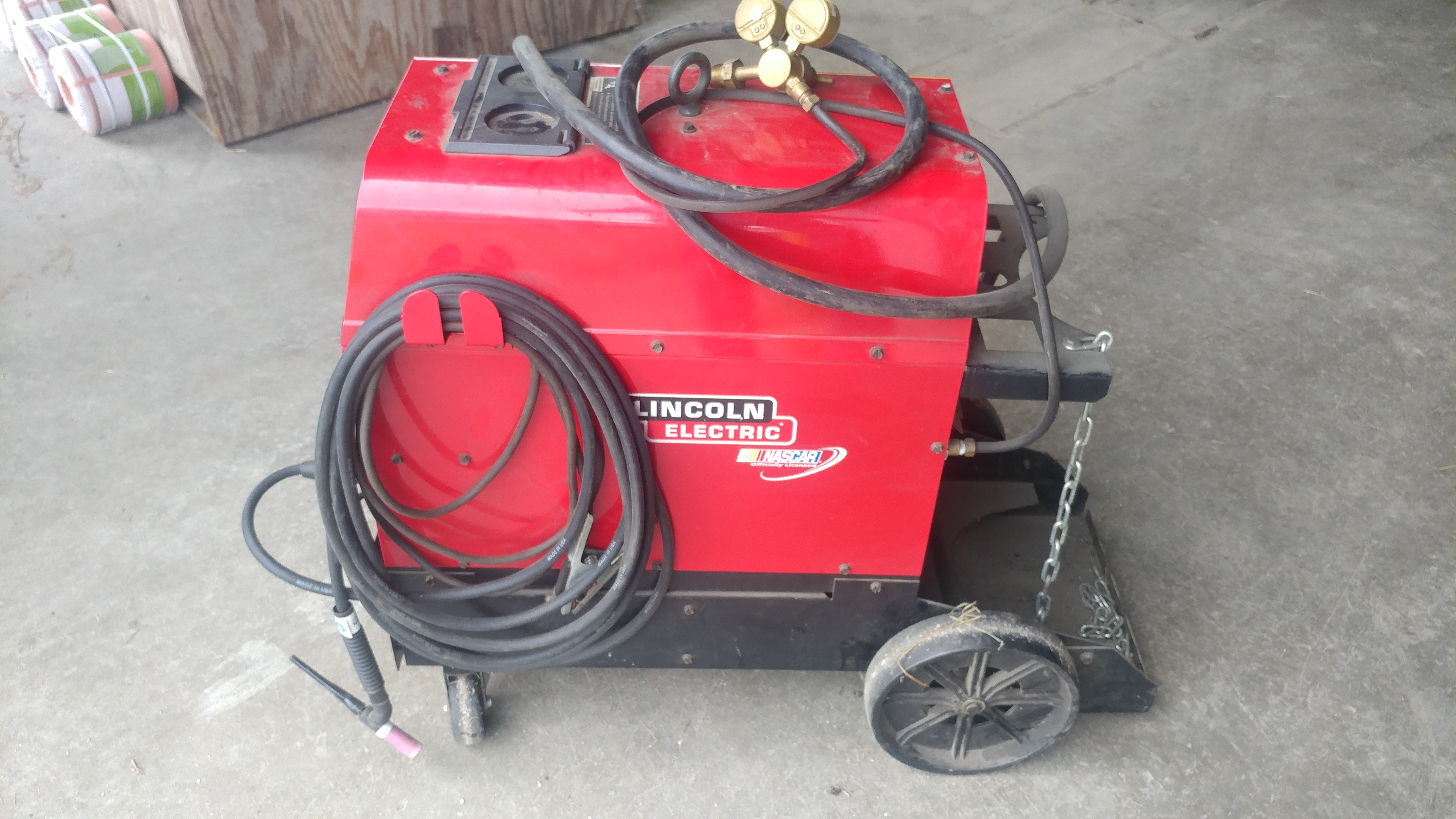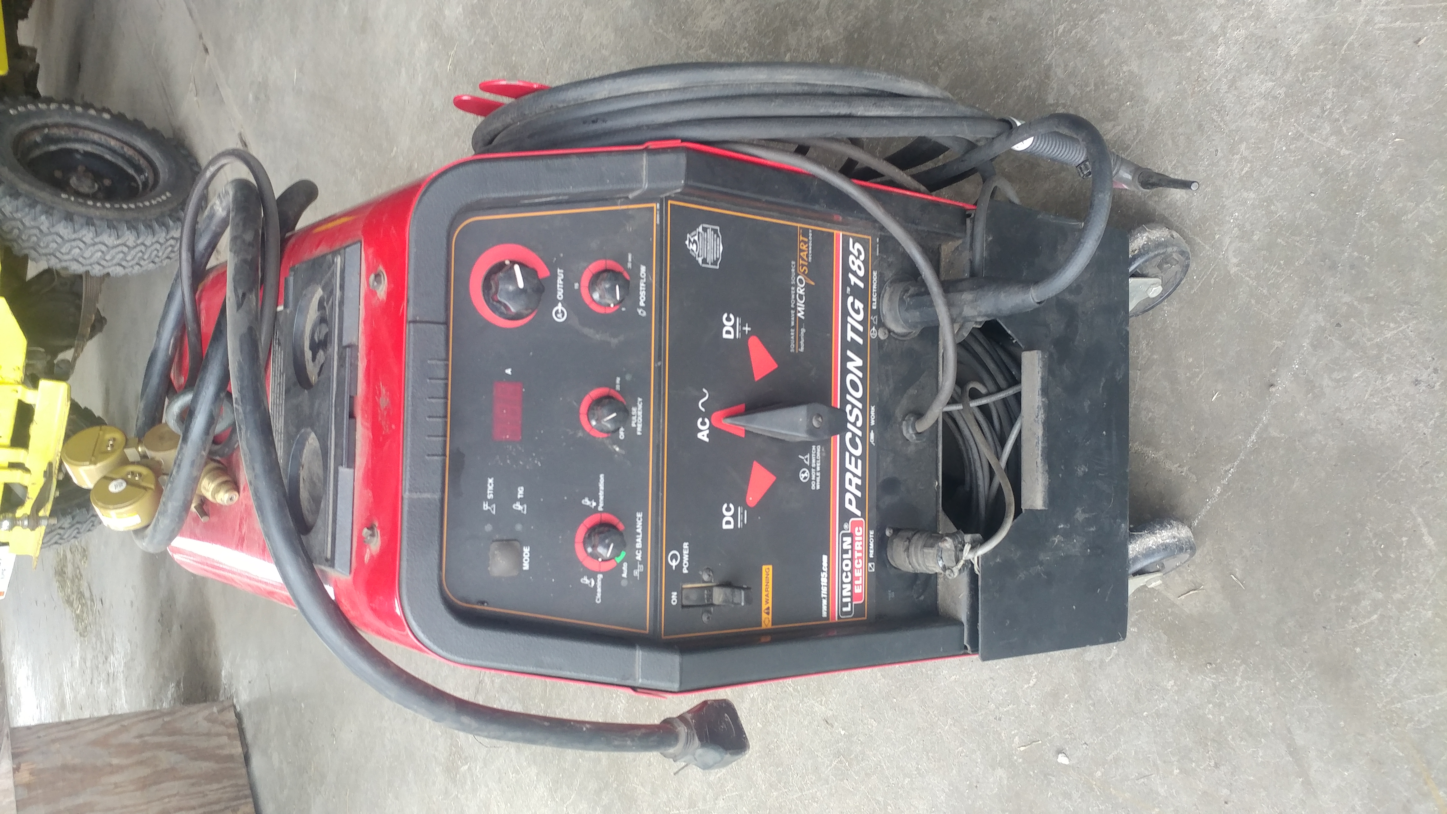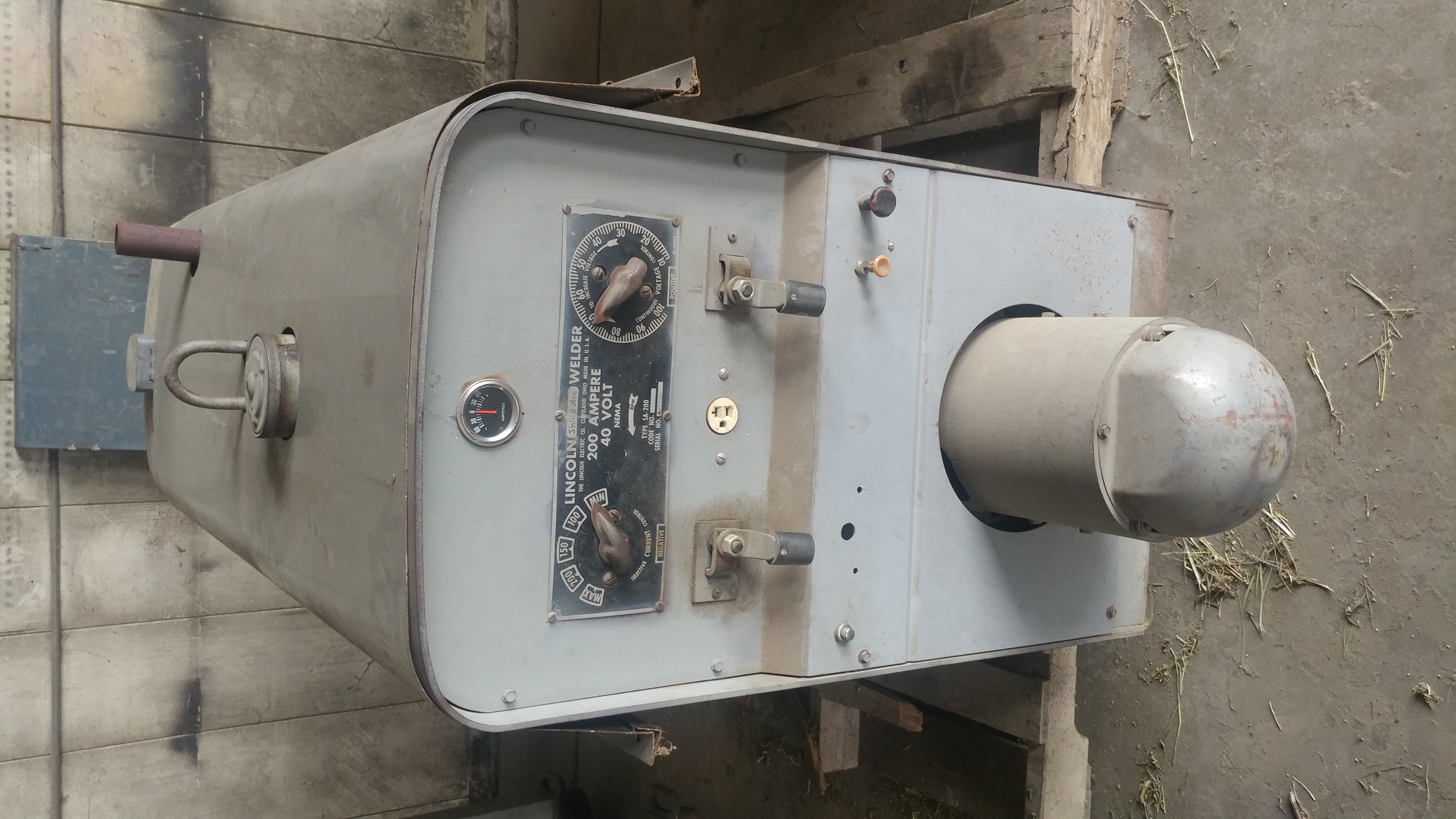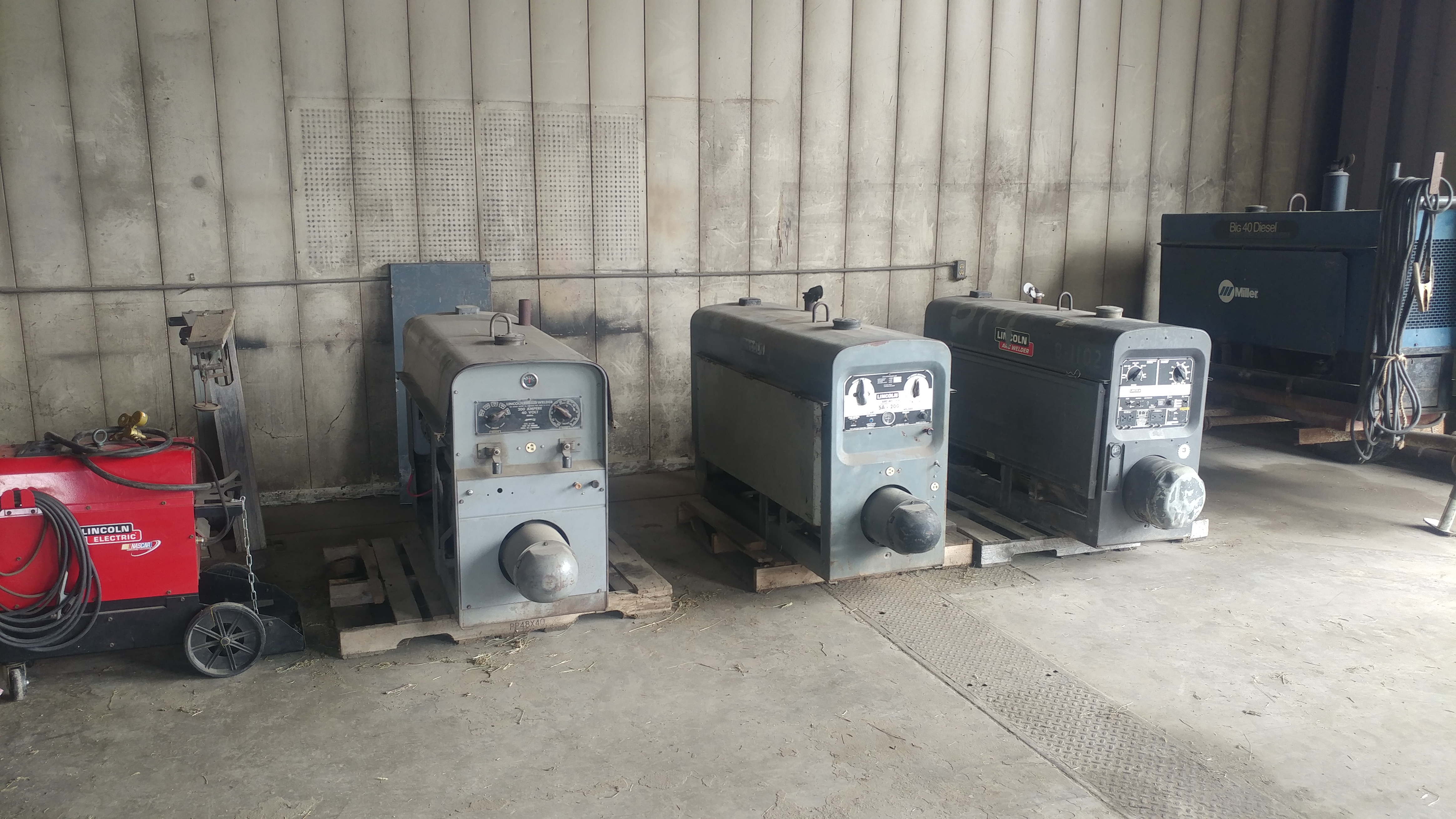 Lincoln classic III G, gas powered, 2400 Hours; Lincoln SA 200 Green light gas welder; Lincoln SA 200 blackface gas welder; Lincoln electric precision tig 185 with foot & hand control; Miller big 40 diesel welder, 348 hours, sells with leads on a 2 wheel cart; (50) cartons of welding rod; 30#, 100#, 130# & 200# Vulcan anvils; 80# Peter Wright anvil; homemade 3 phase pipe threader; pipe corrals; homemade coal forge.