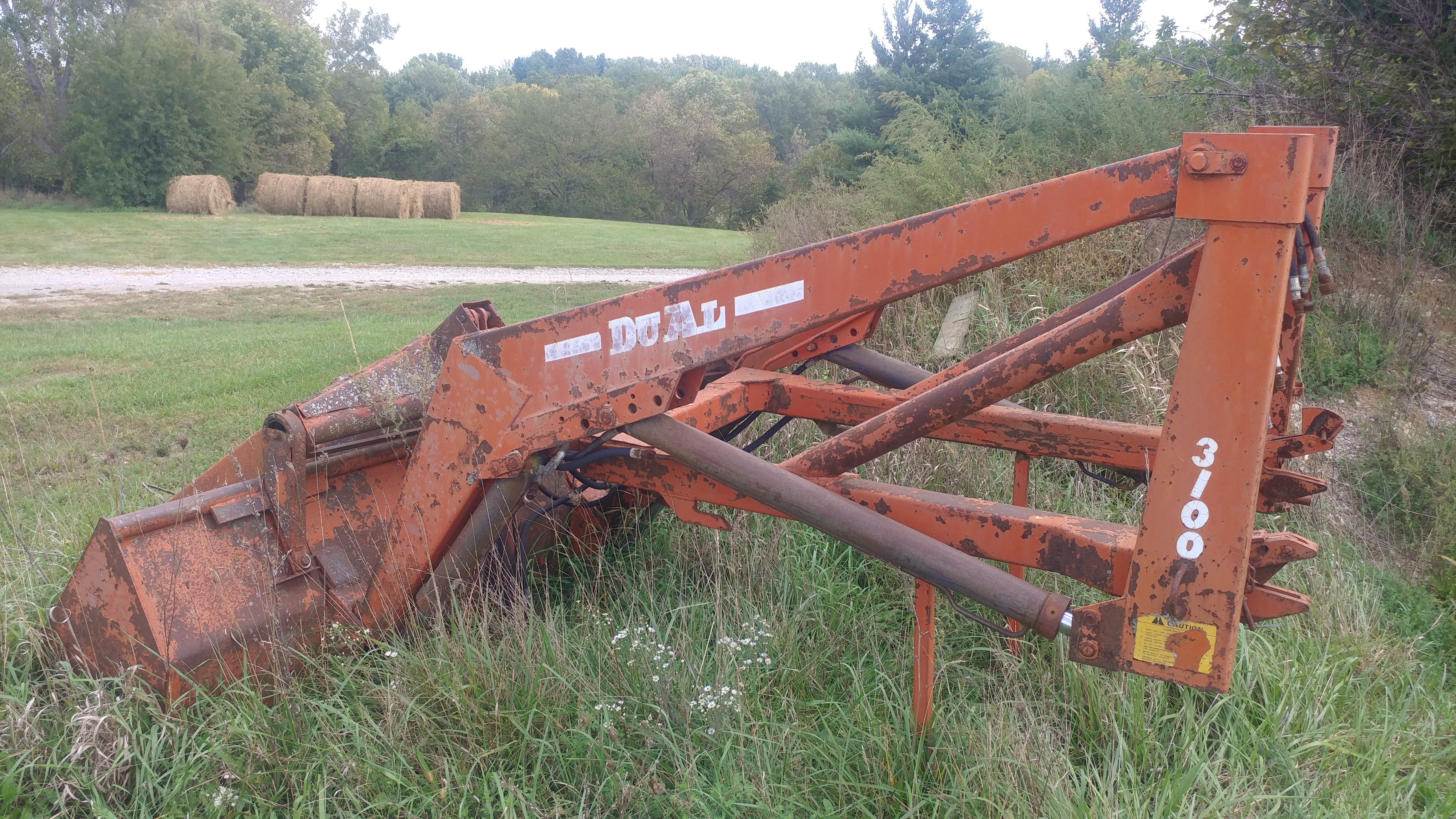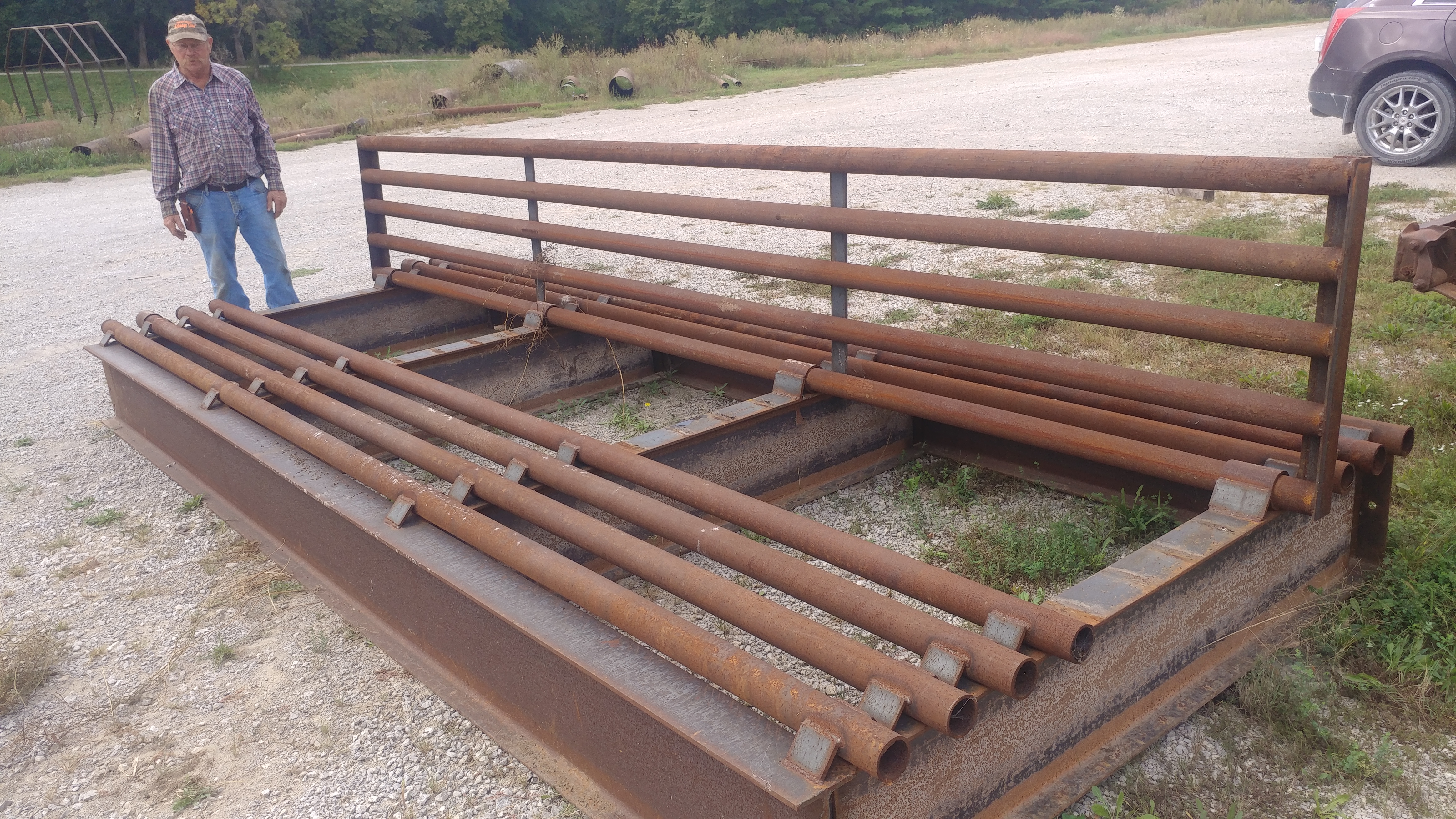 Danhouzer hydraulic post auger w/ 12” bit; 16’ heavy pipe cattle guard; dual loader w/ no mounts; New Holland tandem rake hitches (1-throws together & 1- throws same direction); all steel portable calf shelter; (2) portable wind breaks.
