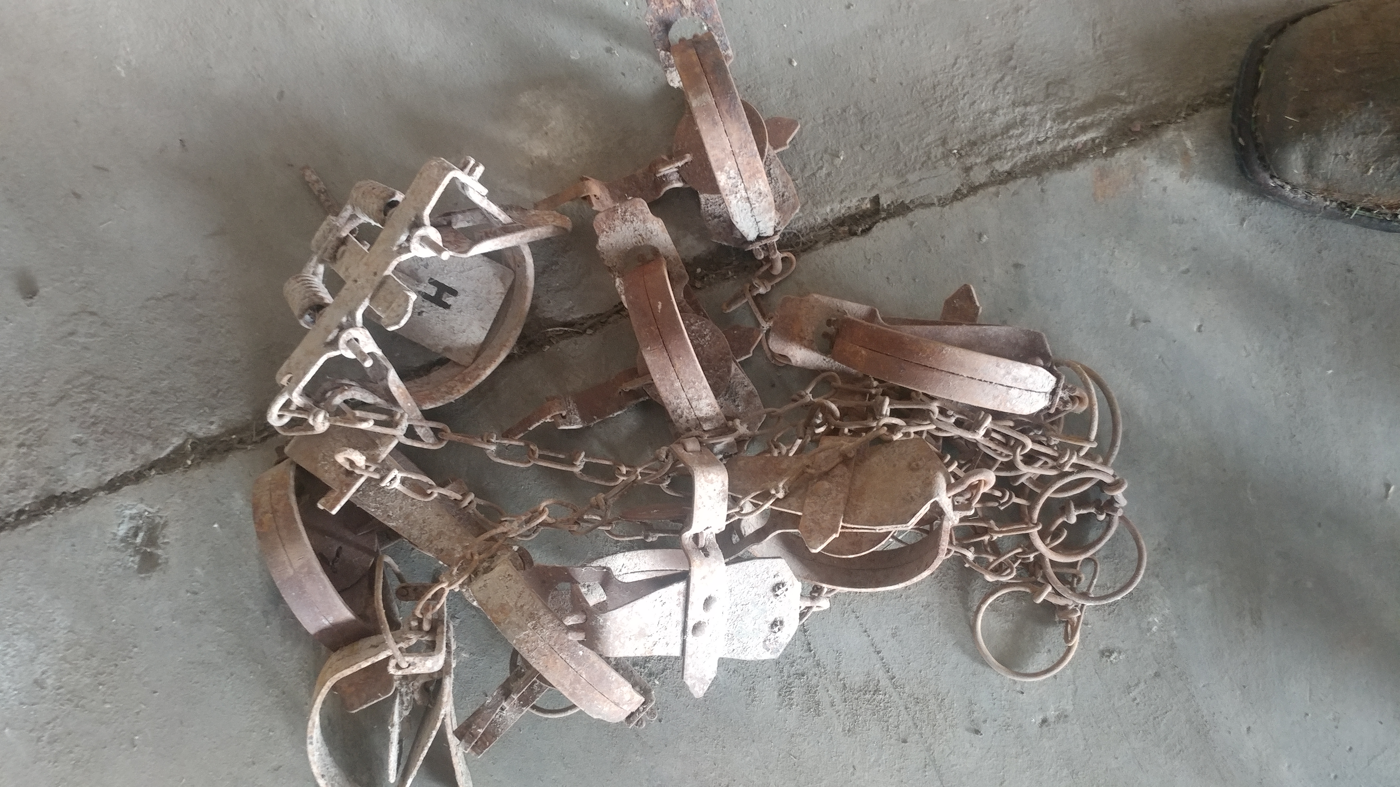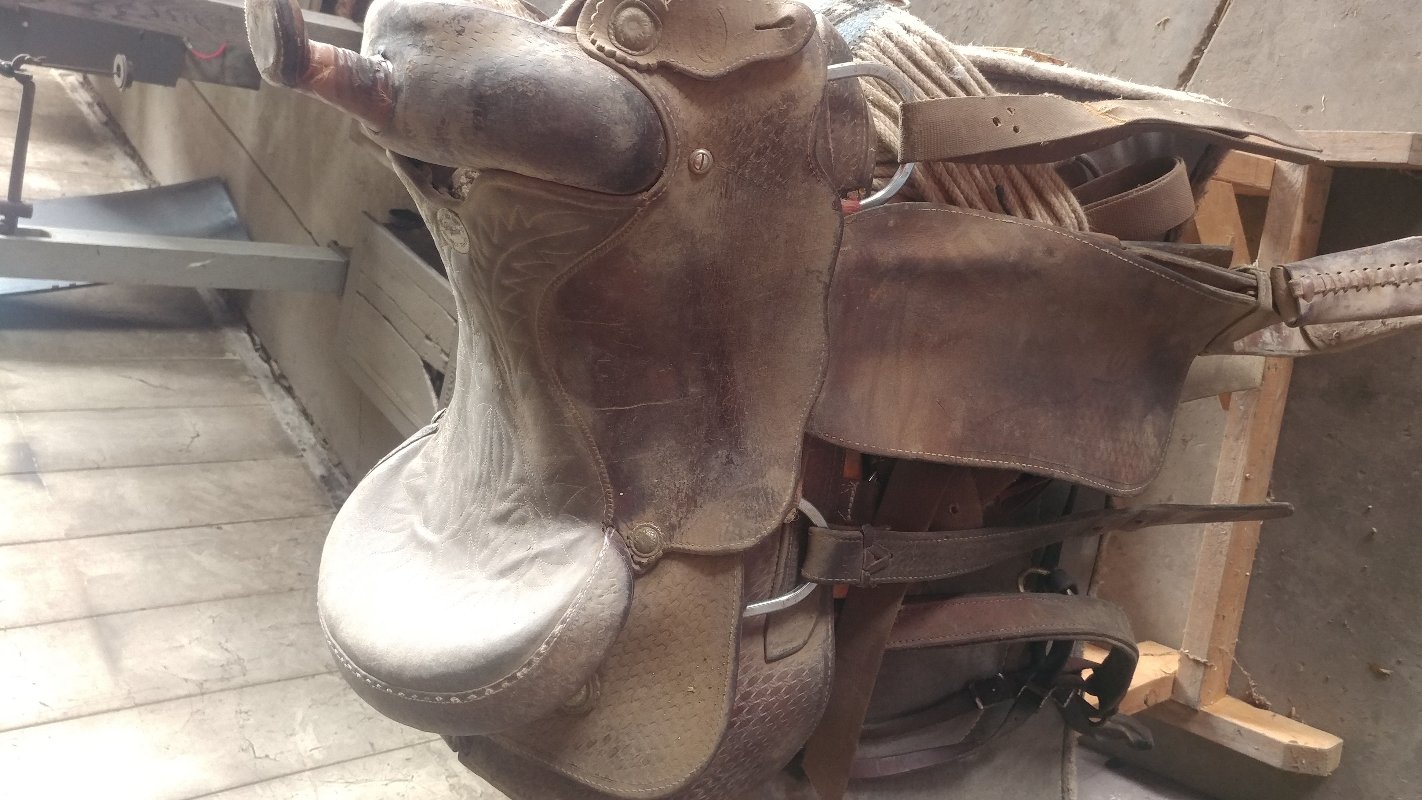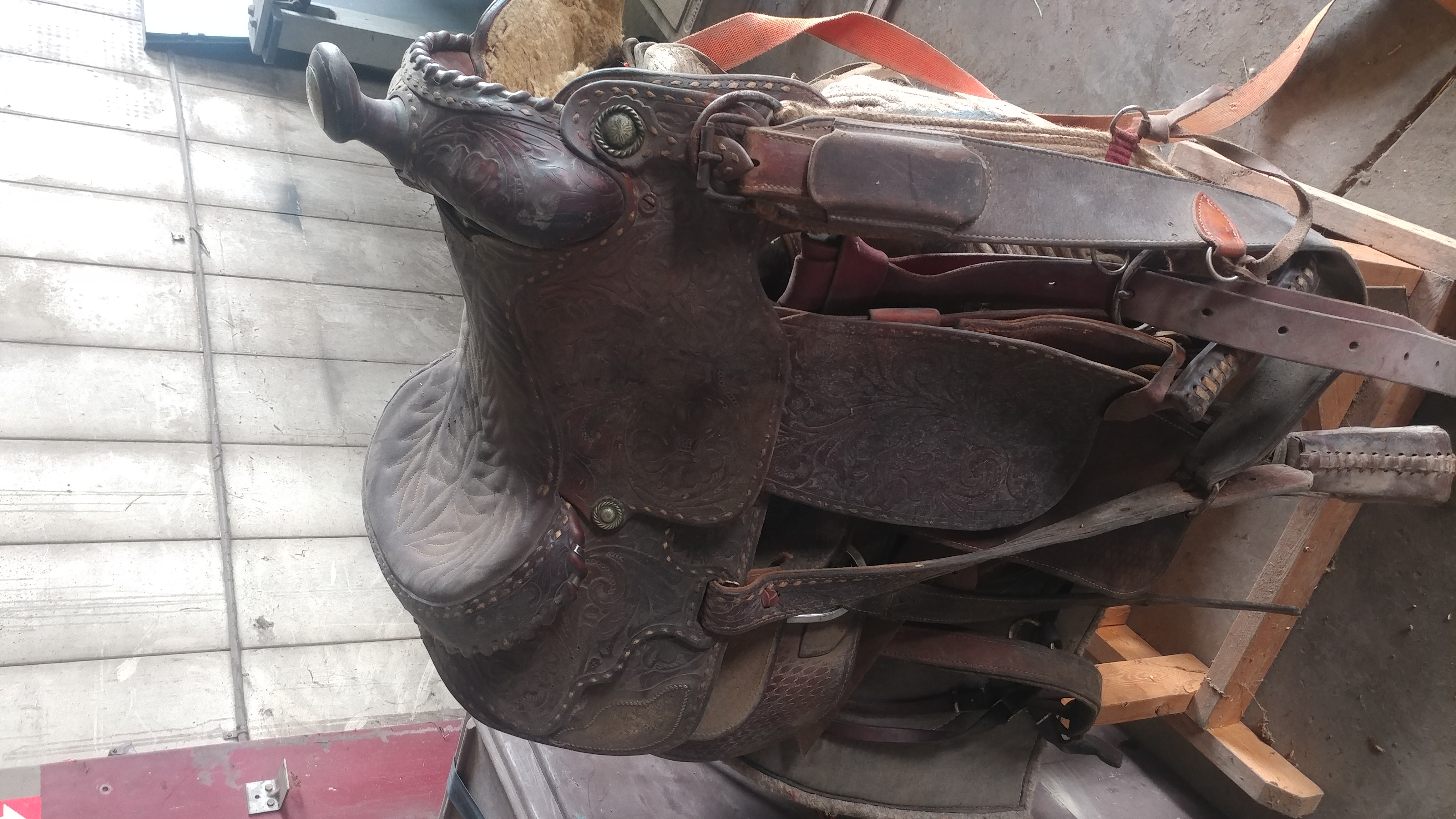 Near new pack saddles with fiberglass panniers; Double T 18” western saddle; 30 rolls of canvas; belt buckles; other misc. tackle; (170) bales third cutting small square bales of alfalfa hay; (80) big bales alfalfa hay; Herters; Victor; Blake & Lamb; Conibear.