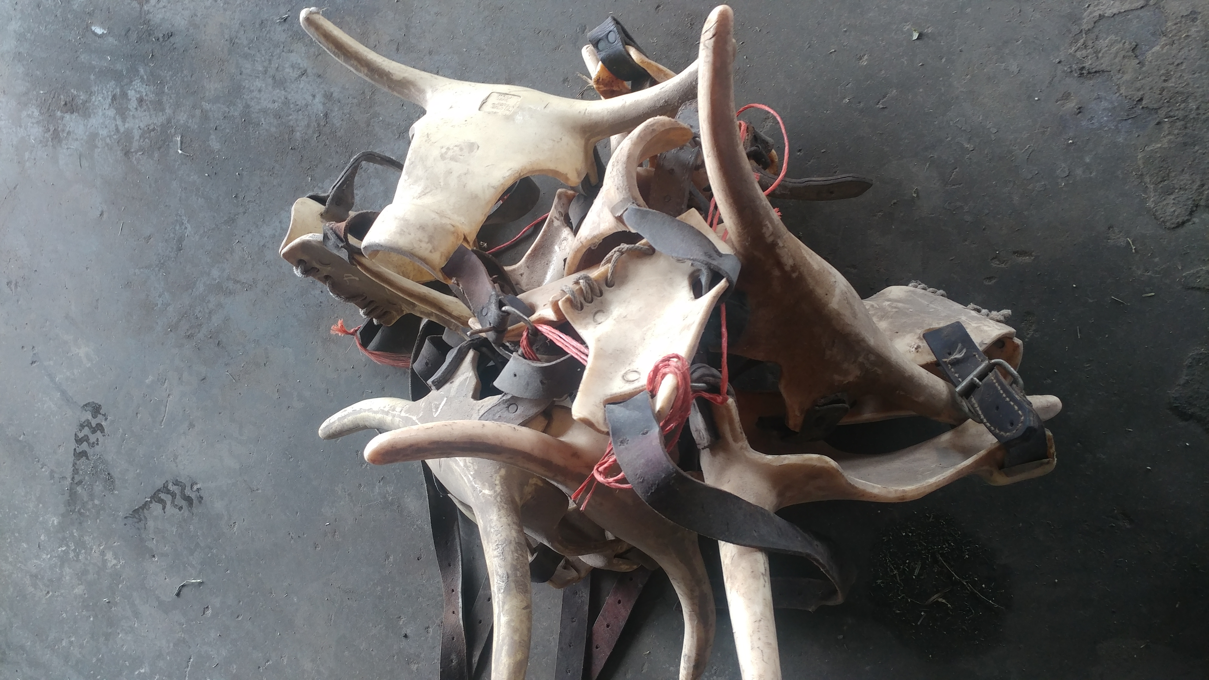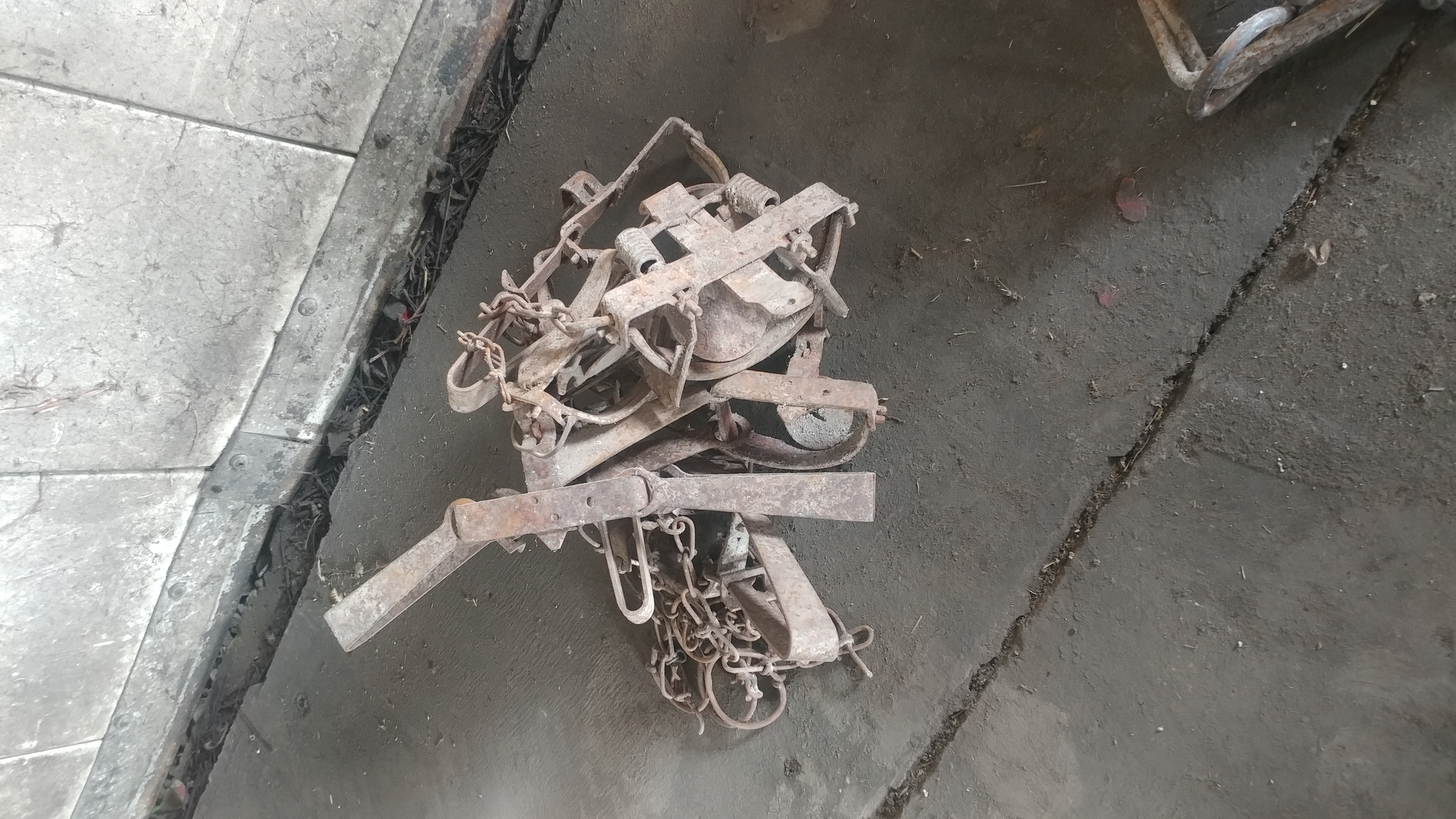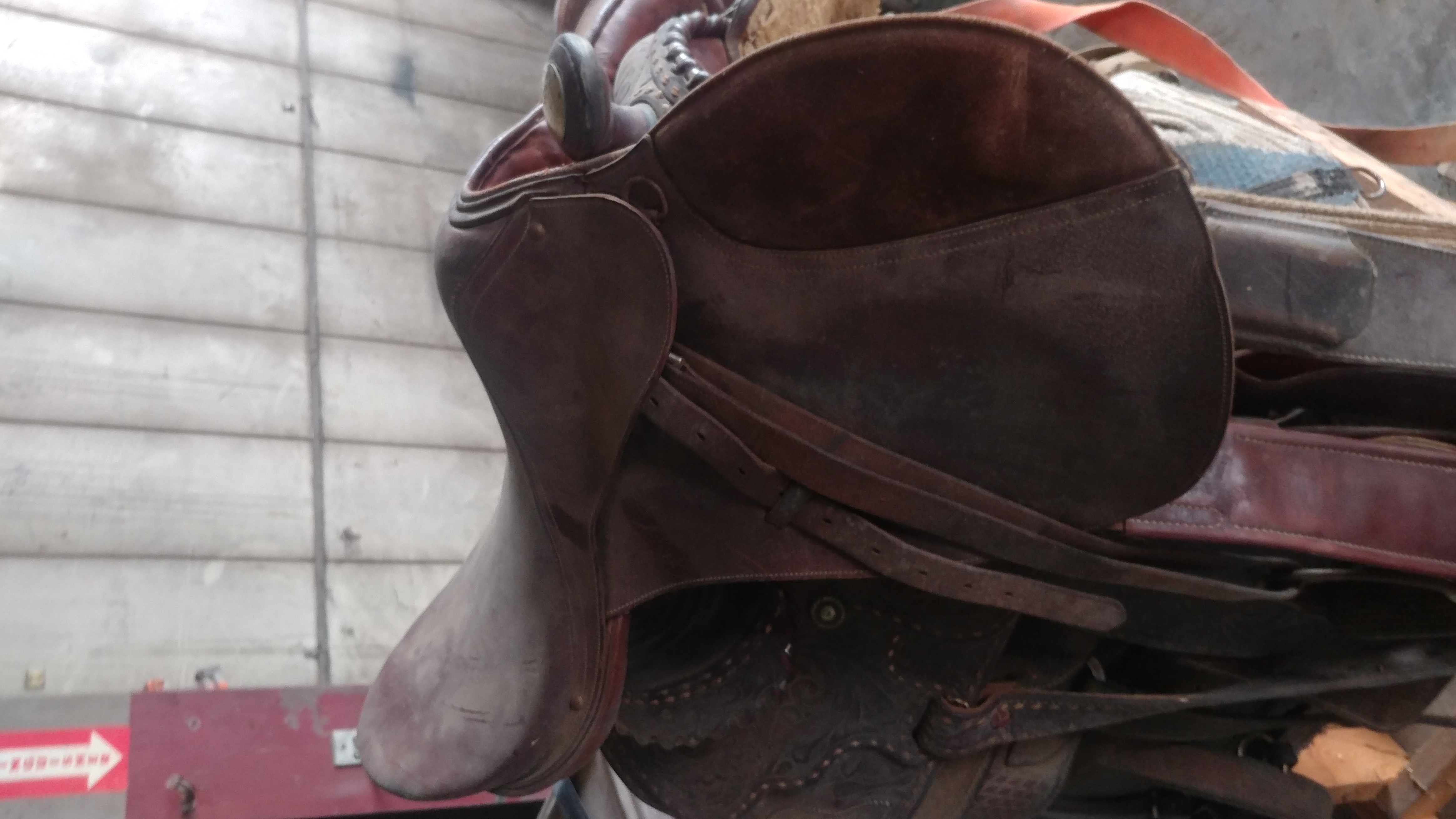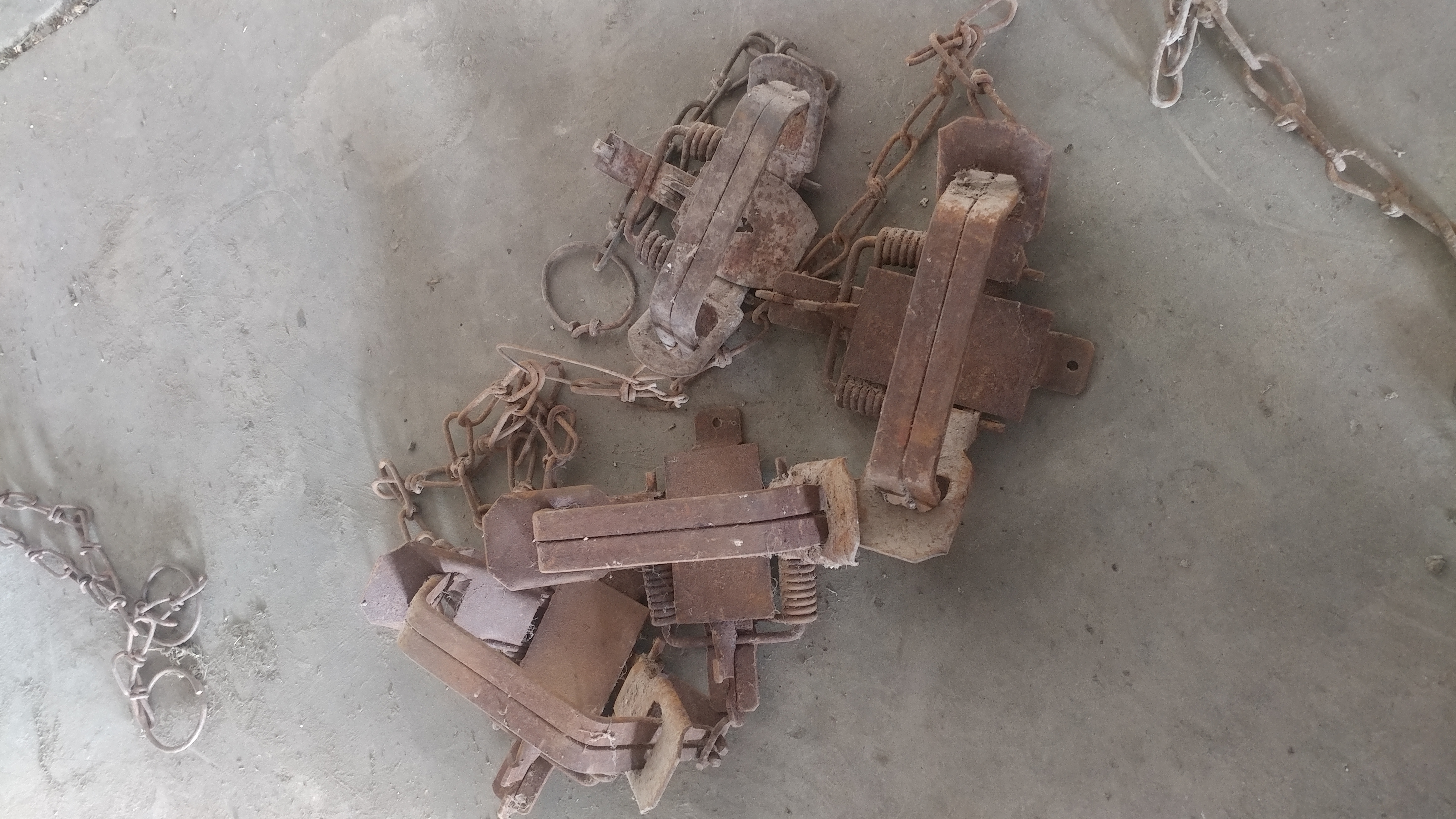 Near new pack saddles with fiberglass panniers; Double T 18” western saddle; 30 rolls of canvas; belt buckles; other misc. tackle; (170) bales third cutting small square bales of alfalfa hay; (80) big bales alfalfa hay; Herters; Victor; Blake & Lamb; Conibear.