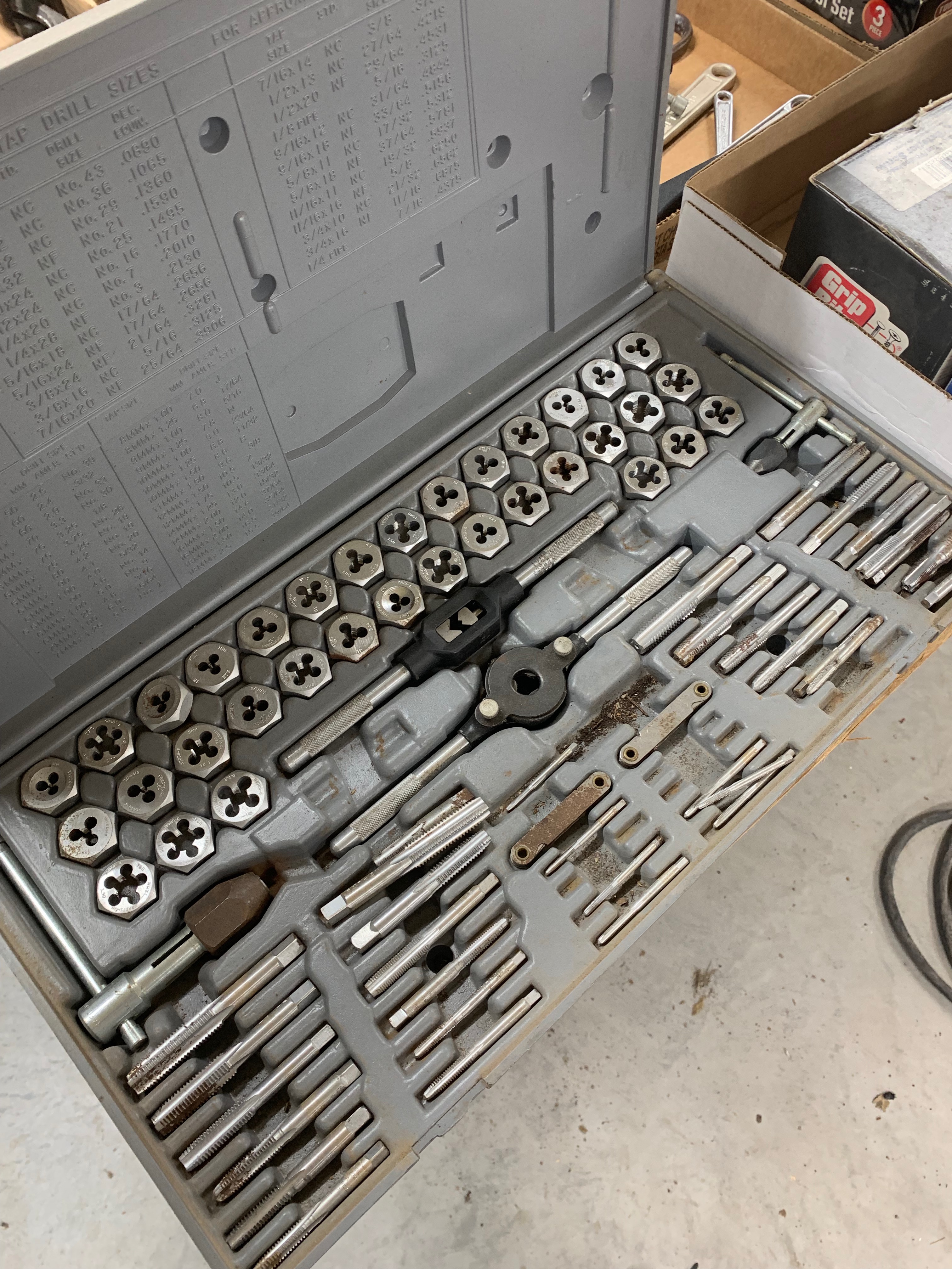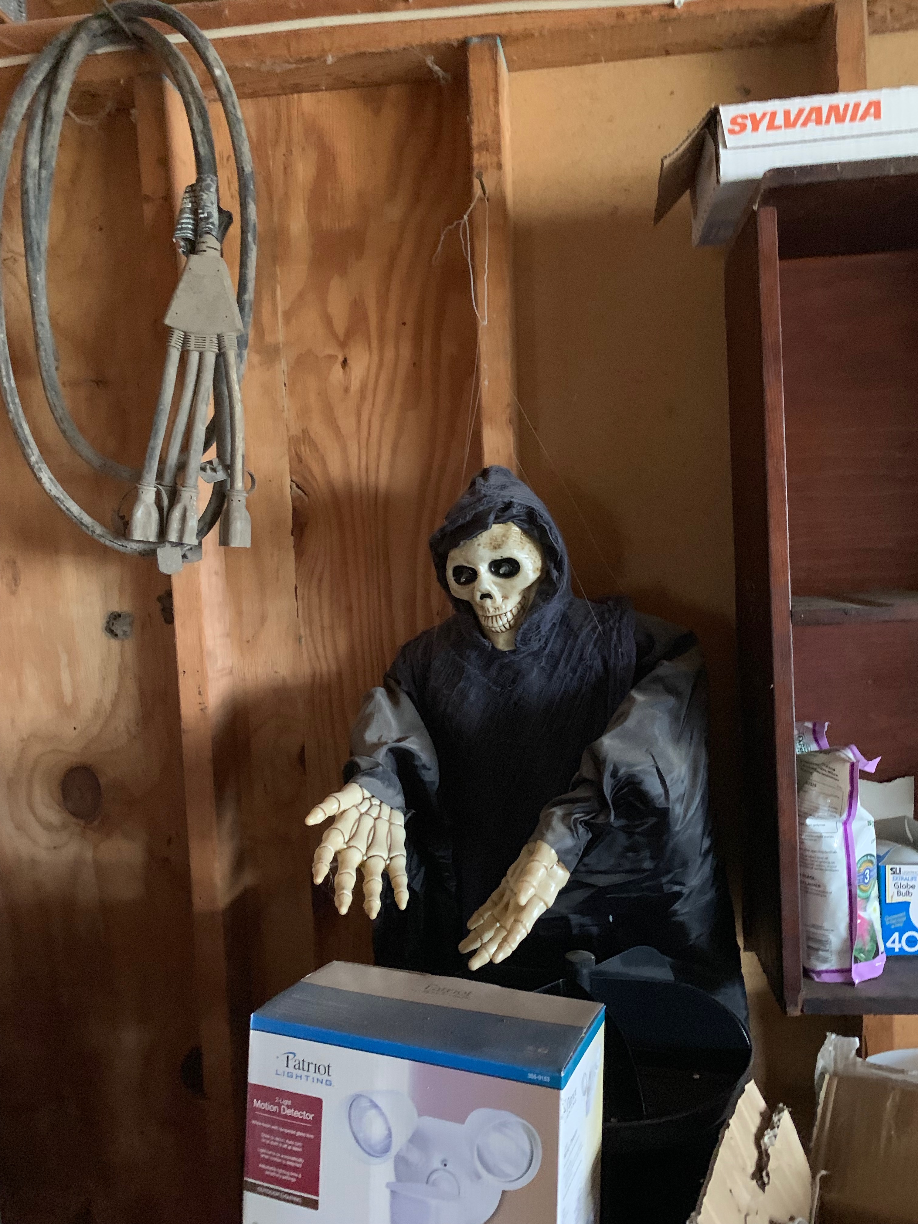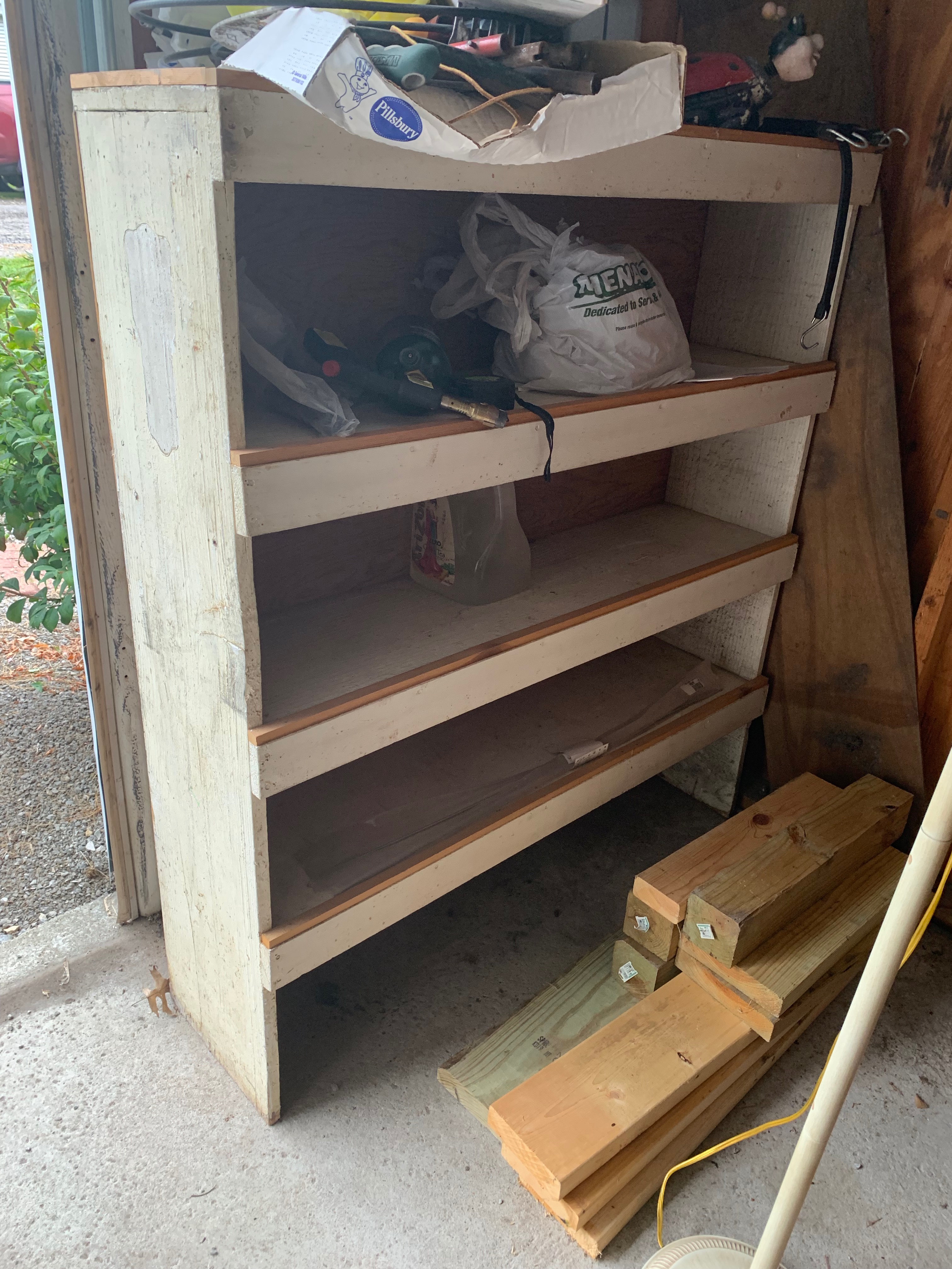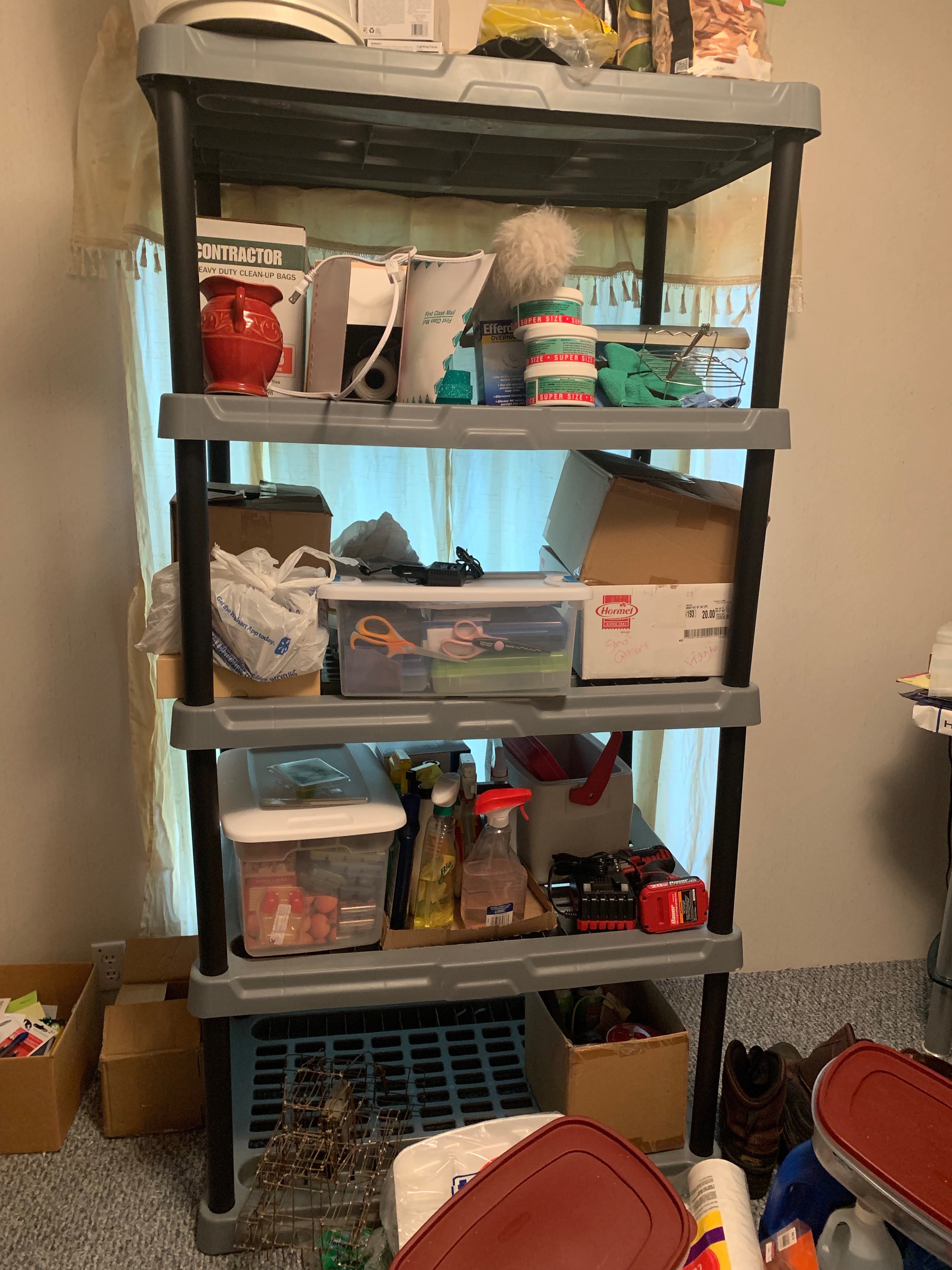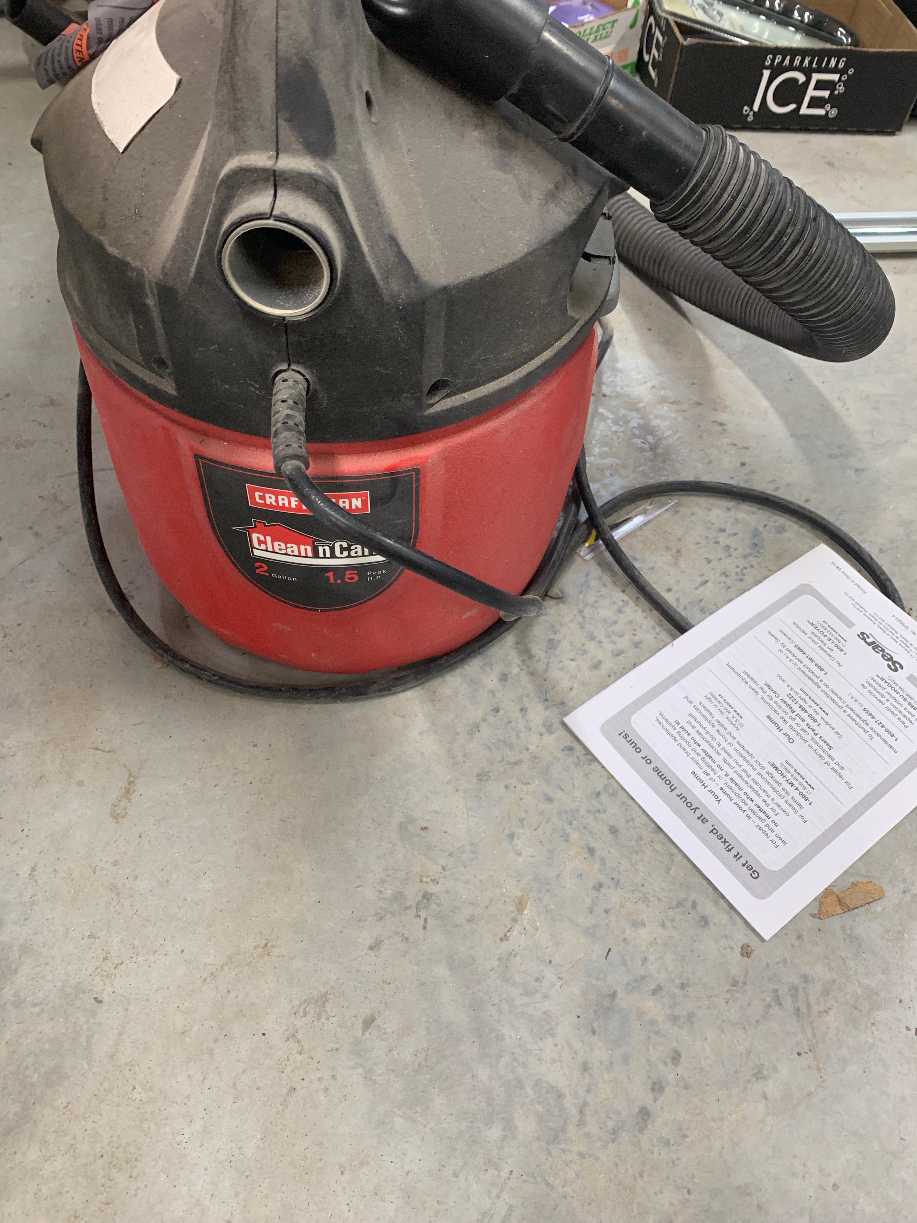Misc lumber; flats of screw drivers; halogen work lights; Craftsman 2 gal shop vac; reciprocating saw; plastic welding kit; spray gun; multi purpose router guide kit; palm sanders; electrical wire nuts; hydraulic jack; misc craftsman tools; propane heater; Dremel tool; drill doctor; heat gun; hammer drill; small propane tanks; 10 misc cases of small tools; 3 cabinet bolt bins with misc; steam cleaner; Craftsman leaf blower; many flats of assorted knives; tow rope; new bolt organizer; levels; misc putty knives; 50 ft garden hose; nailers; misc hand tools; flats of nails and screws; tap and die set; file cabinet; wire snake; extension cords; hose reel; corded drills; 1⁄2 inch impact gun; cordless craftsman drill; misc yard hand tools; small yard sprayer; fiberglass ladder; work bench; air compressor; shelving; air pigs; hanging storage kits; scroll saw; yard seeder; peg board hooks; step stool; wheel dolly; misc pipe fittings; electrical and plumbing fittings; outdoor house lights; outdoor security light, motion detected; steel ramps; wheel barrow; other misc rack items