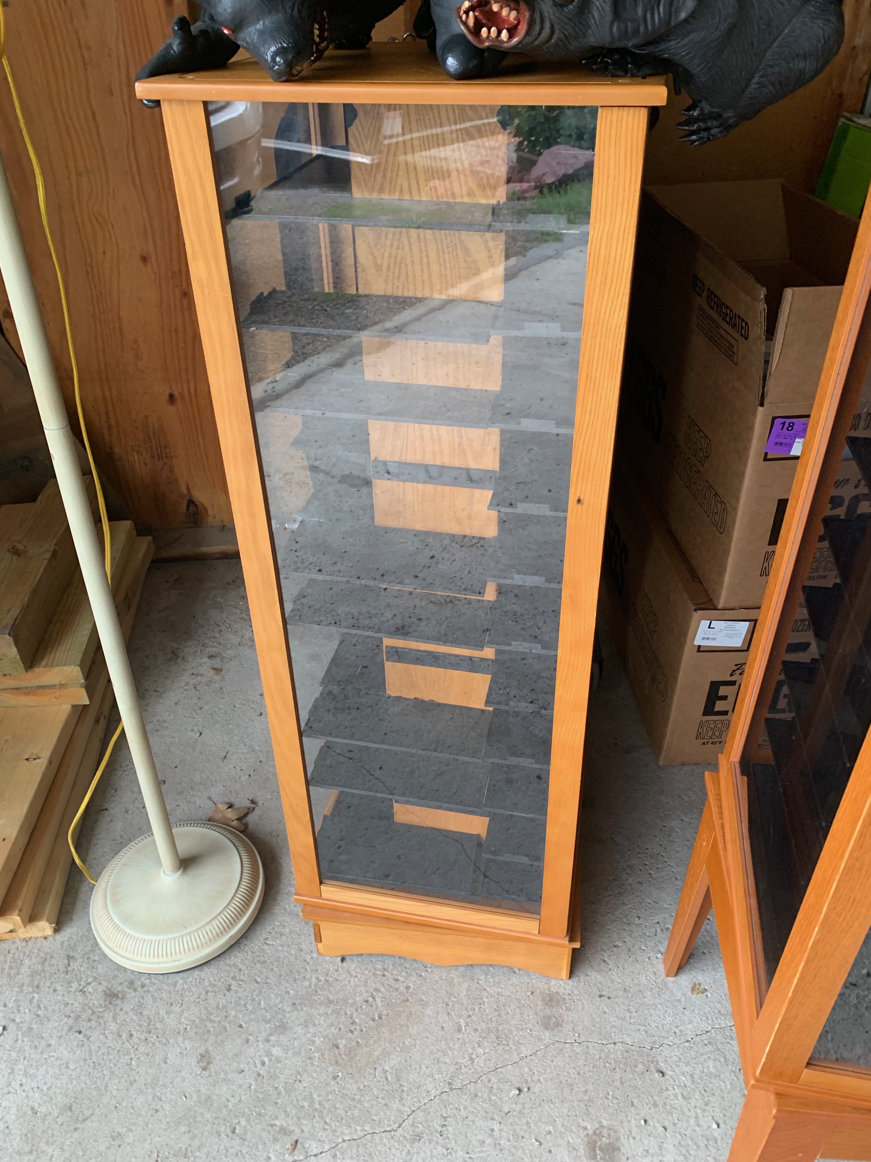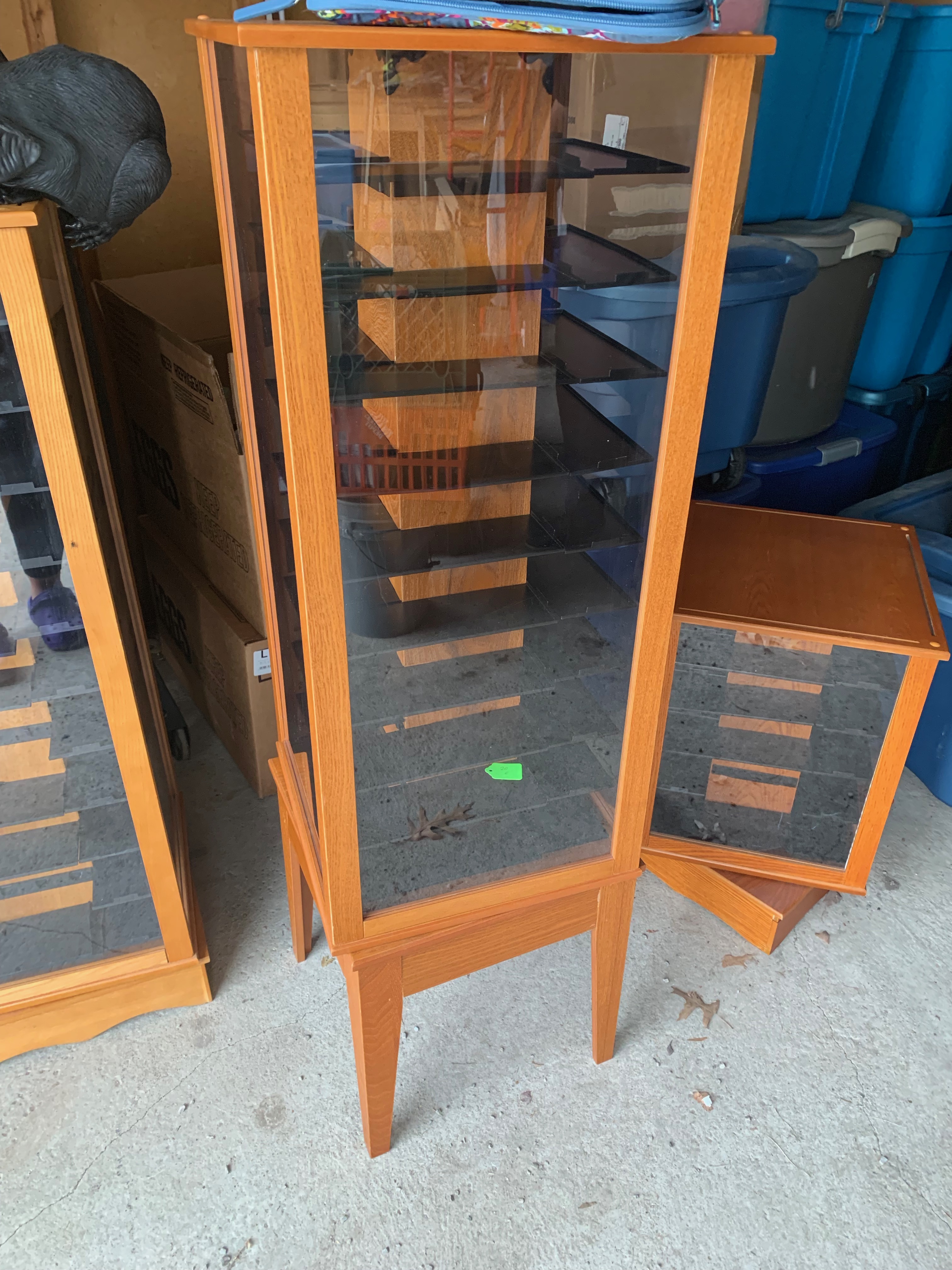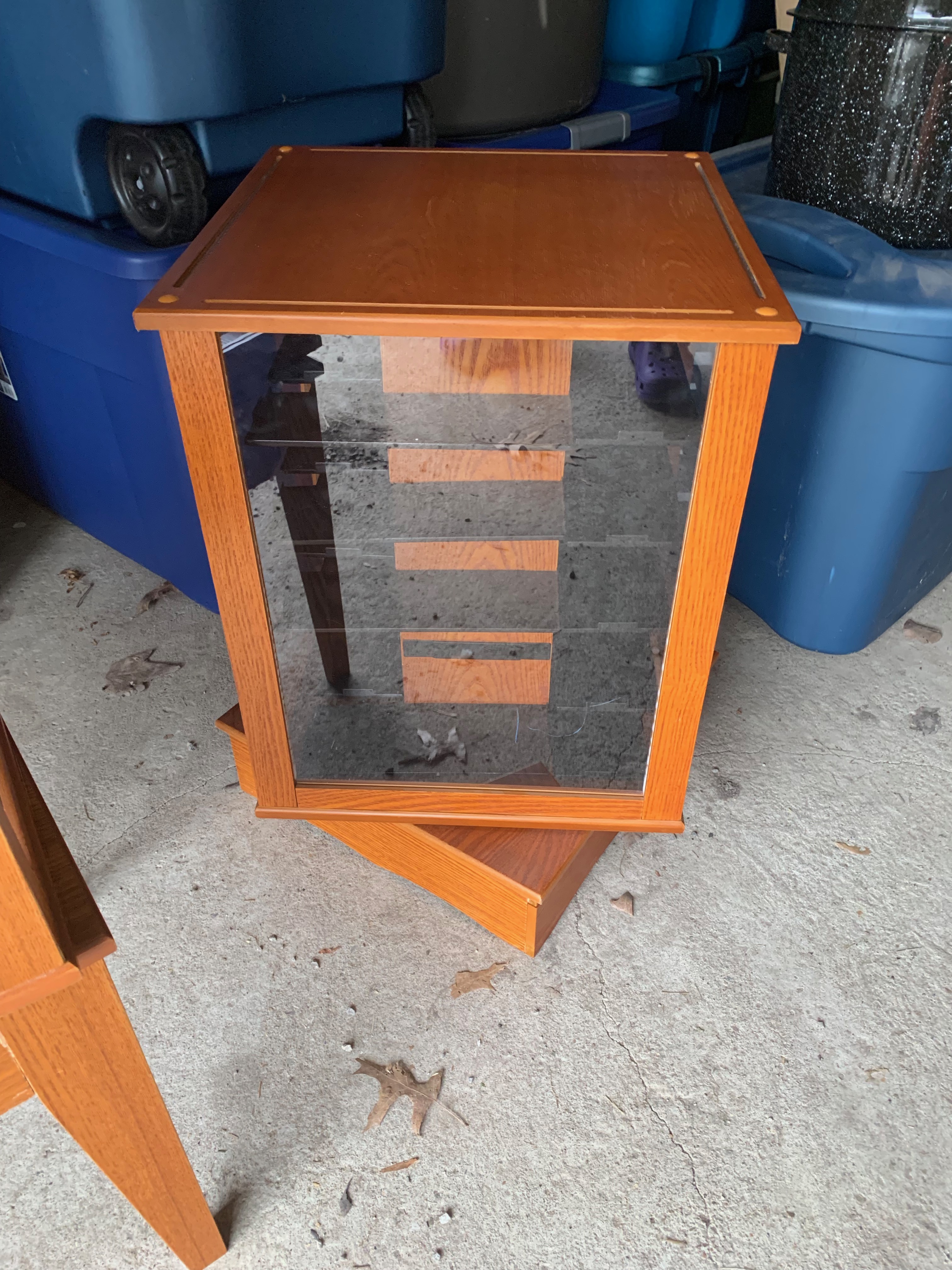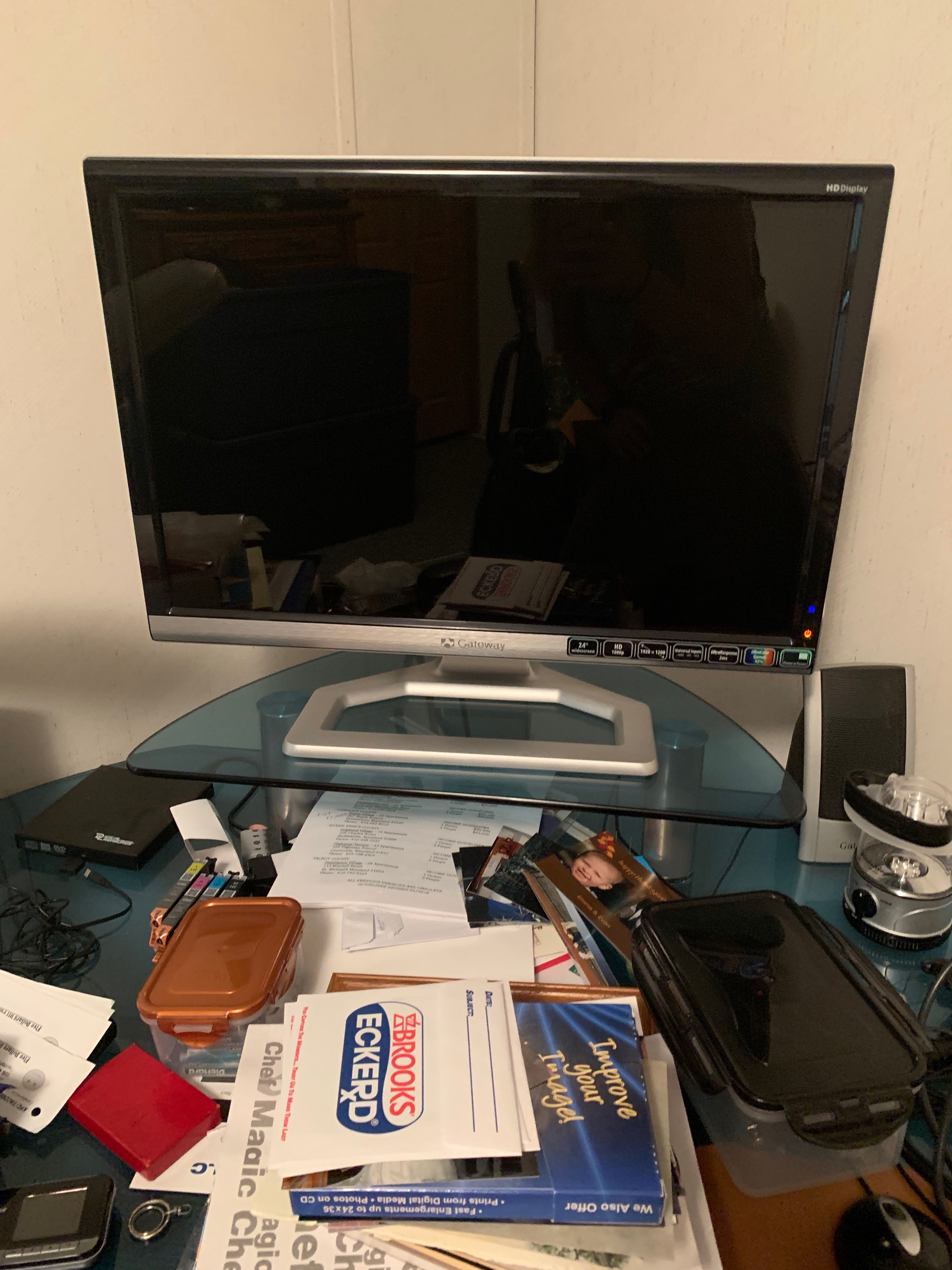 wood wall hutches; Kitchen id blenders; electric skillet; Oster juicer; some other misc. kitchen items; 2 bar height stools; 2 tier glass mount TV stand; luggage bags; 24in high definition computer monitor with Gateway computer; computer desk; office chair; cookie jars; plastic storage stand; Samsung 32 in TV; 2 matching lamps; DVD, VCR combo player; wooden hope chest; rifle cleaning kit; board games; Christmas decorations; Halloween decorations; collection storage cabinets; many canning jars; outdoor patio table and 6 chairs; other misc household items